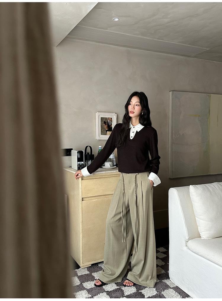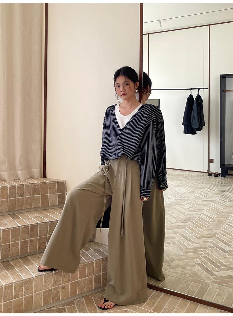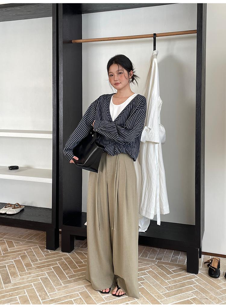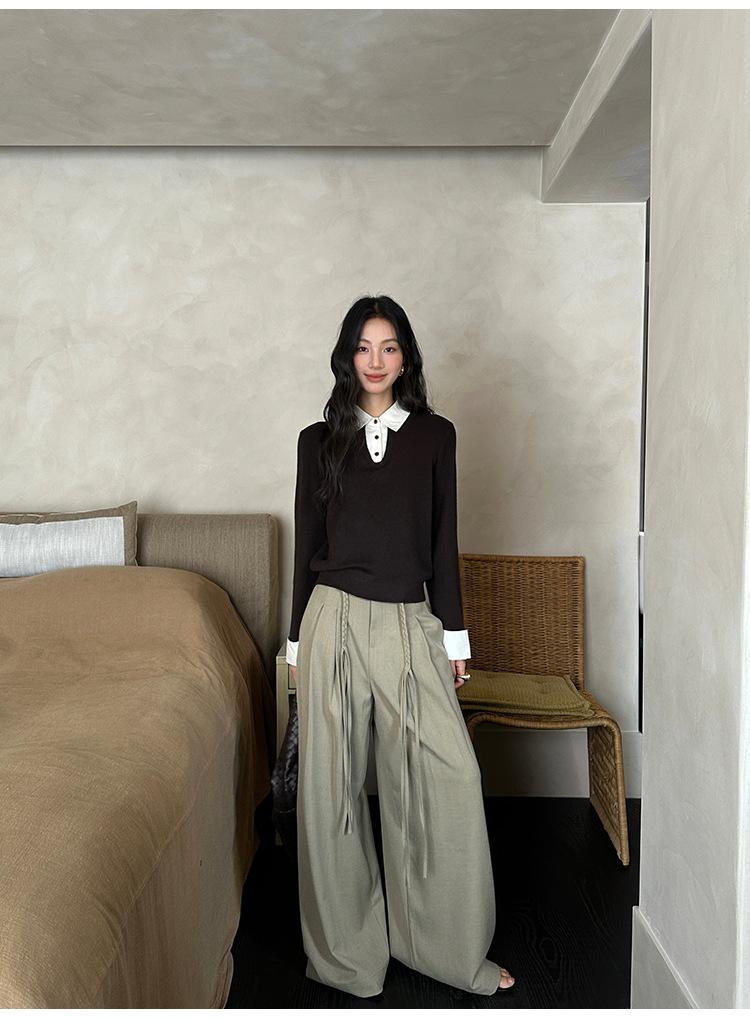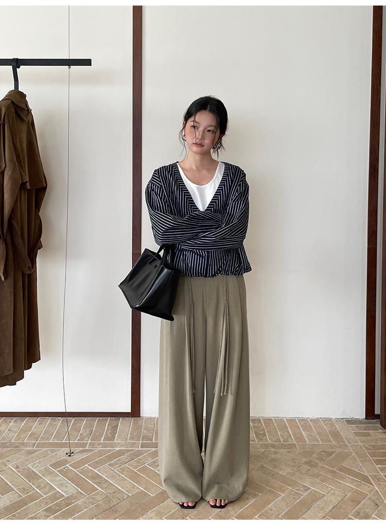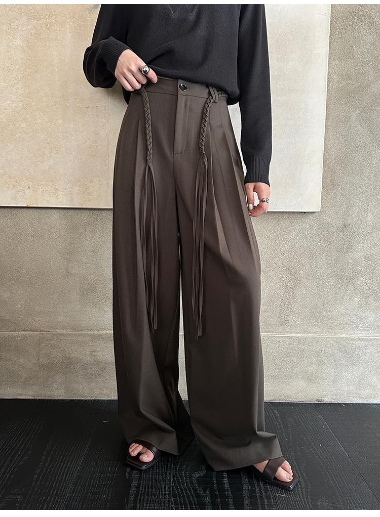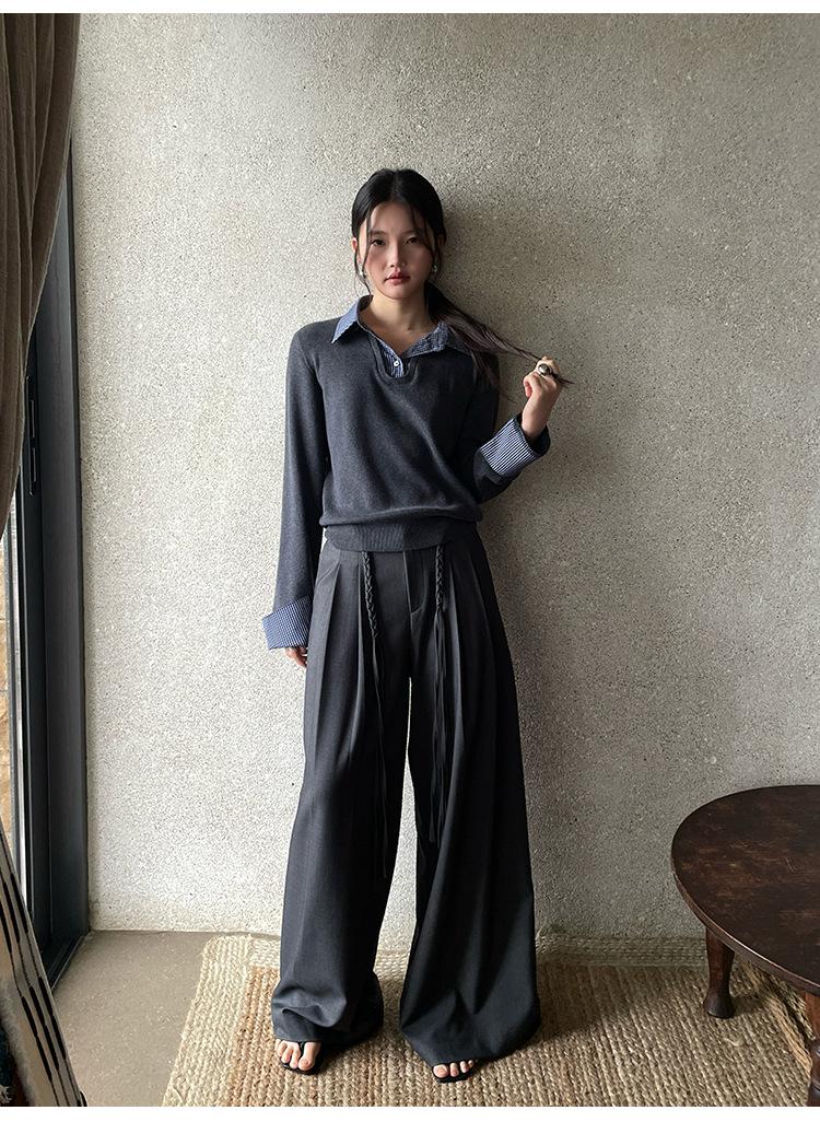 FONE Jianhe Pantalones de Traje de Pierna Ancha de Gama Alta Mujer Otoño 2025 Diseño Sensorial Gris Lazo en la Cintura Pantalones Casuales 58136