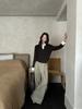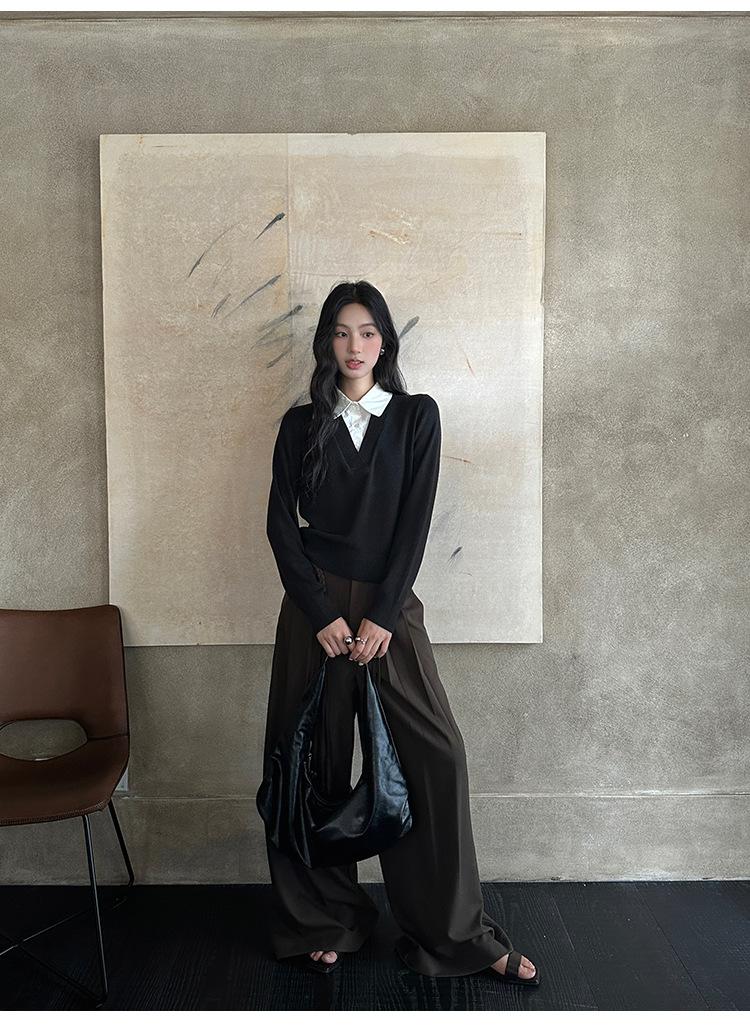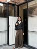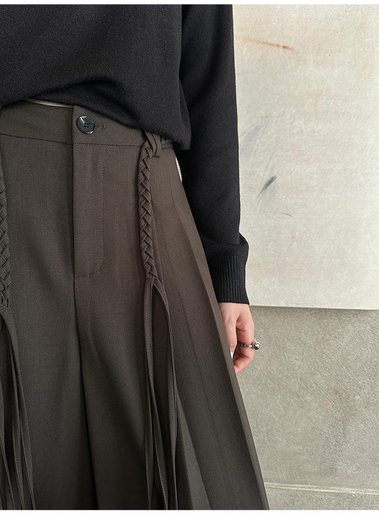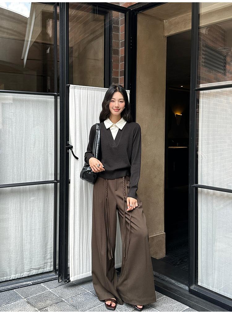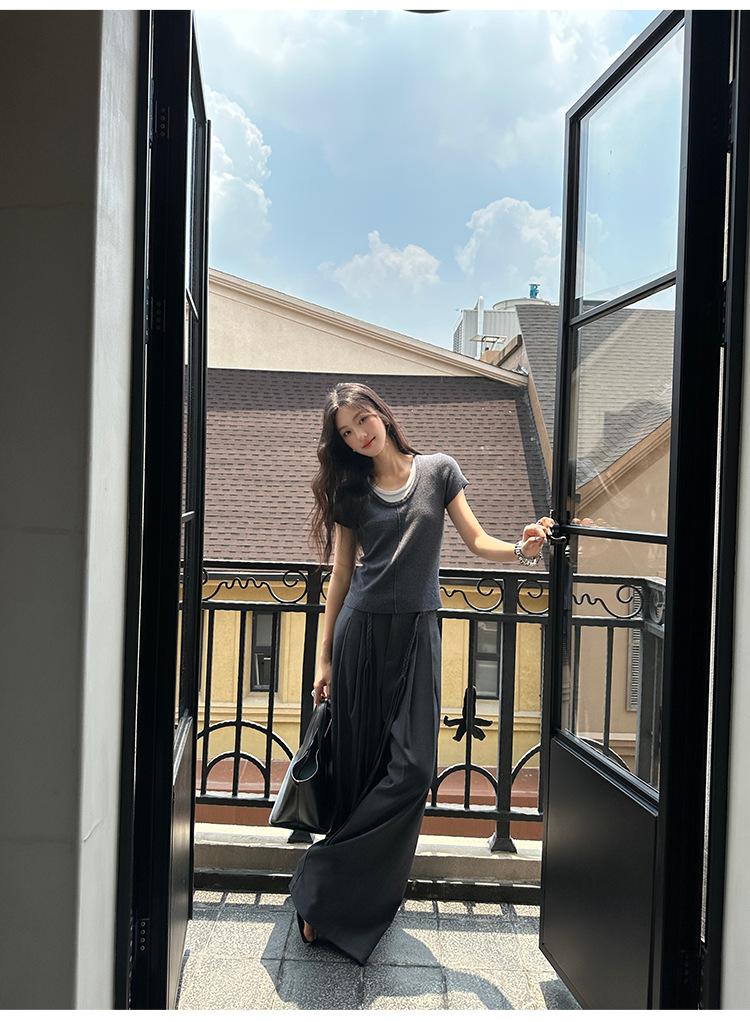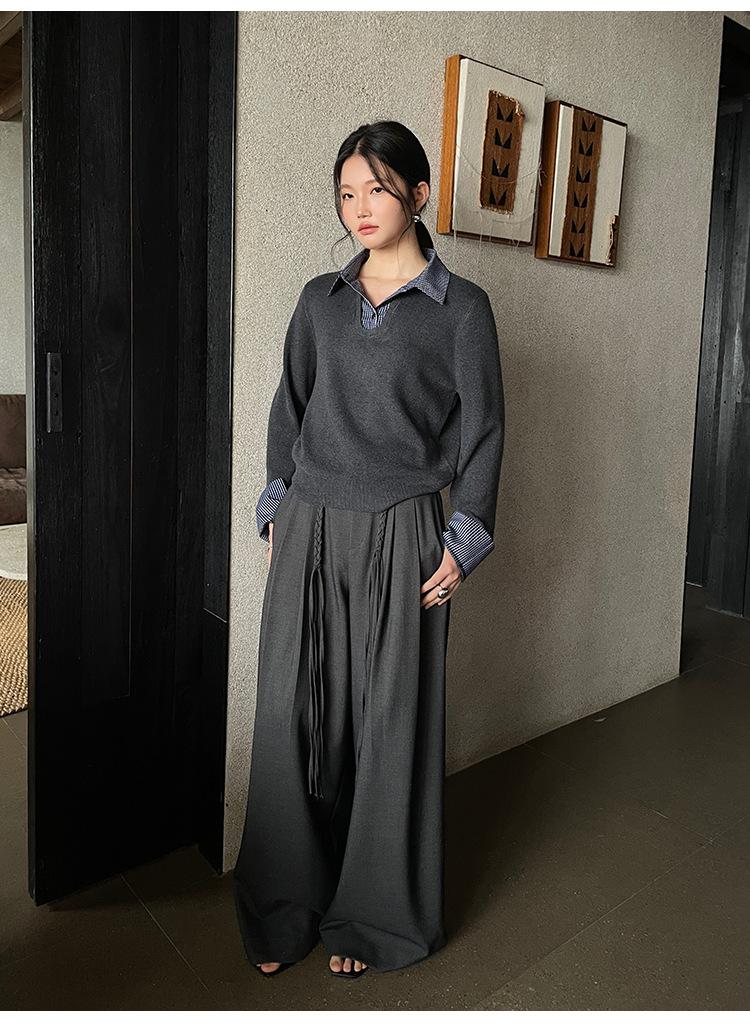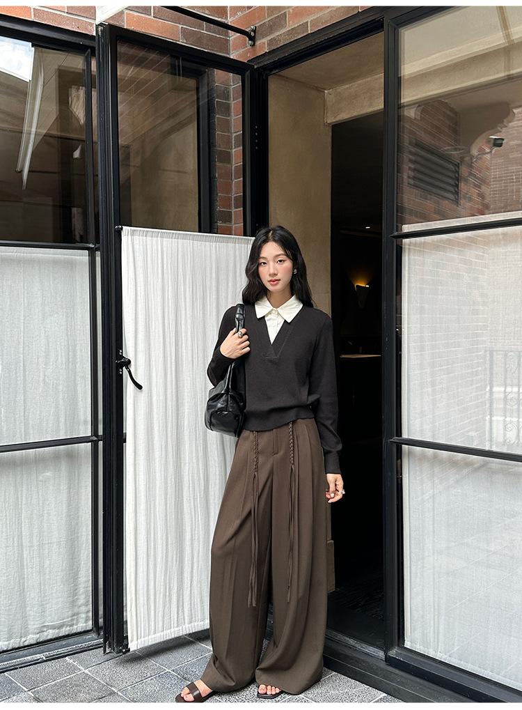 FONE Jianhe Pantalones de Traje de Pierna Ancha de Gama Alta Mujer Otoño 2025 Diseño Sensorial Gris Lazo en la Cintura Pantalones Casuales 58136