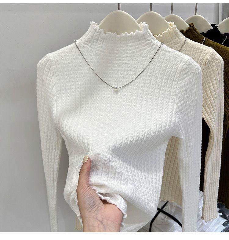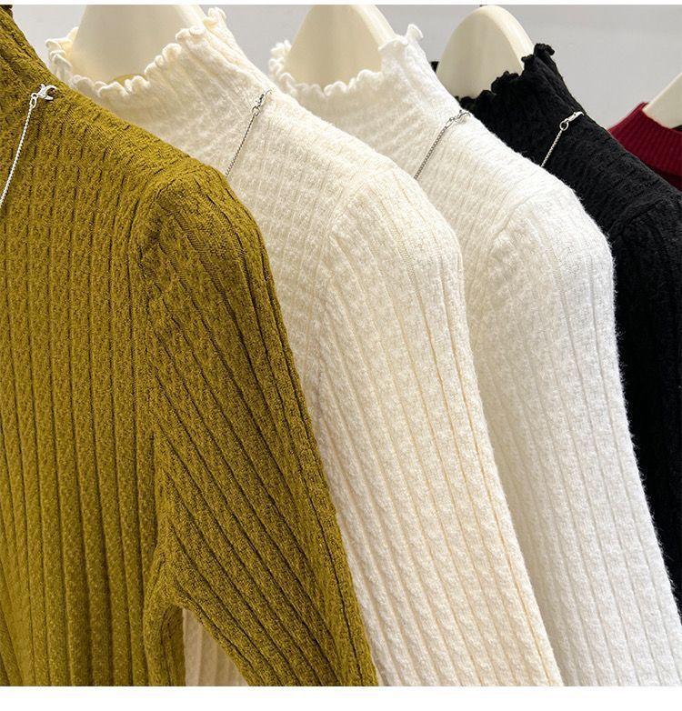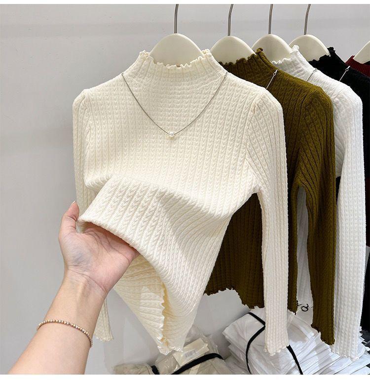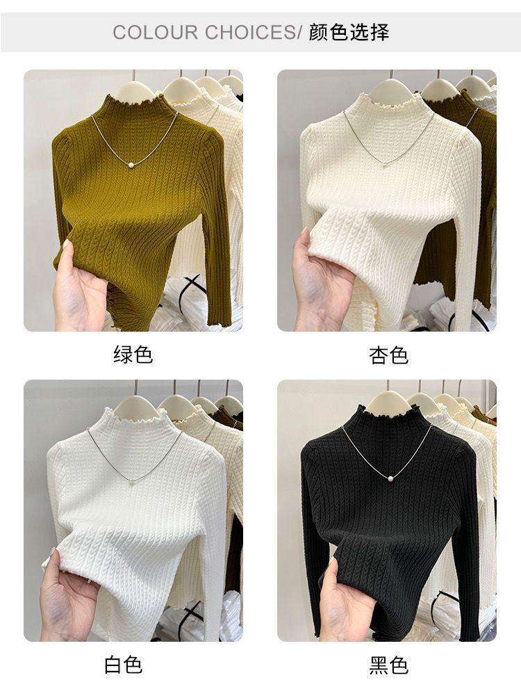 Suéter de Punto Suave de Cuello Medio Alto Nuevo Otoño/Invierno 2025 para Mujer Ajustado Jersey Delgado Capa Interior Cuello Medio Camiseta Básica