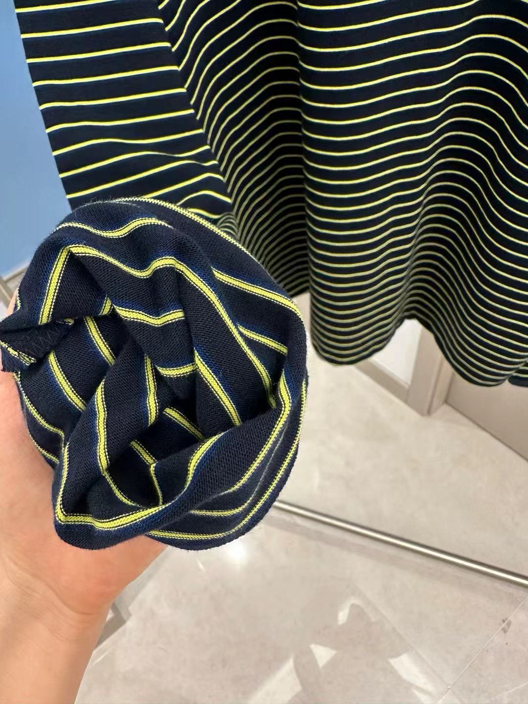 La vista lateral también está completamente coordinada en cuadros y rayas. La artesanía es muy exquisita.