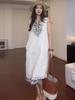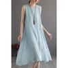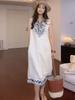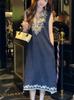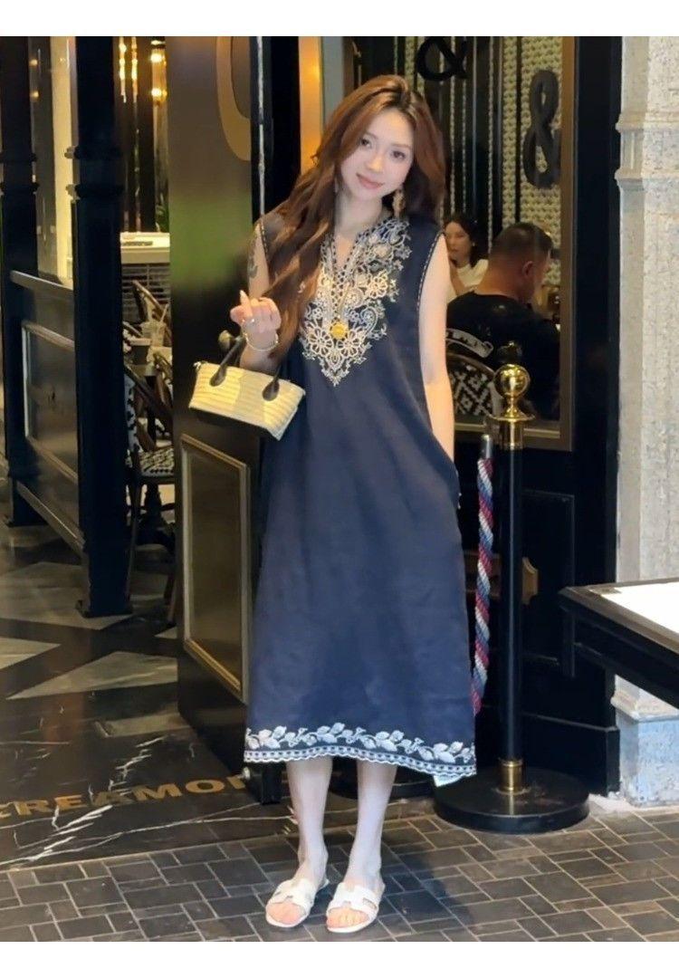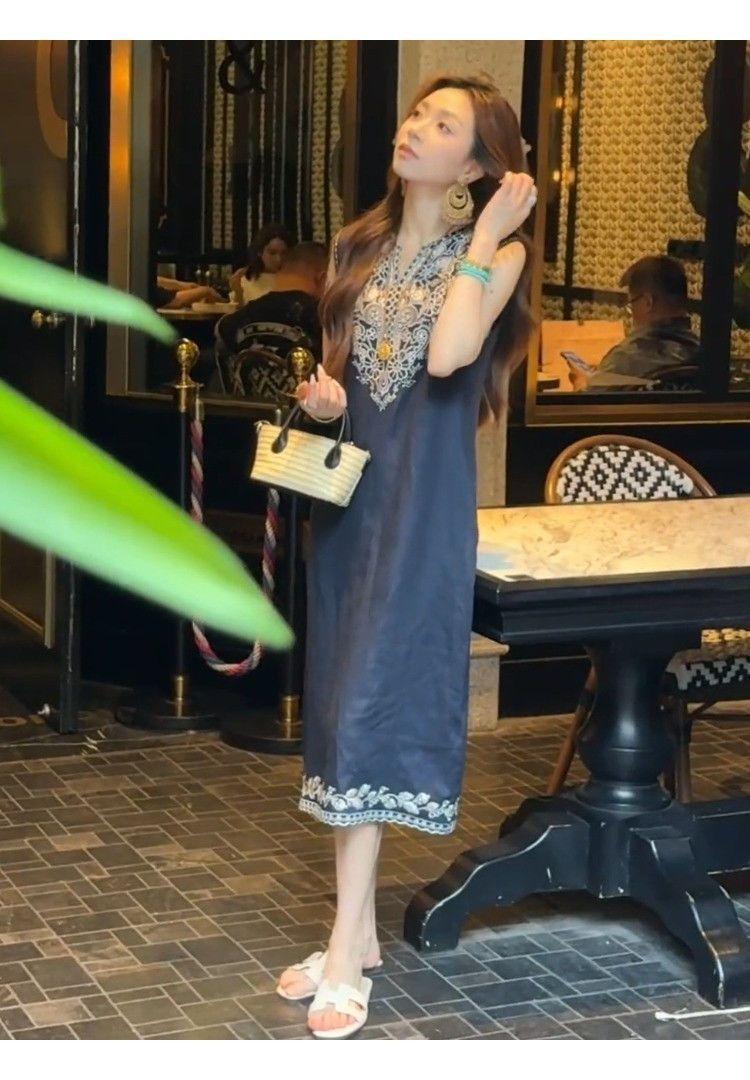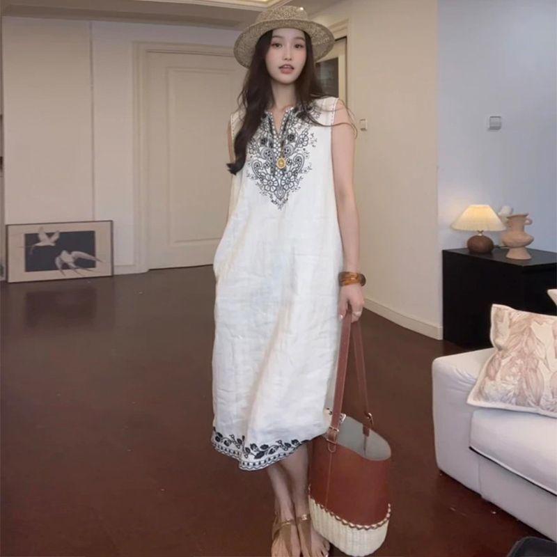 Verano Nuevo Vestido Sin Mangas Bordado Pesado Largo Medio Vestido Chaleco Cuello en V Versátil Estilo Étnico Holgado Mujer