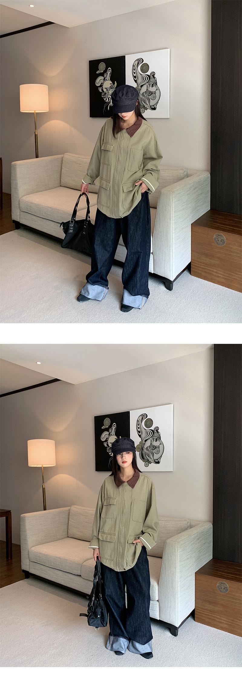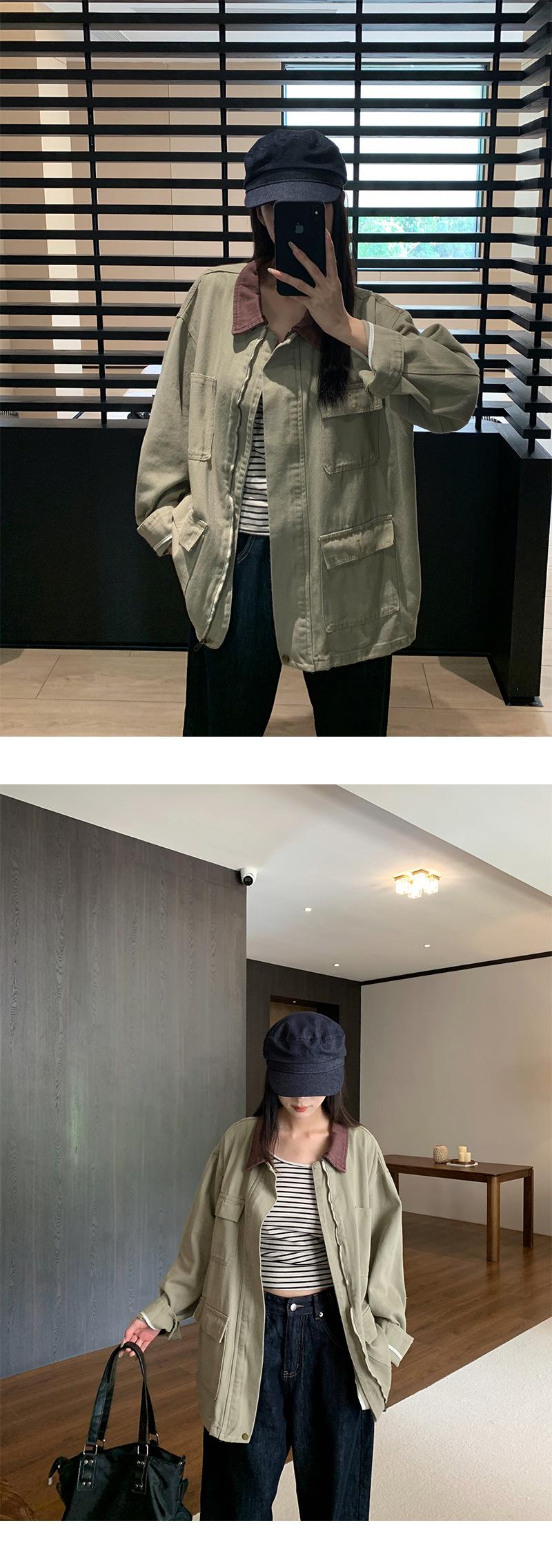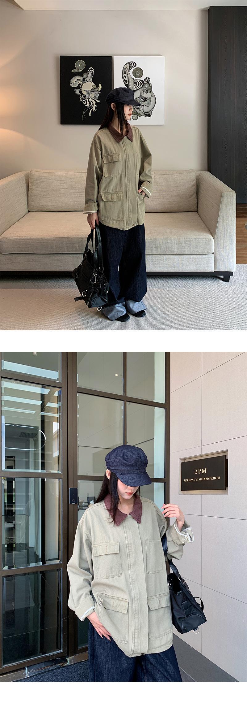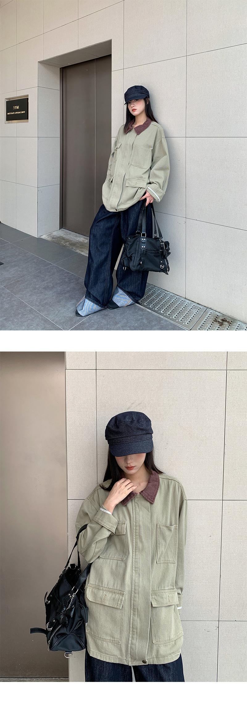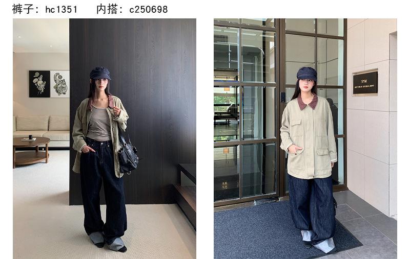 Yuyi Nuevo Otoño 2025 ins Estilo Hong Kong Retro Bloque de Color Chaqueta de Mezclilla Mujer Versátil Chaqueta de Trabajo Mujer m3738