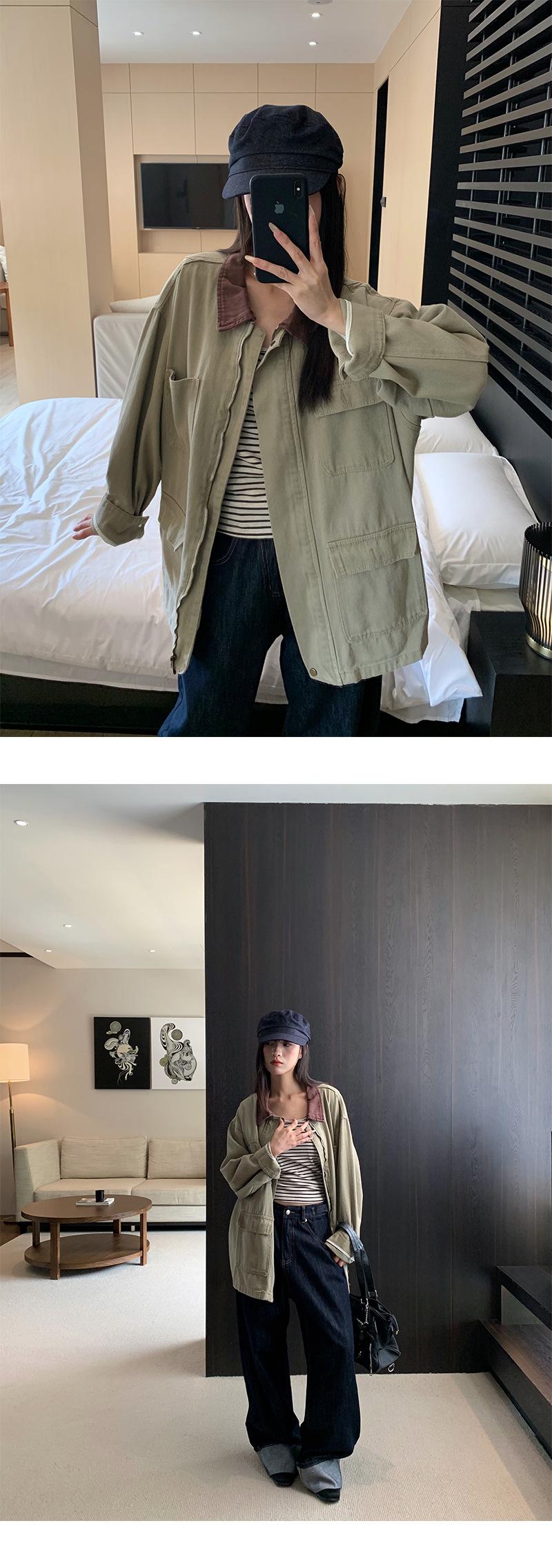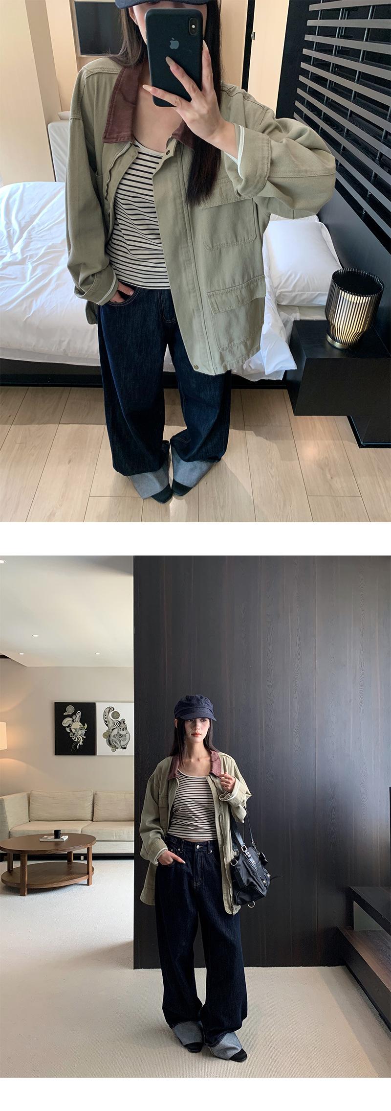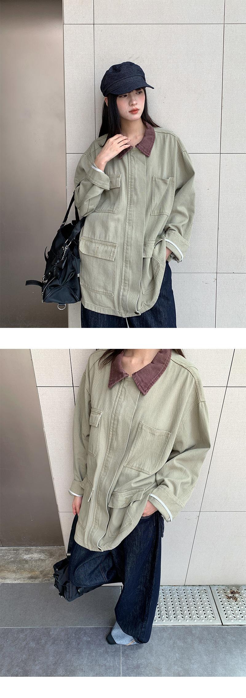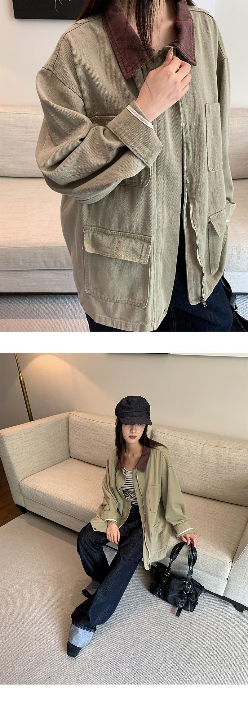 Yuyi Nuevo Otoño 2025 ins Estilo Hong Kong Retro Bloque de Color Chaqueta de Mezclilla Mujer Versátil Chaqueta de Trabajo Mujer m3738