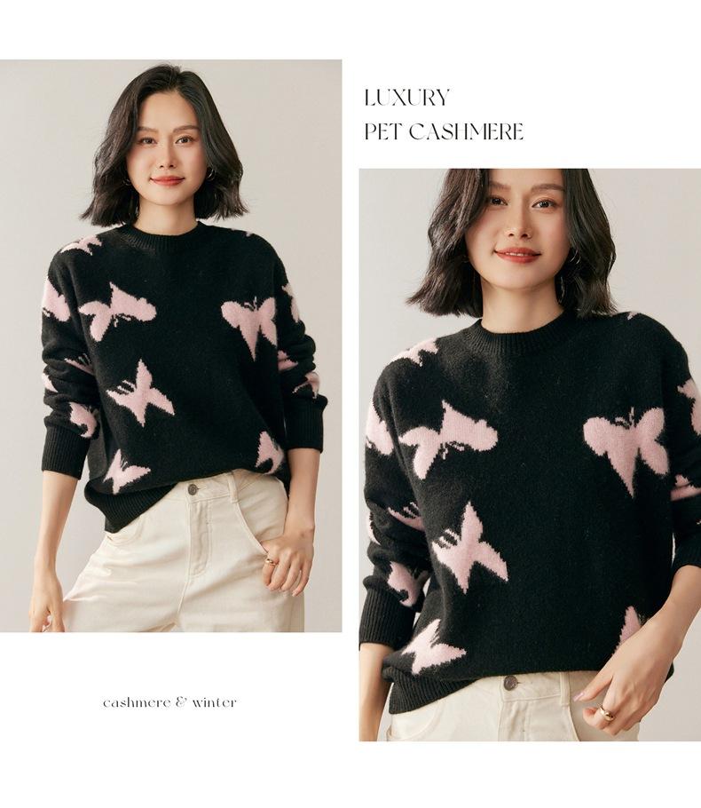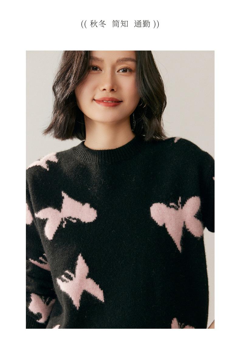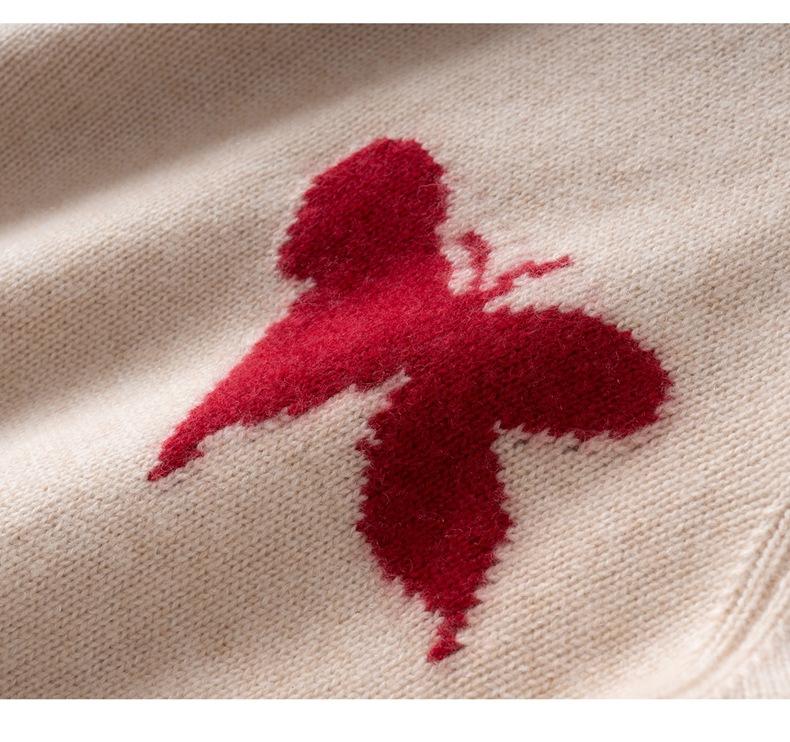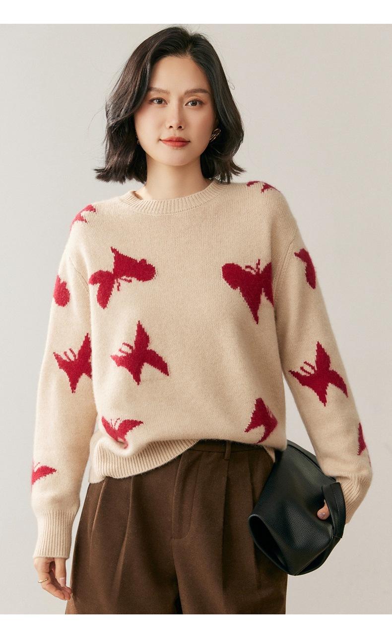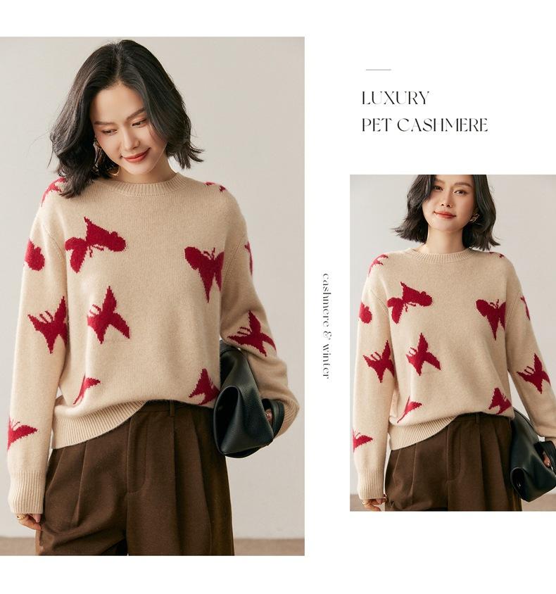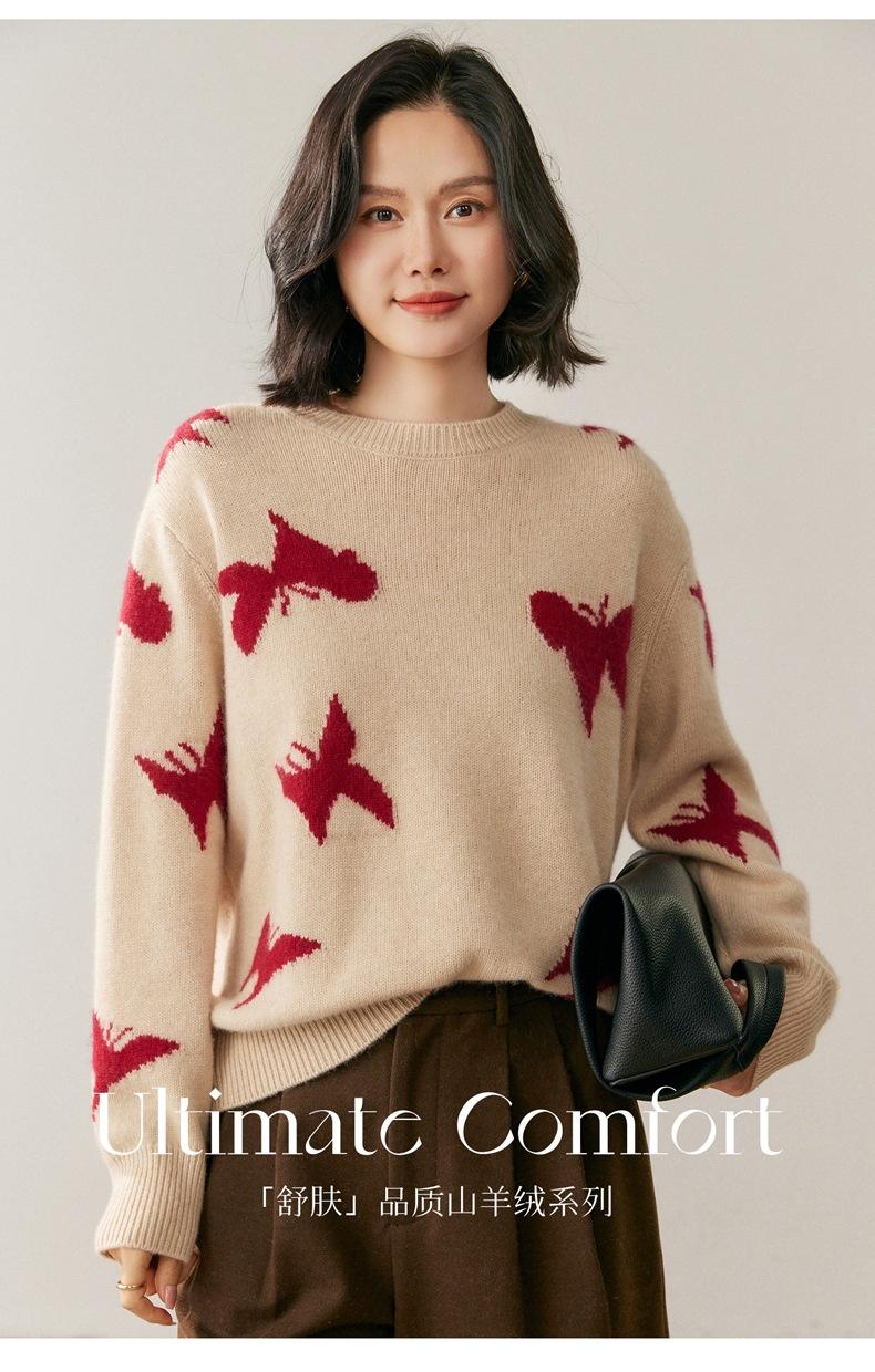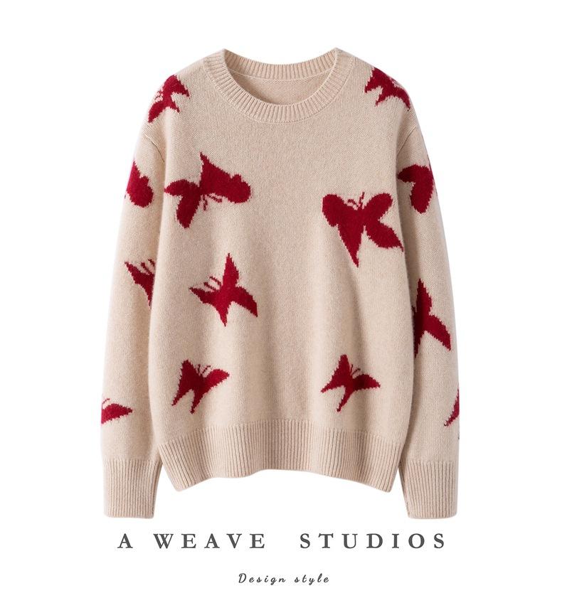 Suéter de Cachemira Mariposa 2025 Otoño e Invierno Nuevo Estilo para Mujer Cuello Redondo Camiseta Base Estilo Suave Holgado Adelgazante Corto Tejido