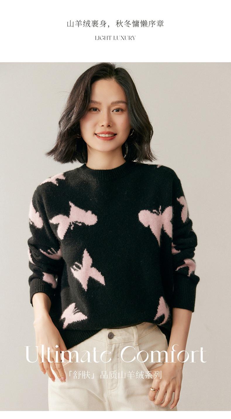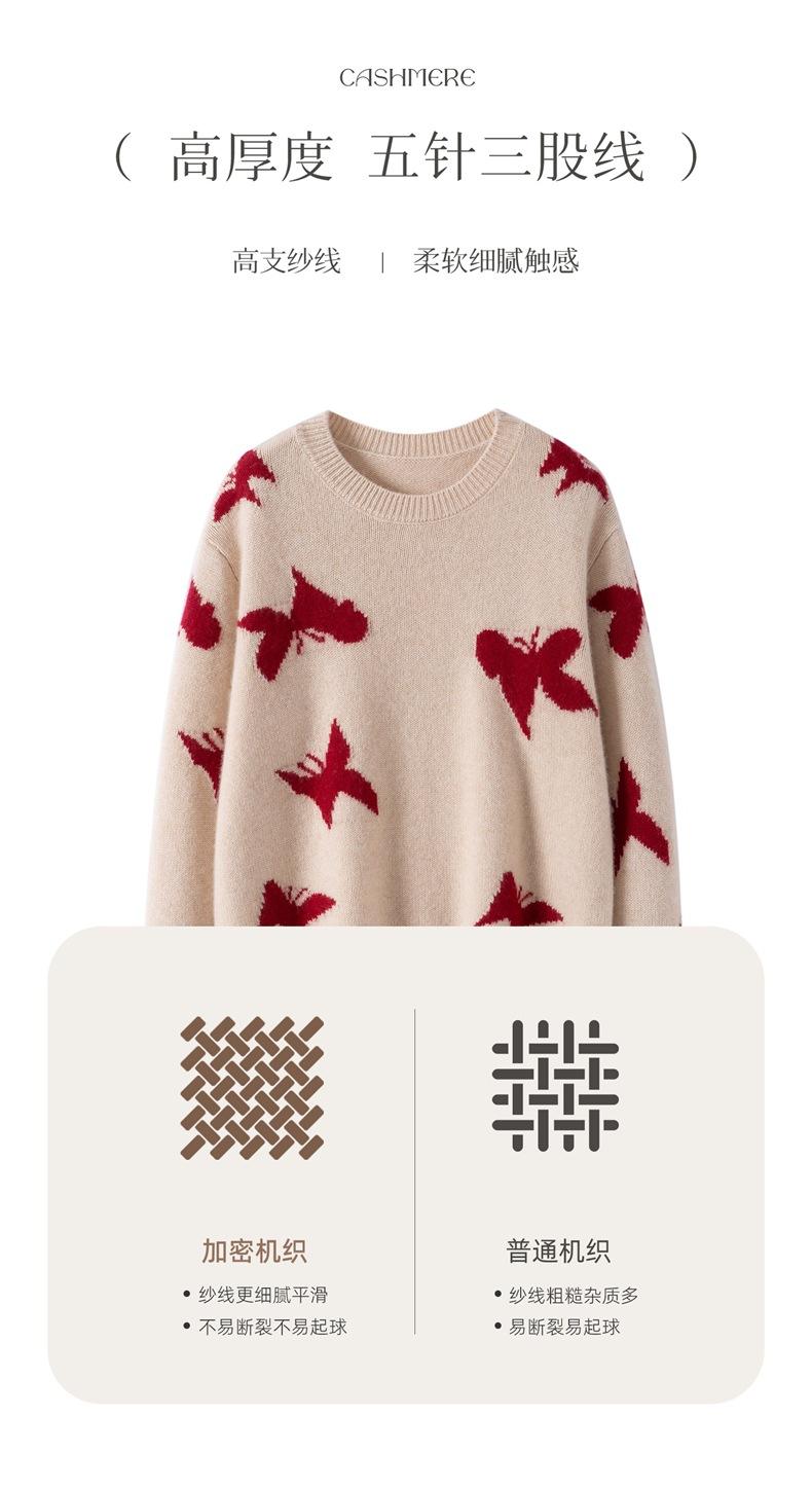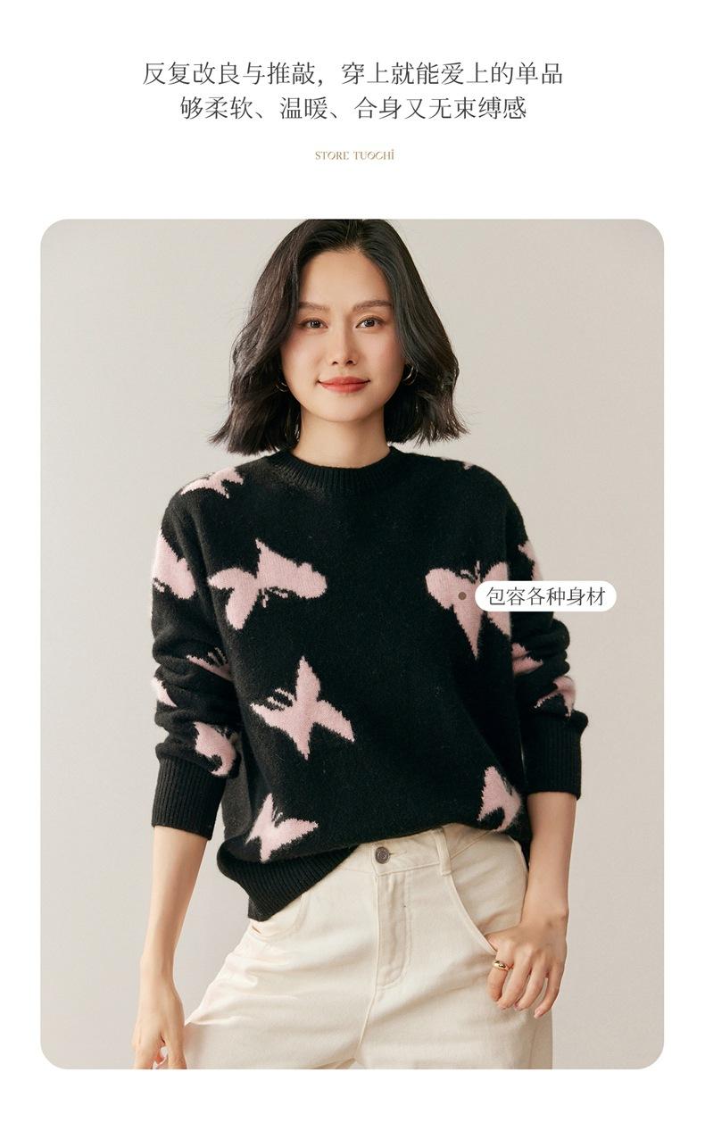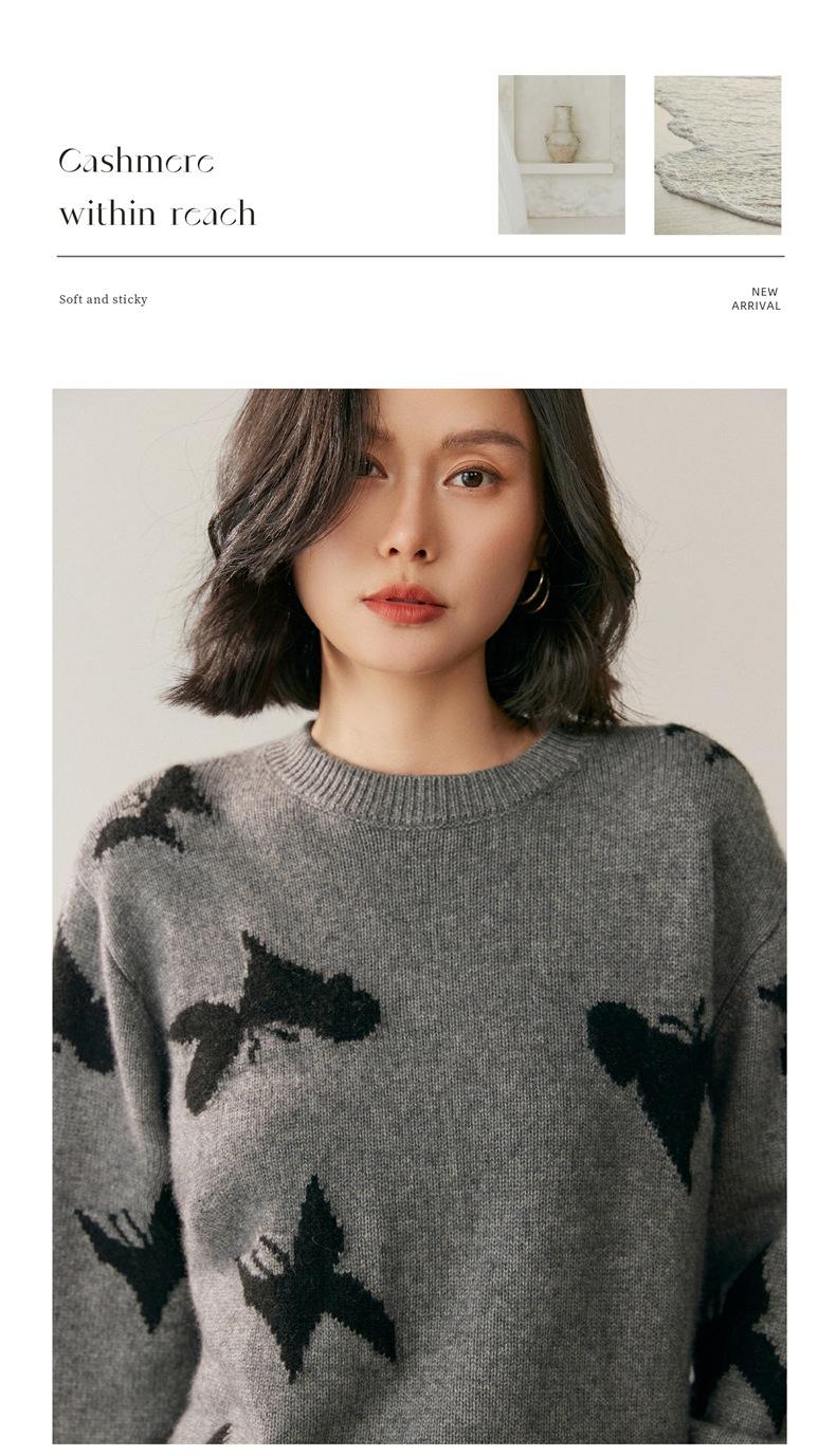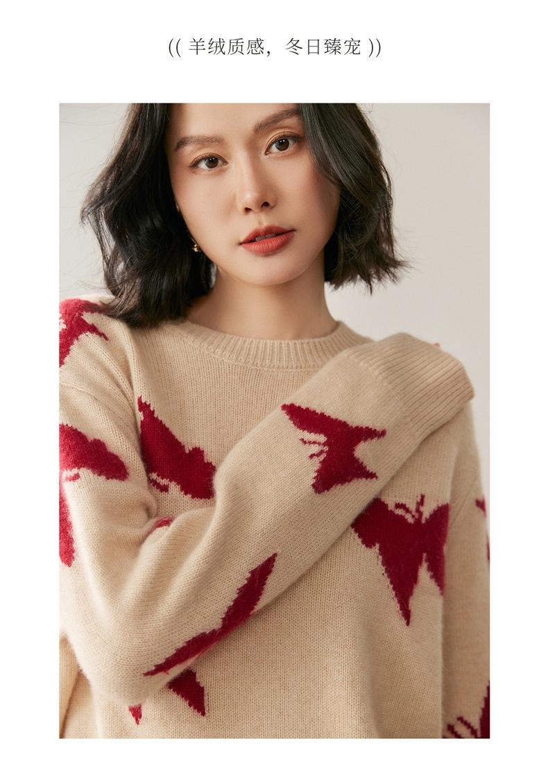 Suéter de Cachemira Mariposa 2025 Otoño e Invierno Nuevo Estilo para Mujer Cuello Redondo Camiseta Base Estilo Suave Holgado Adelgazante Corto Tejido