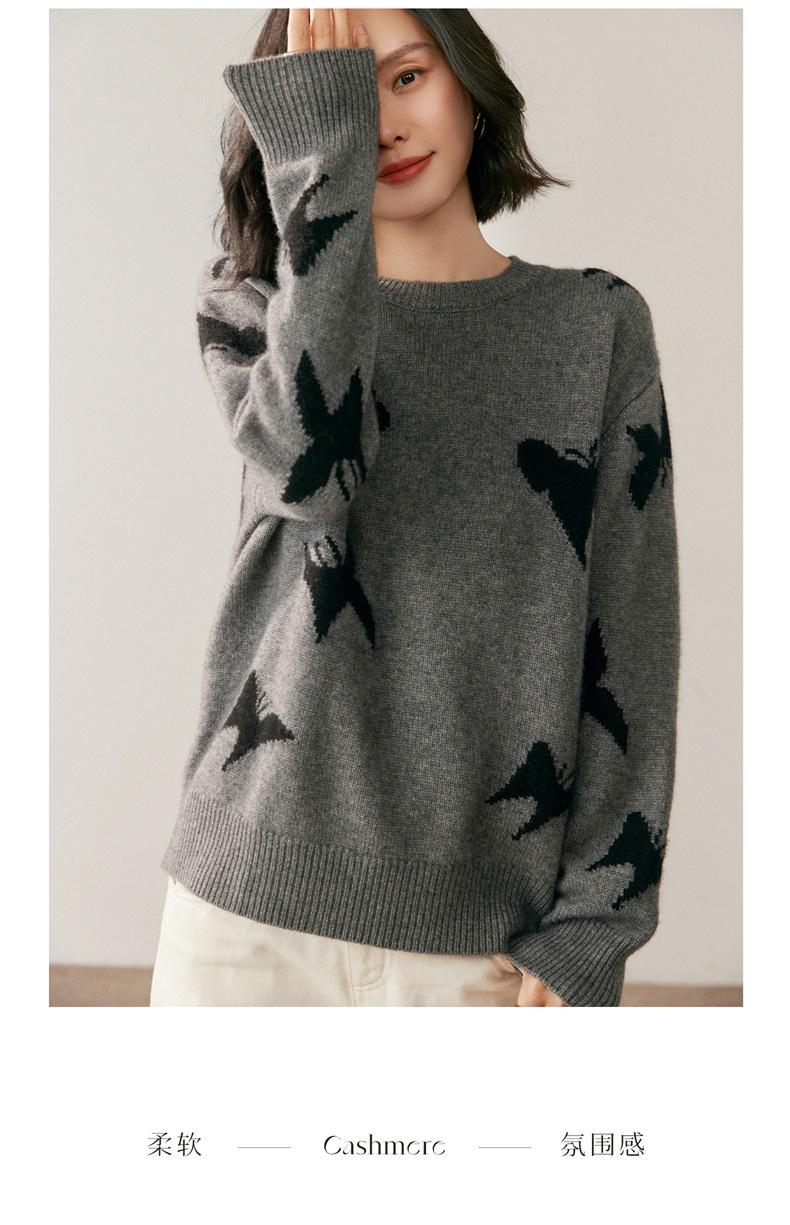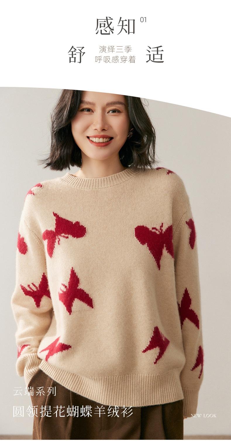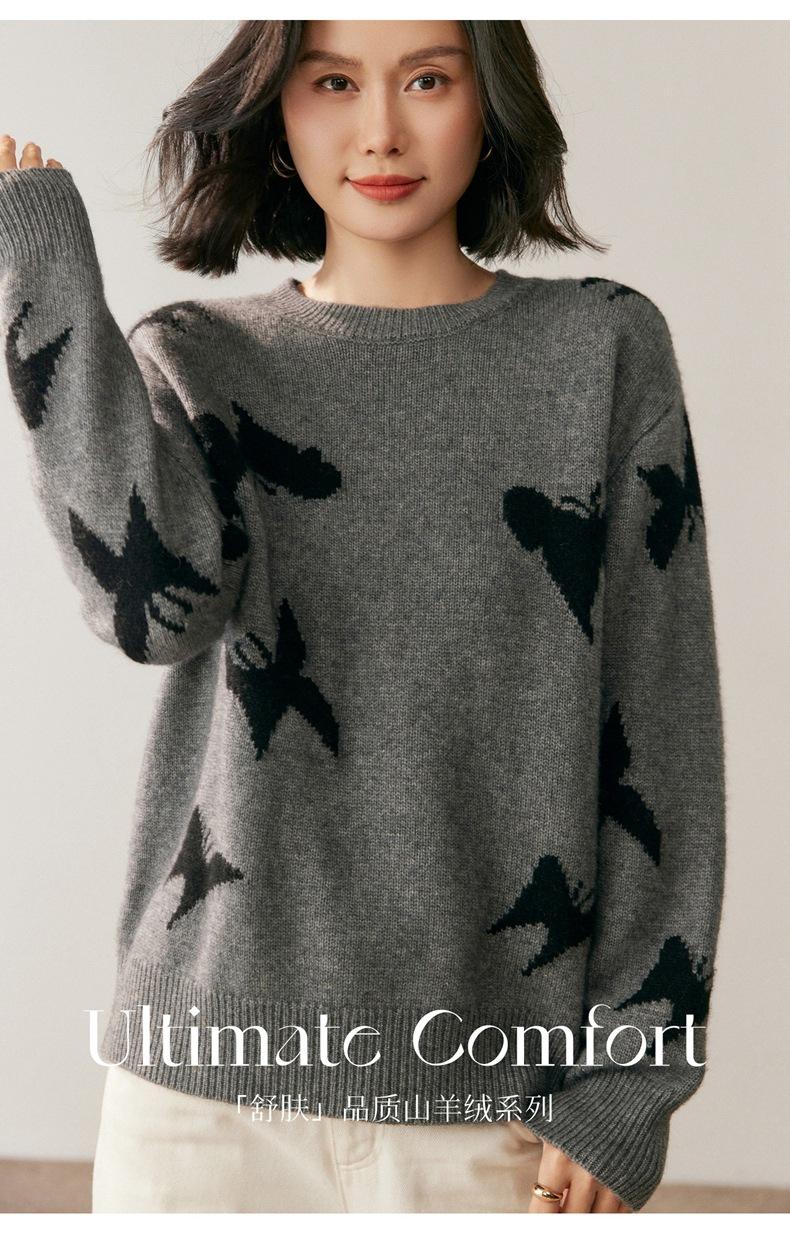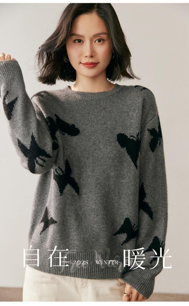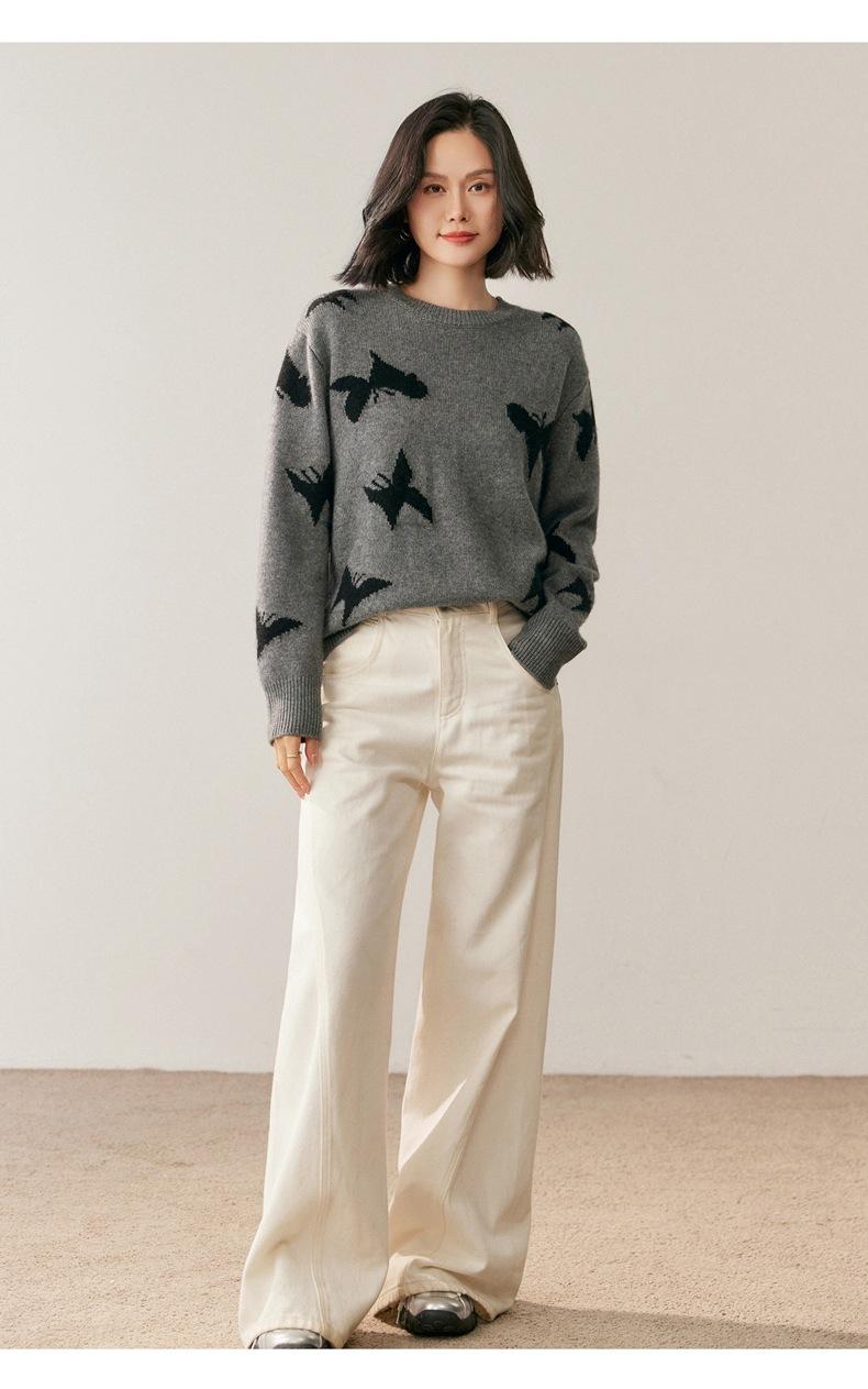 Suéter de Cachemira Mariposa 2025 Otoño e Invierno Nuevo Estilo para Mujer Cuello Redondo Camiseta Base Estilo Suave Holgado Adelgazante Corto Tejido