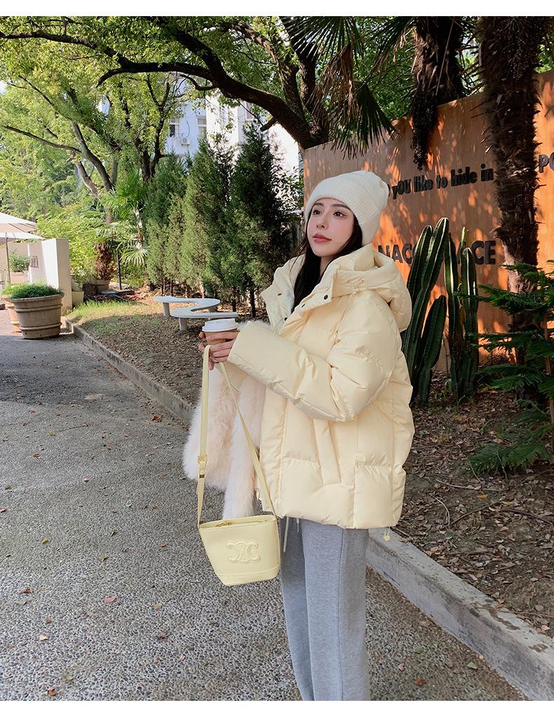 2025 nueva chamarra corta de plumón para mujer invierno engrosada holgada con capucha moda petite dulce abrigo de estudiante