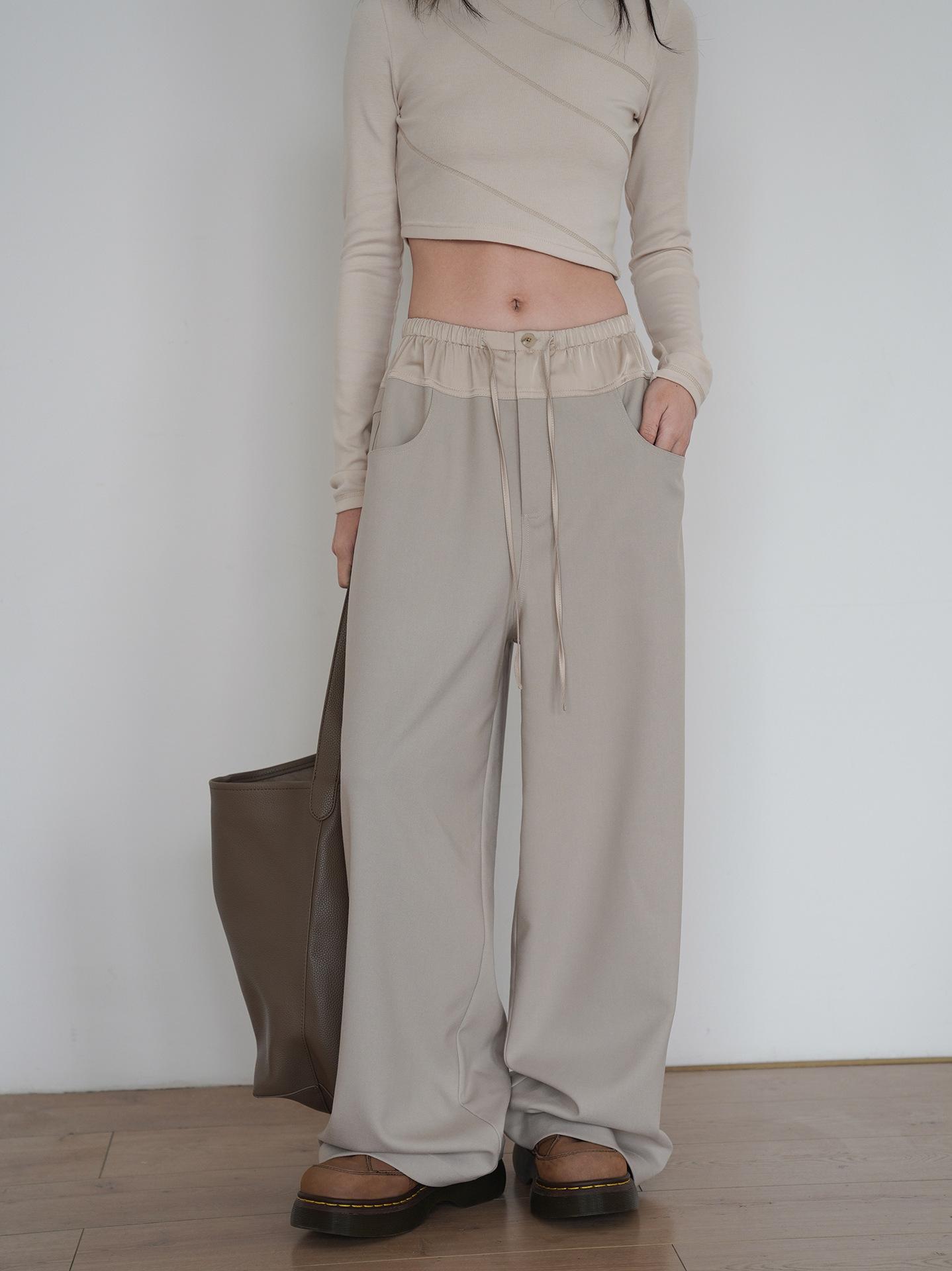 Pantalones Casuales Color Block Primavera 2025 Nuevo Suelto Versátil Pierna Ancha Pantalones de Pierna Recta Pantalones Largos Mujer