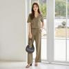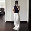 Pantalones Casuales Color Block de Dinero Viejo de Pierna Ancha Rectos para Mujer 2025 Principios de Otoño Nuevos Sueltos Adelgazantes Versátiles Hasta el Suelo