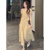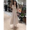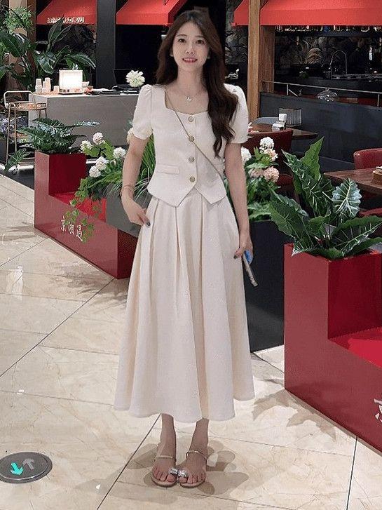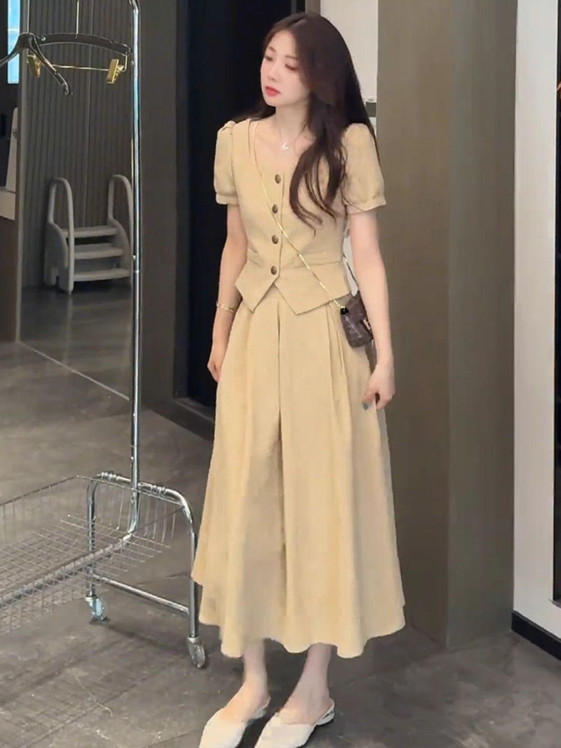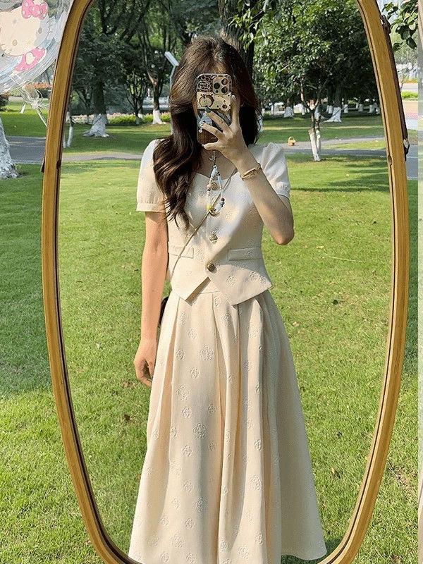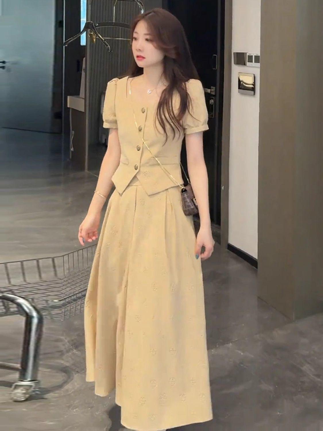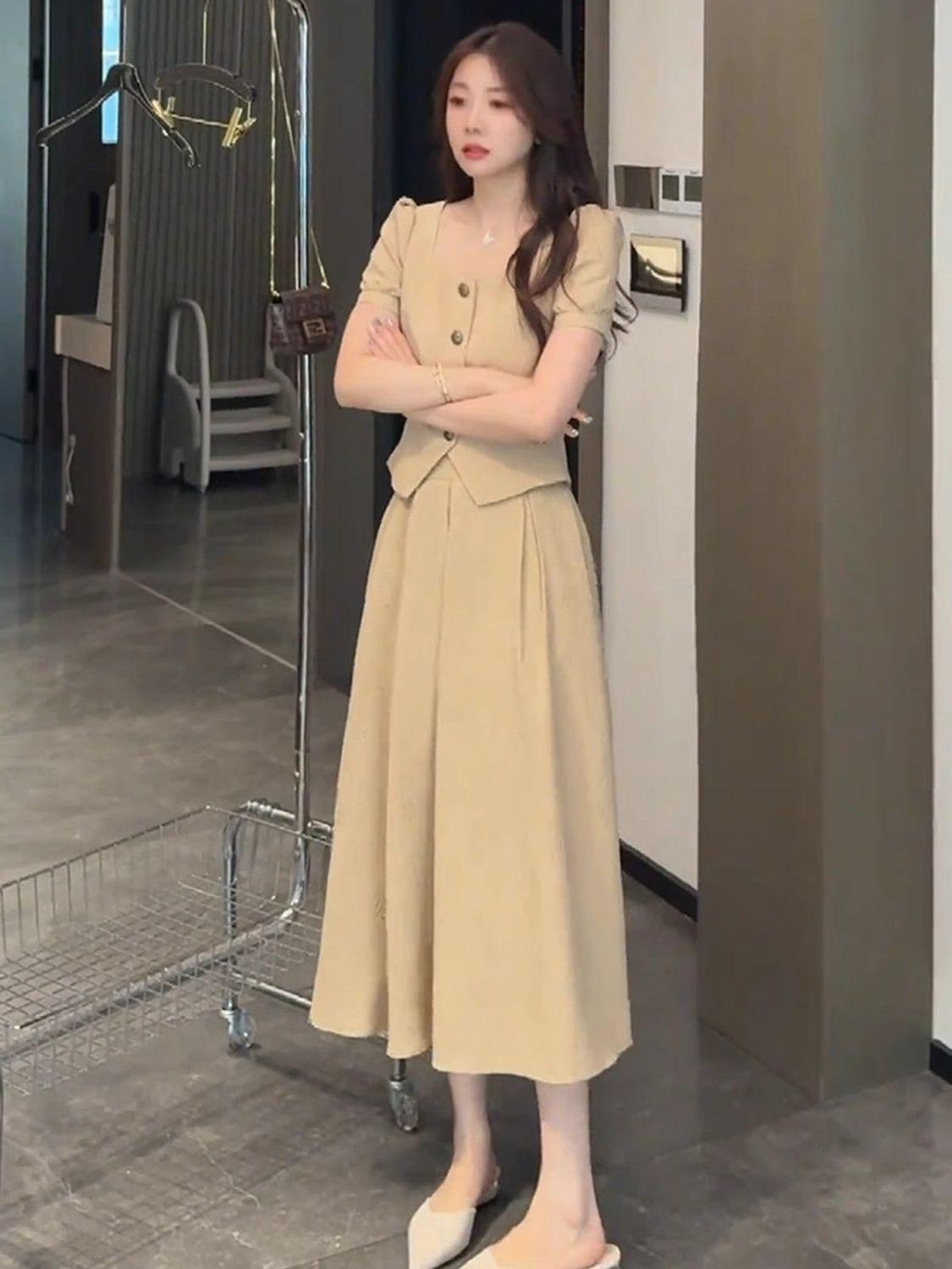Conjunto de dos piezas estilo Chanel pequeño falda mujer verano 2025 ceñido a la cintura estilo coreano top corto de alta gama falda midi de talle alto
