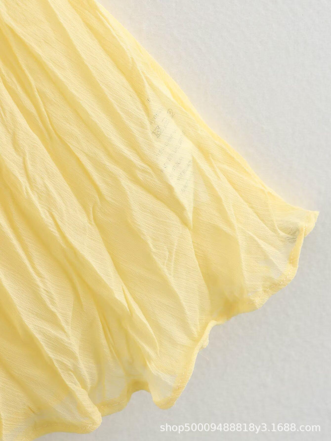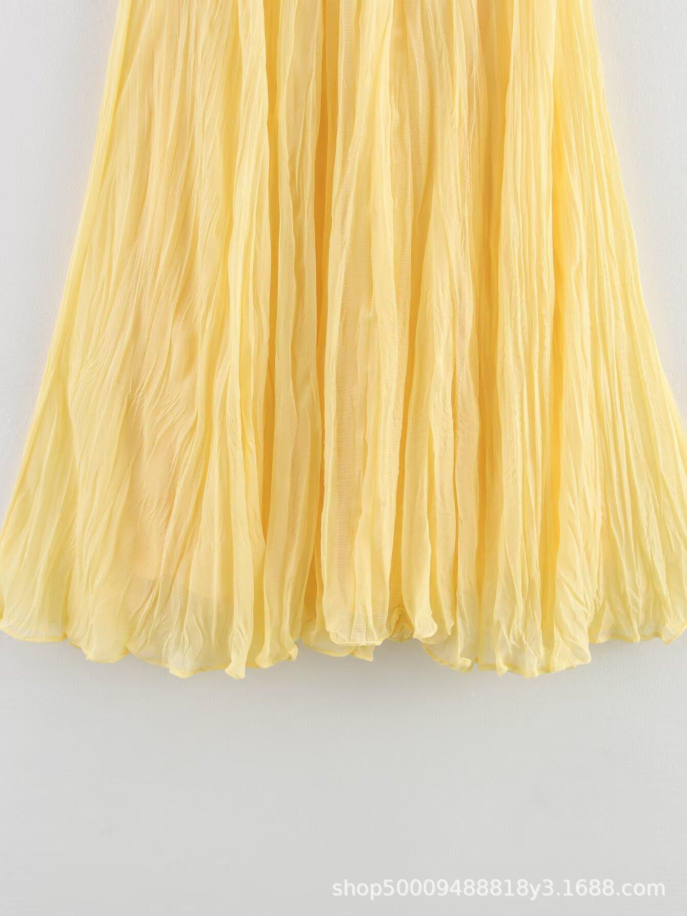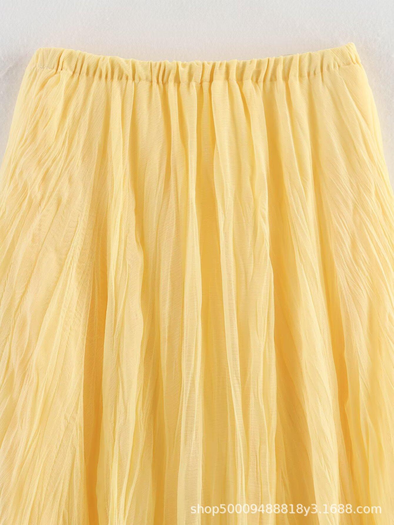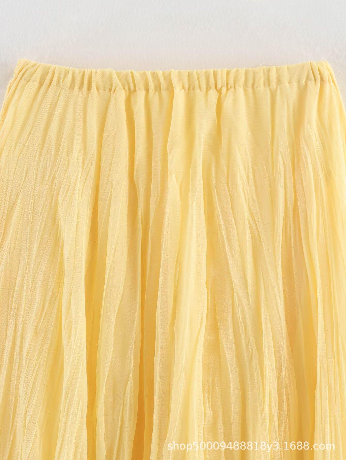 Estilo Europeo y Americano Comercio Exterior para Mujer Nuevo Verano 2025 Moda Francesa Versátil Color Sólido Adelgazante de Cintura Alta Falda Plisada
