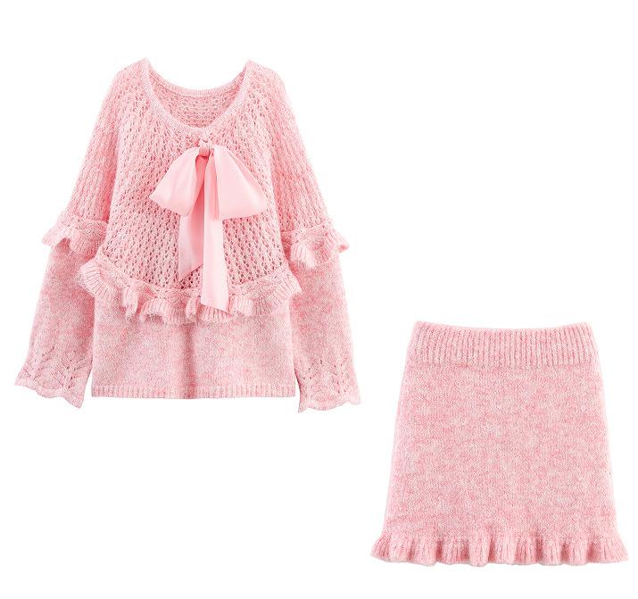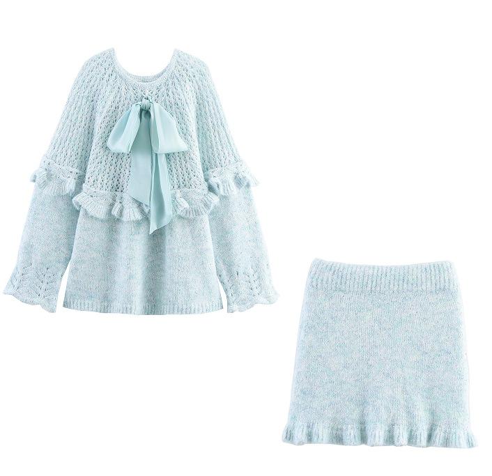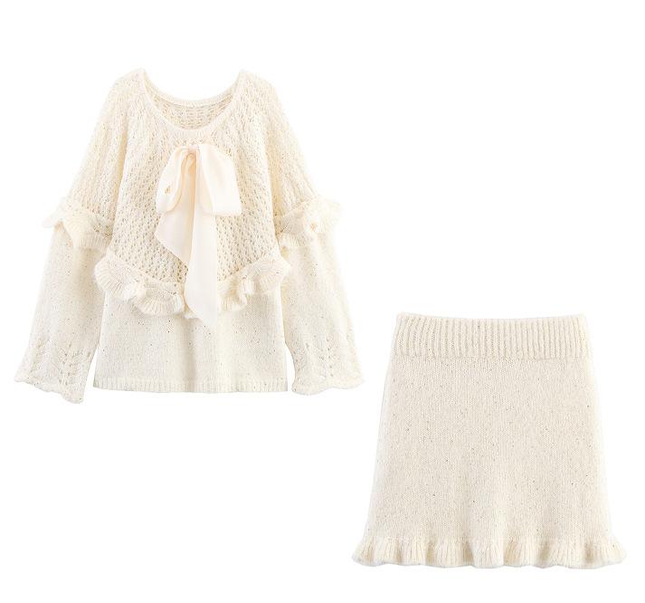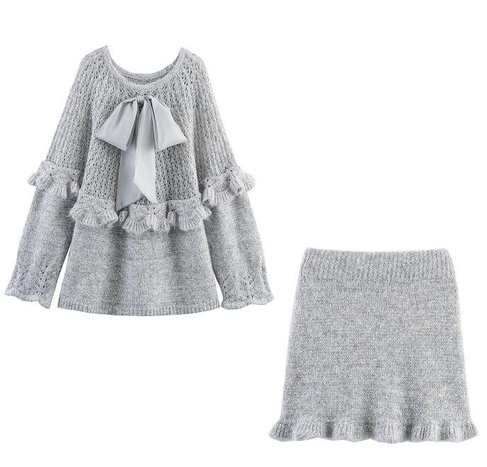 Ropa de mujer exclusiva transfronteriza europea y americana AliExpress INS estilo hot top de punto + conjunto falda midi