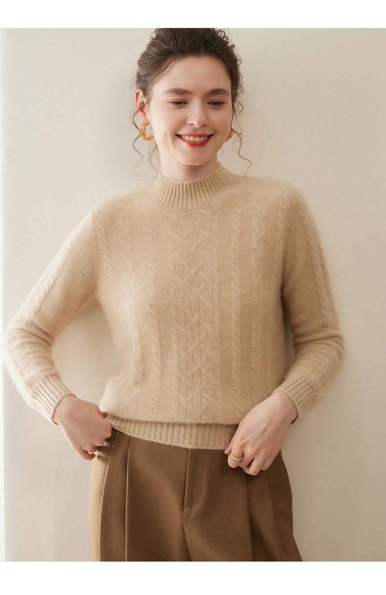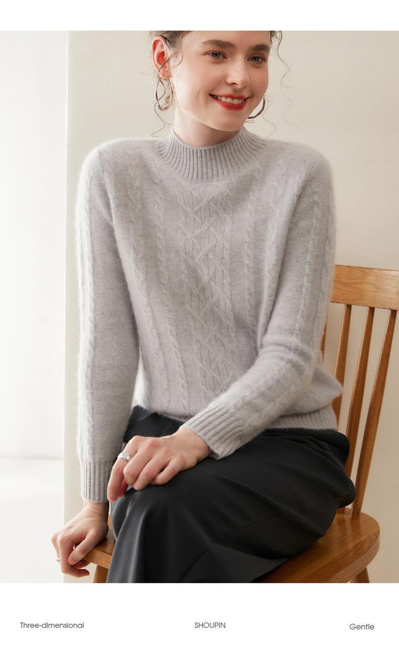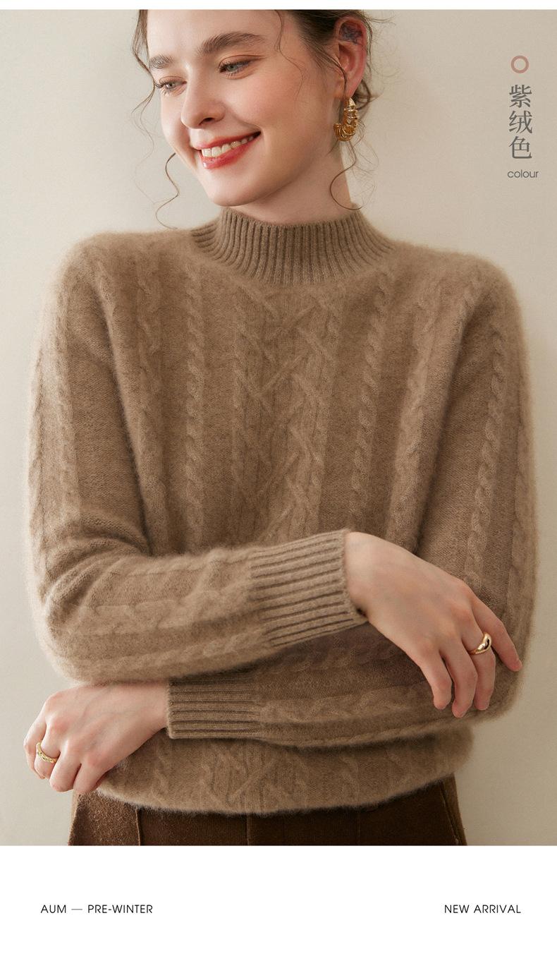 Nuevo Suéter de Cachemira Otoño/Invierno para Mujer Jersey Estilo Relajado 100% Cachemira Pura Grueso Manga Larga Tejido Suéter Base