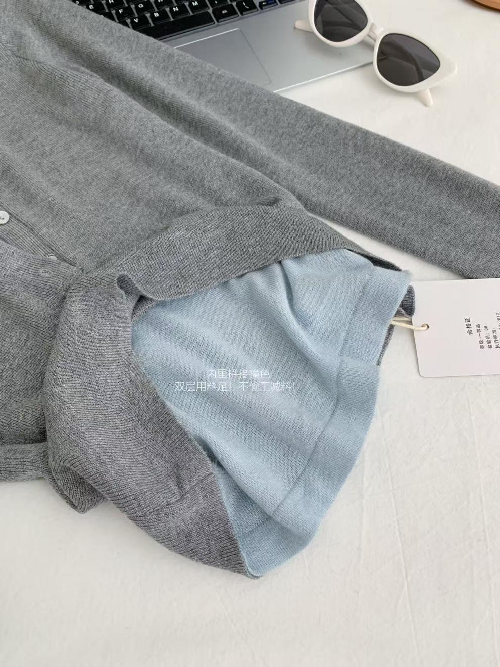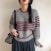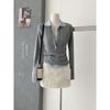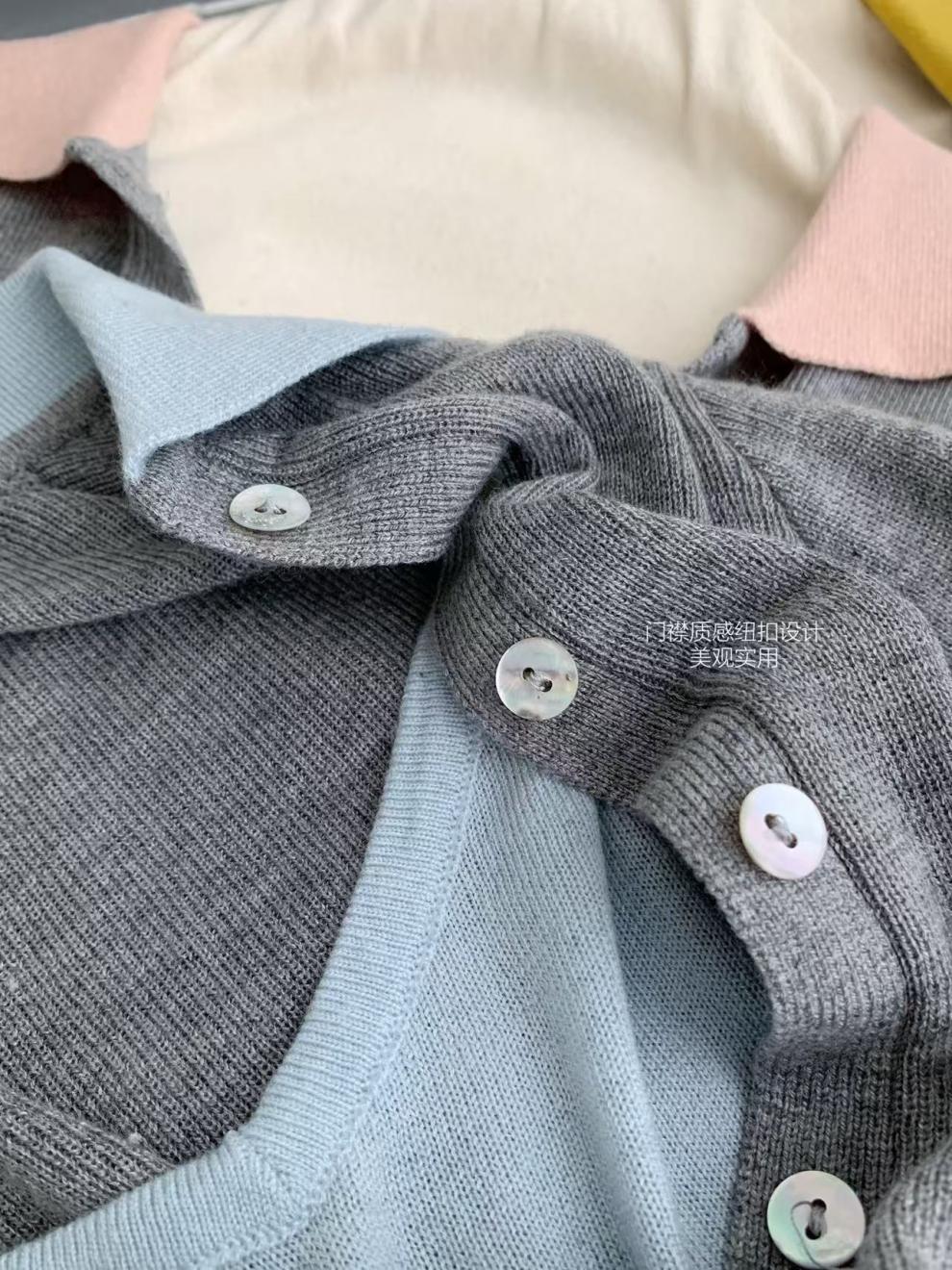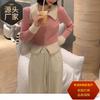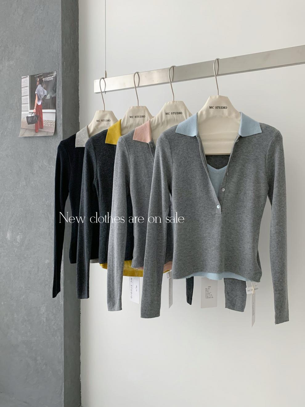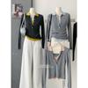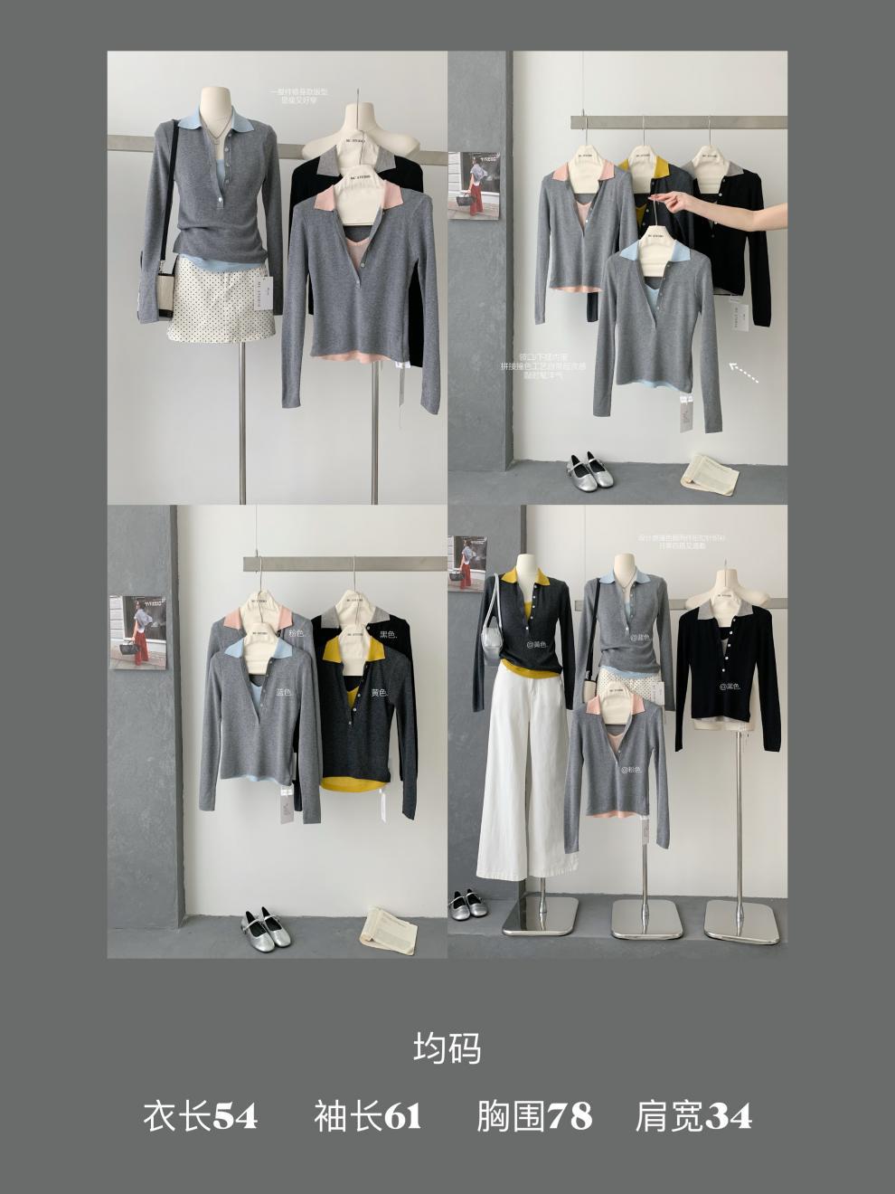 Diseño sentido color block falso dos piezas solapa ajuste ceñido casual punto para mujer otoño estilo coreano top de manga larga de alta gama