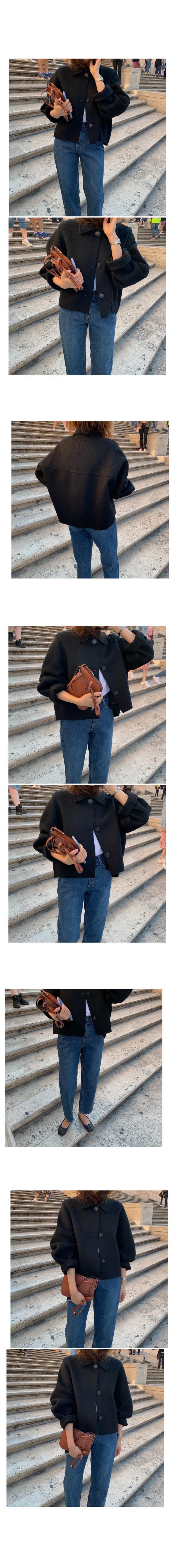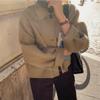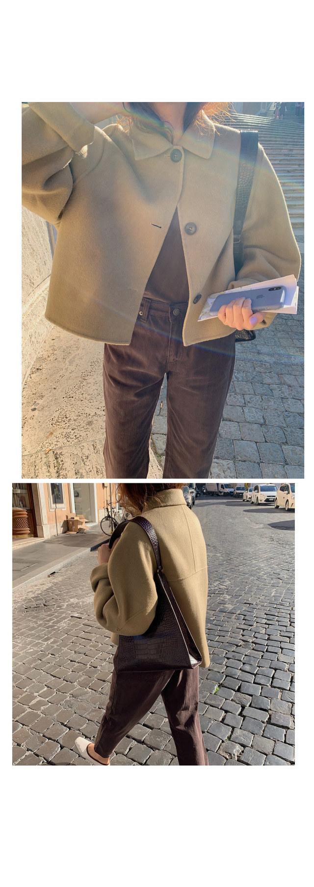 En stock chic coreano otoño e invierno temperamento retro cuello vuelto botonadura sencilla suelto mezcla de lana petite abrigo corto mujeres