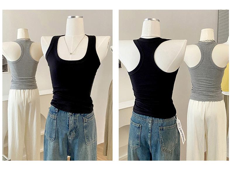 Verano Estilo Americano Chica Caliente Chic Colgante Cuello Cuadrado Chaleco en I Camisola Base para Mujer Bolsillo Top Usando Espalda Hermosa