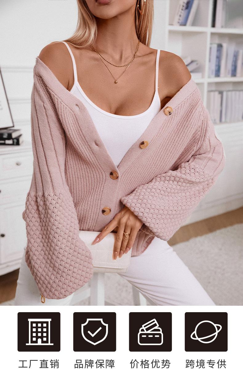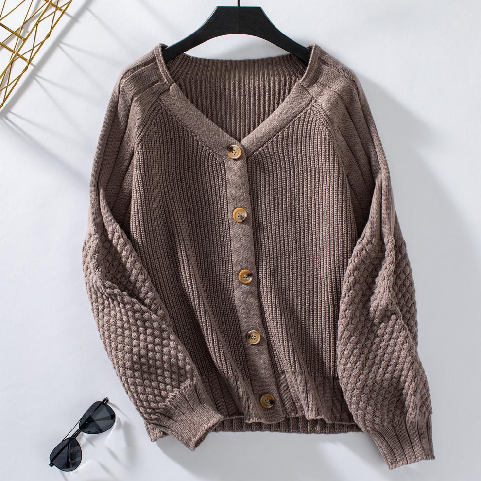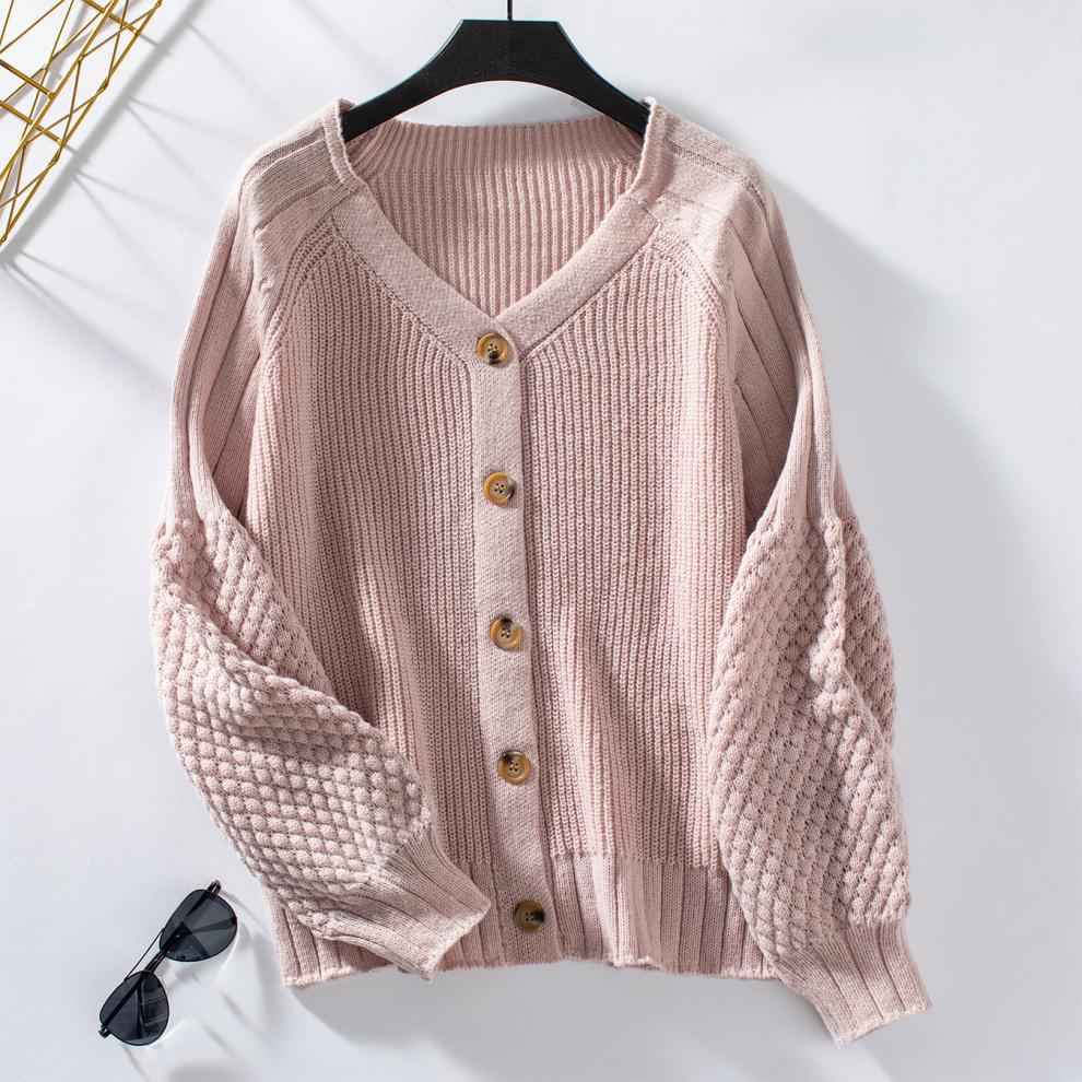 Cárdigan de Punto con Botones de Color Sólido Nuevo Otoño/Invierno 2025 Europeo y Americano Transfronterizo Suéter de Manga Farol Suelto Casual para Mujer
