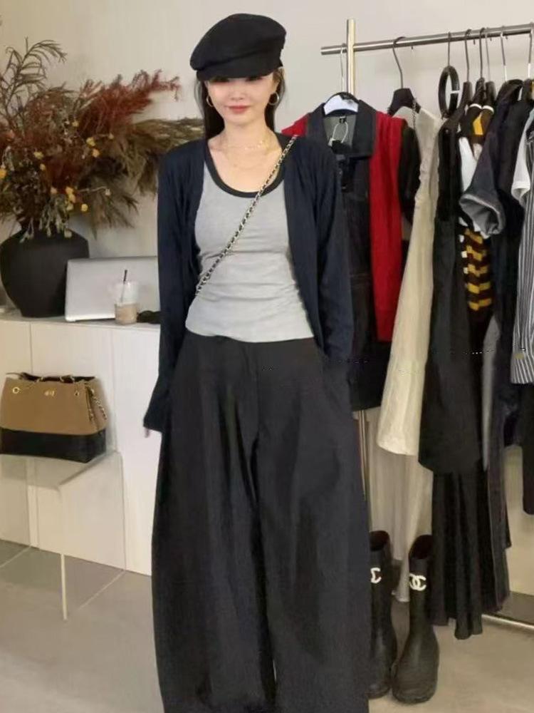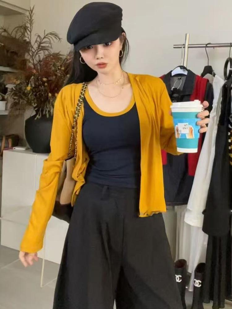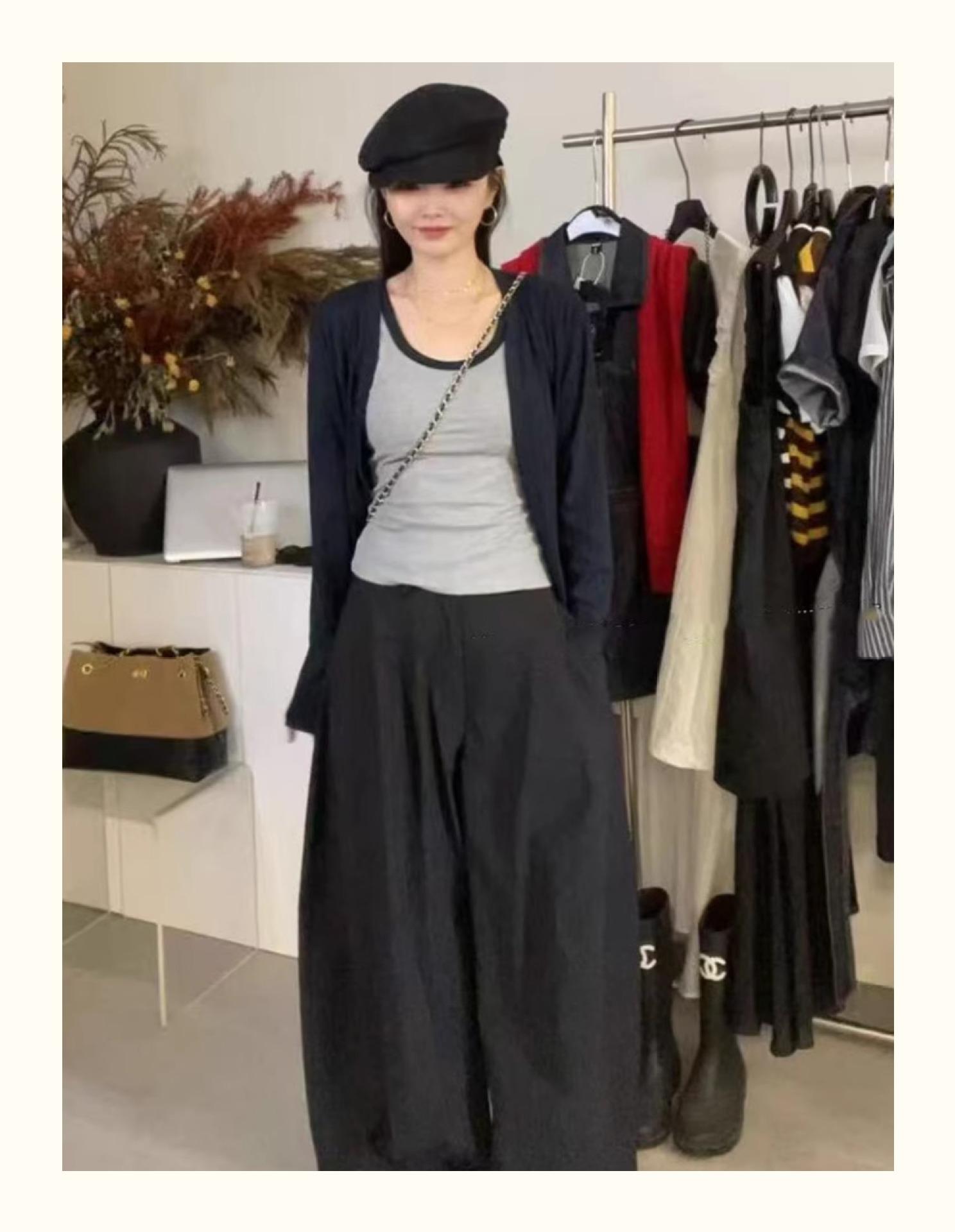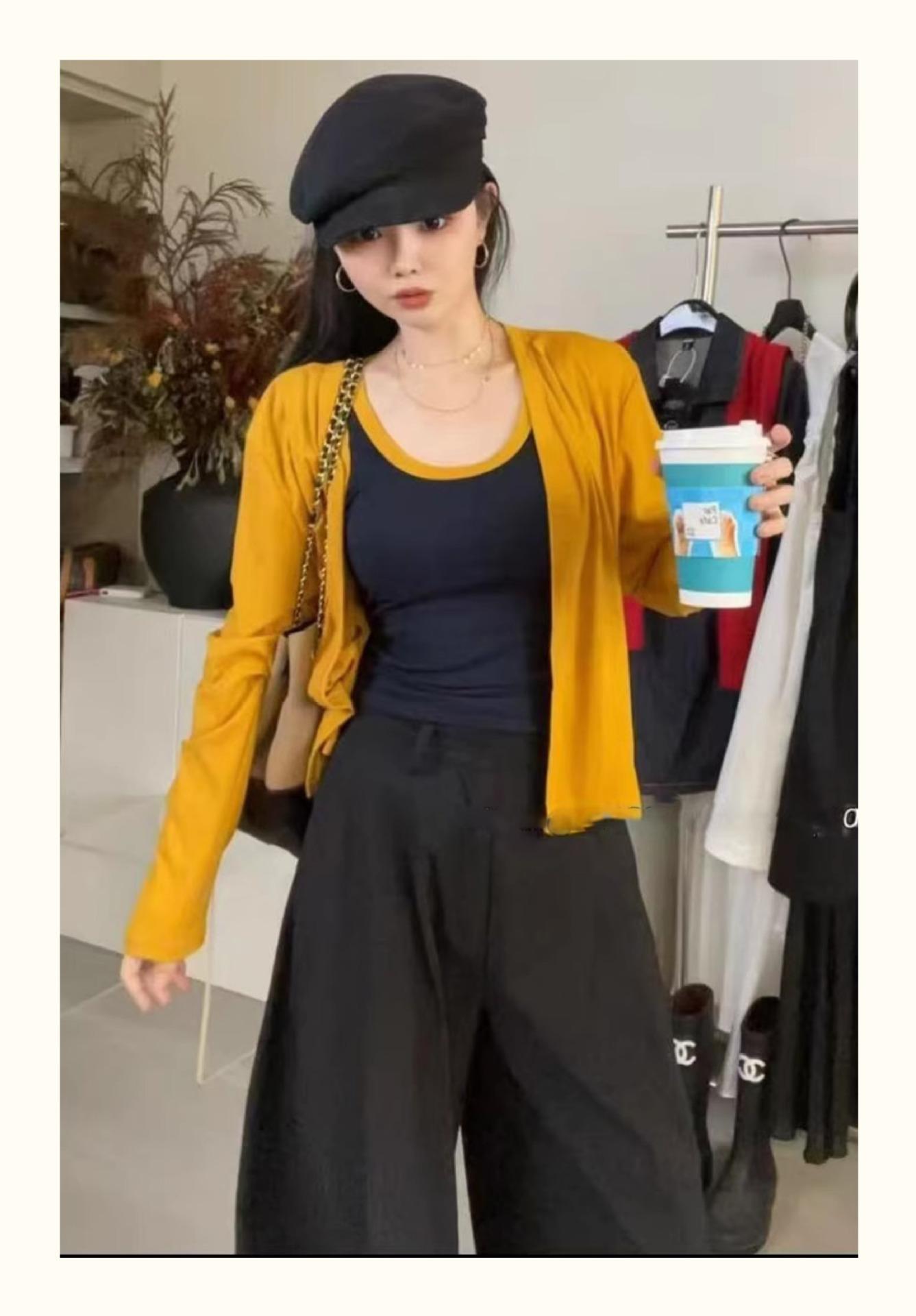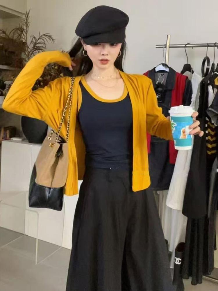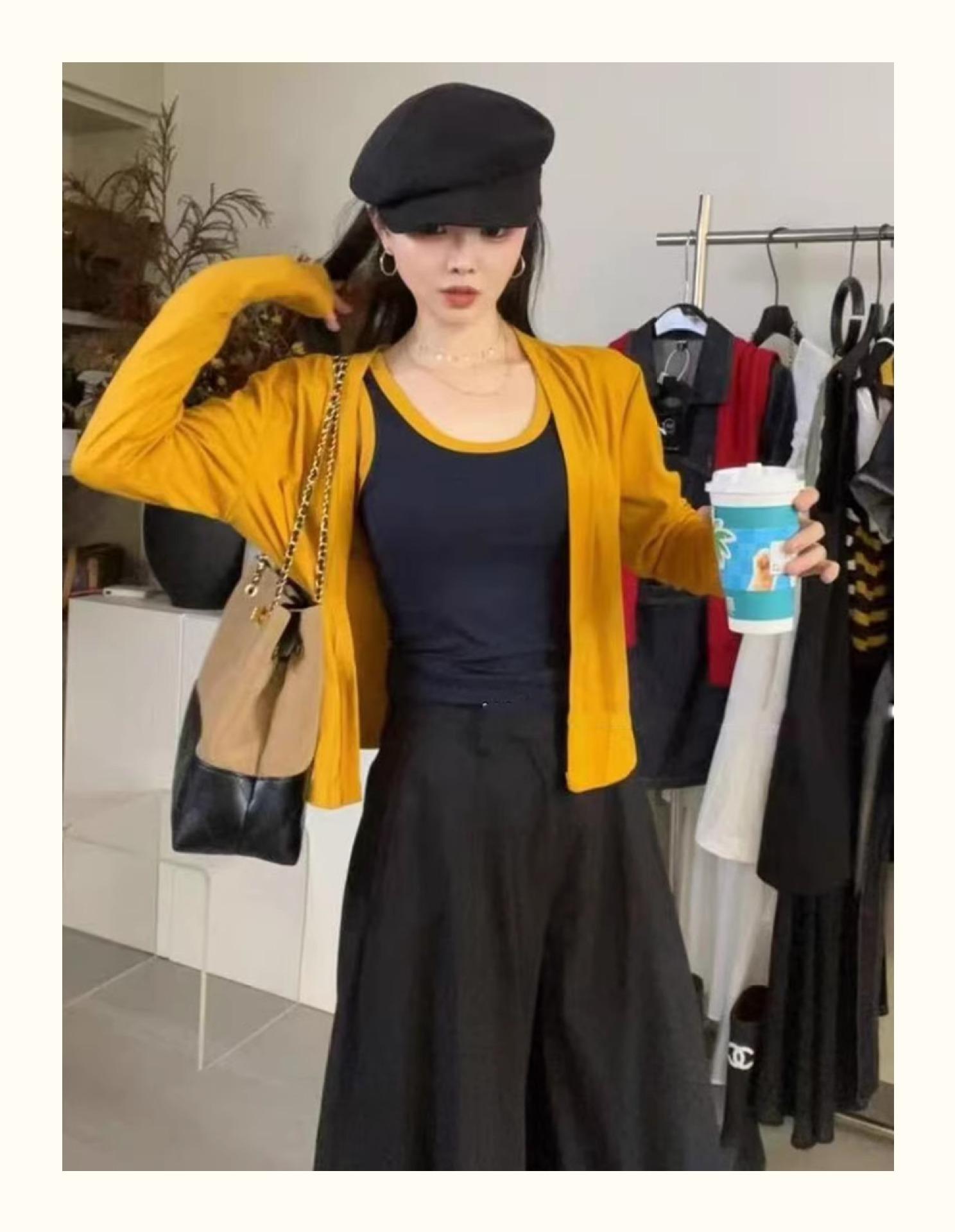 Cárdigan de Manga Larga de Diseño Coreano + Conjunto de Chaleco Mujer Otoño 2025 Nuevo Holgado Adelgazante Petite Top
