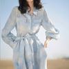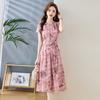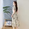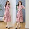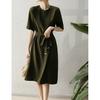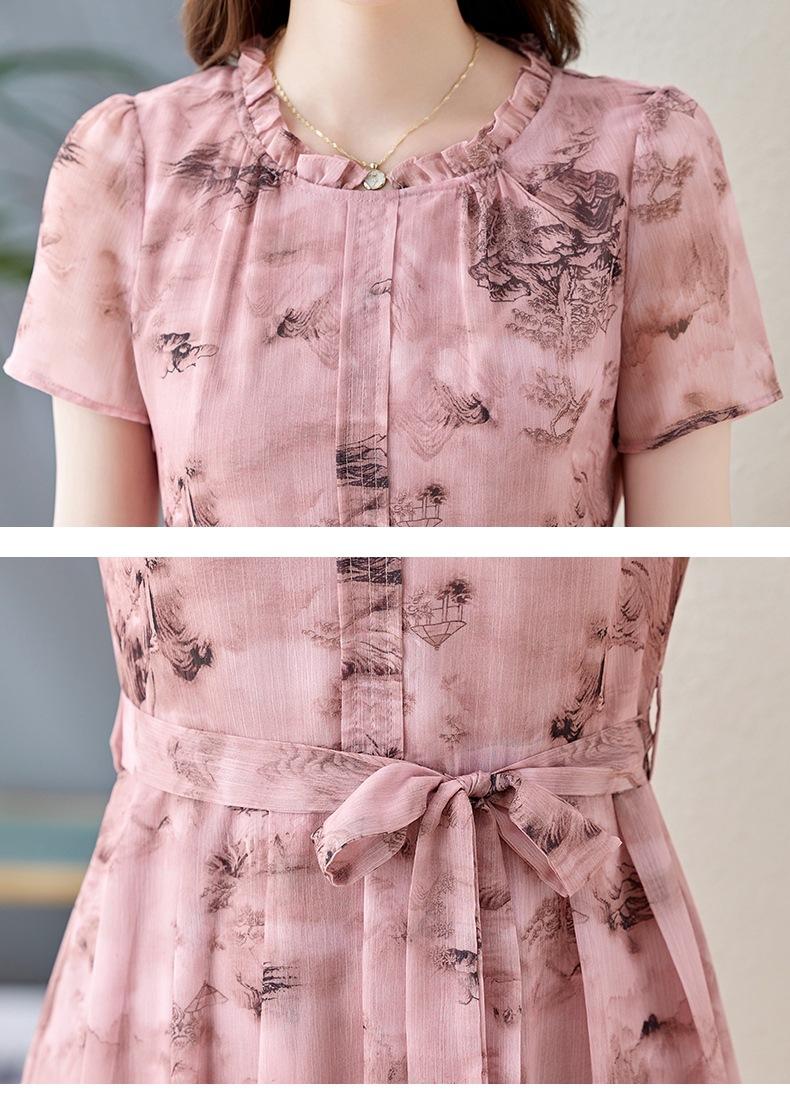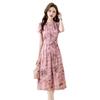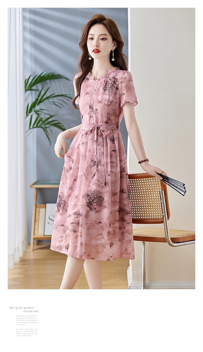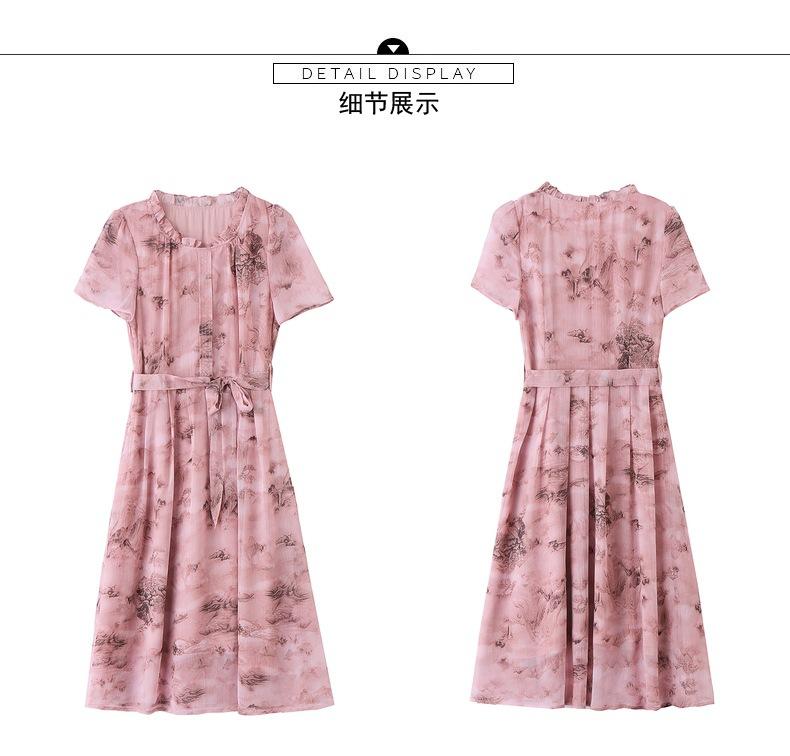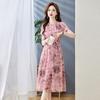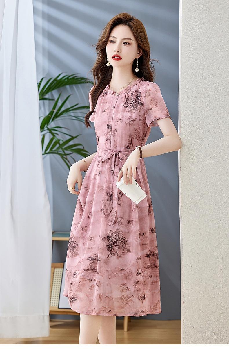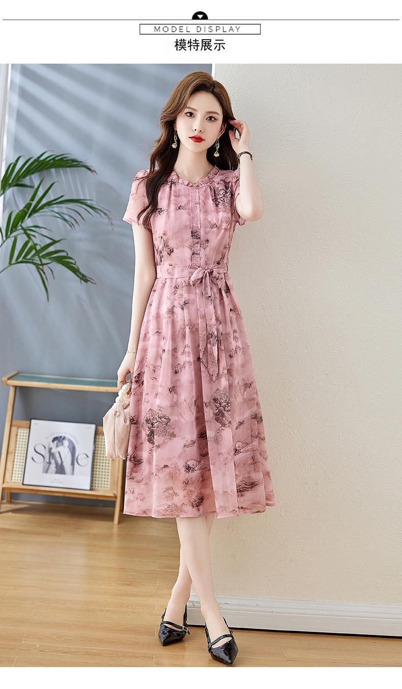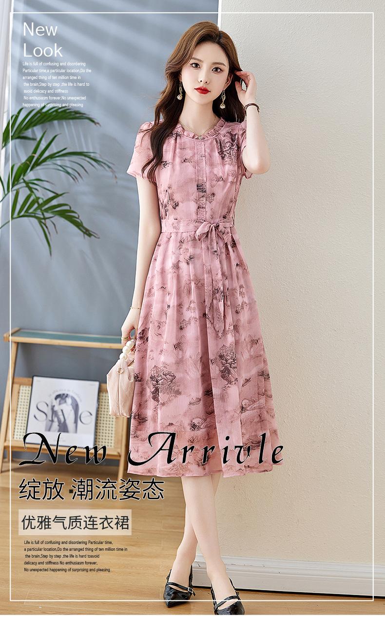 Vestido Floral de Seda de Morera, Falda de Encaje Moderna y Elegante con Cuello Redondo, Ropa de Trabajo Diaria Elegante, Falda Larga Generosa con Cordones