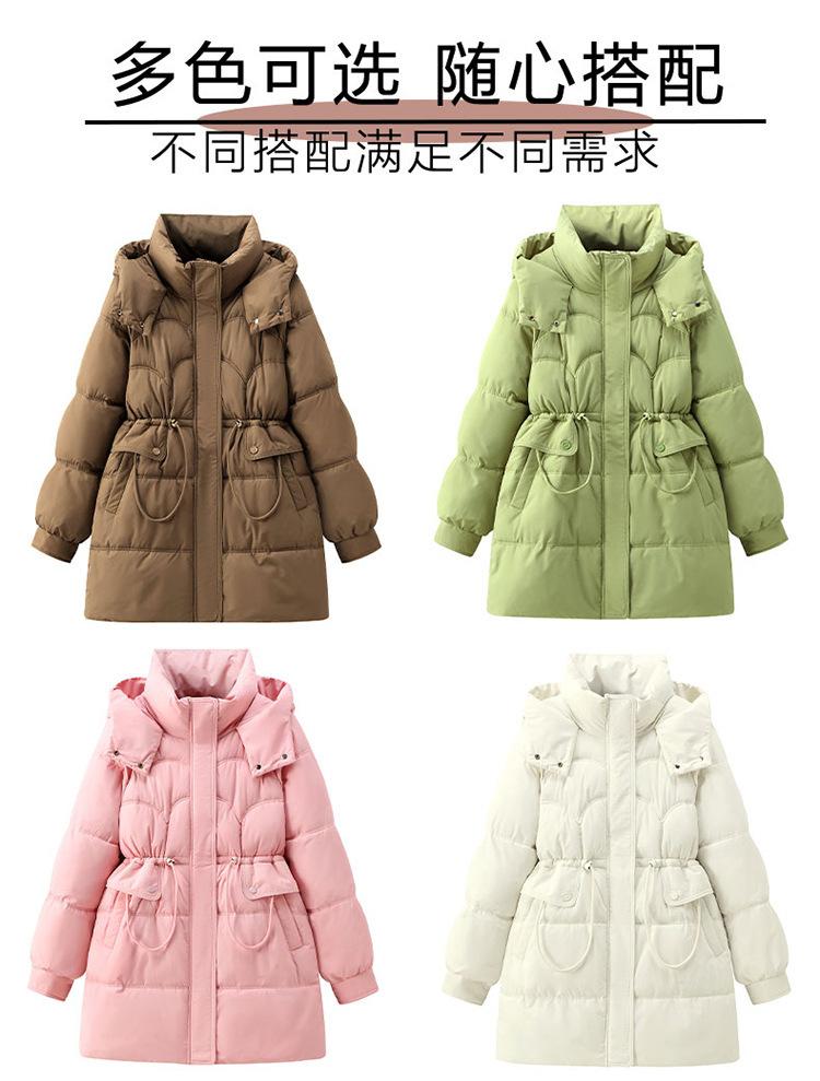 Abrigo de Algodón Acolchado Invierno 2024 Nuevo Estilo Coreano para Mujer Largo Medio con Capucha Engrosado Adelgazante Cálido Talla Pequeña Ropa Exterior