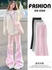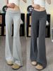 Pantalones acampanados grises de cintura doblada para mujer Otoño 2025 Nuevo Cintura alta Casual Adelgazantes Drapeados Micro acampanados Yoga Deporte Pantalones de sudor