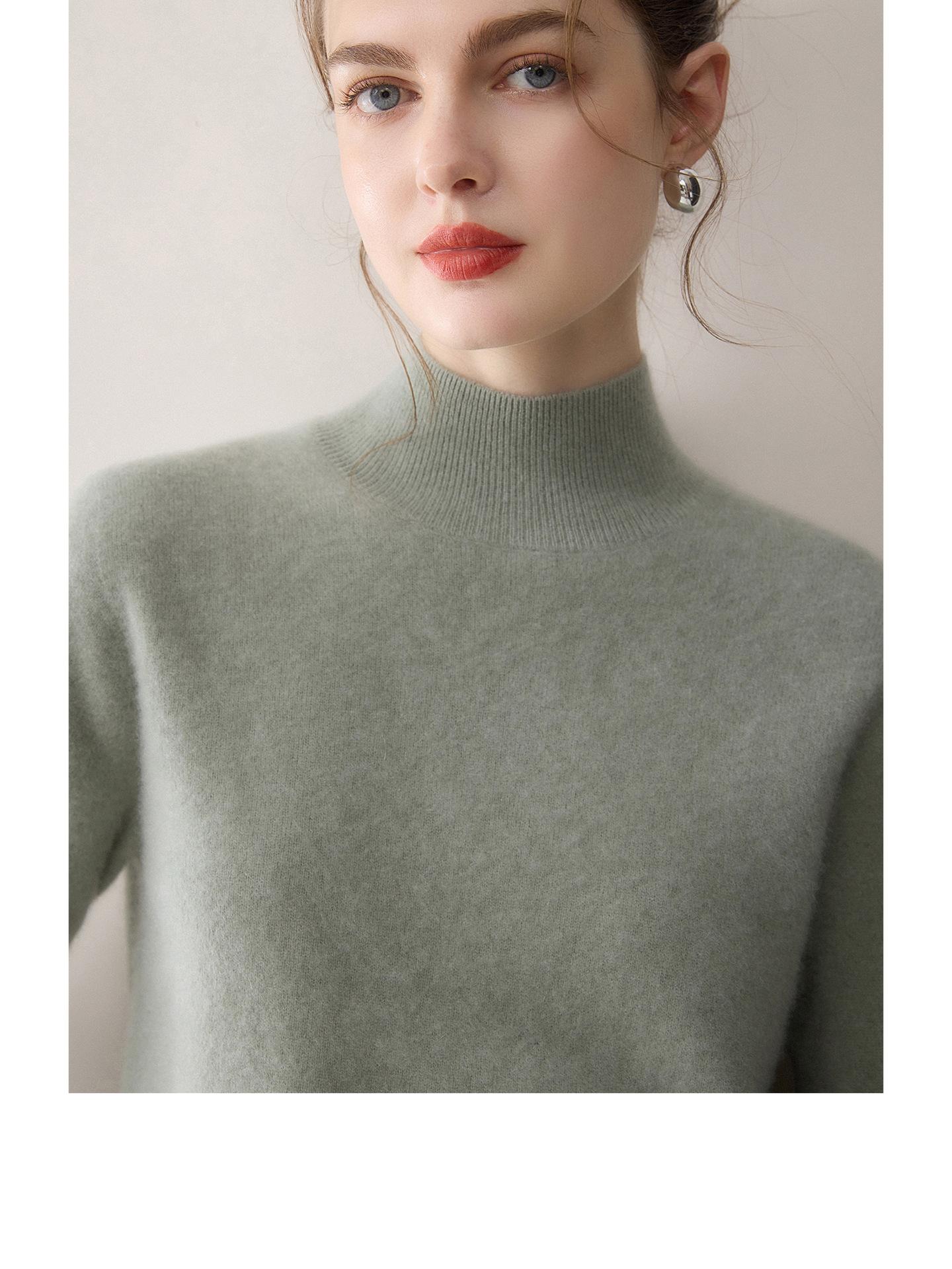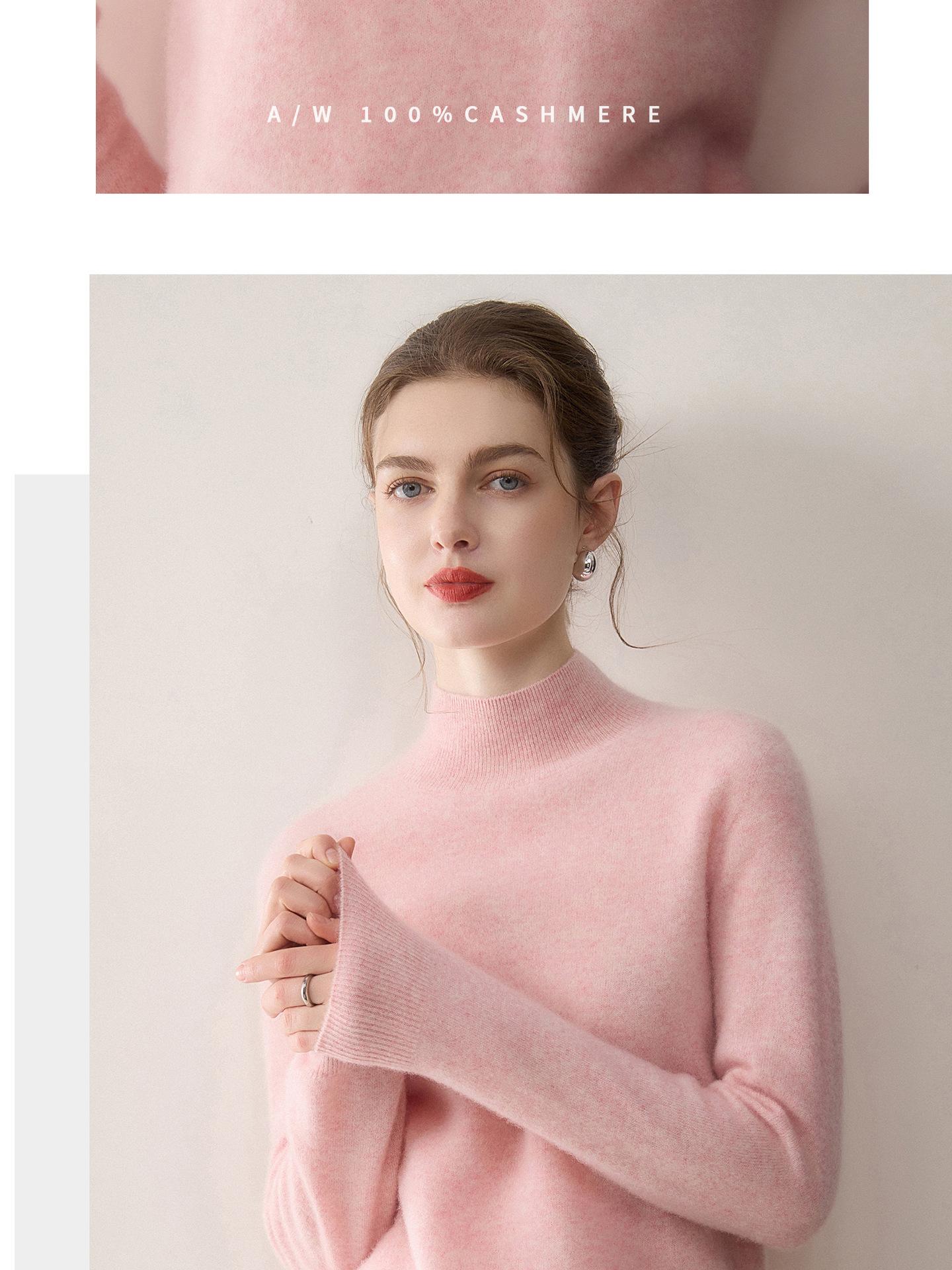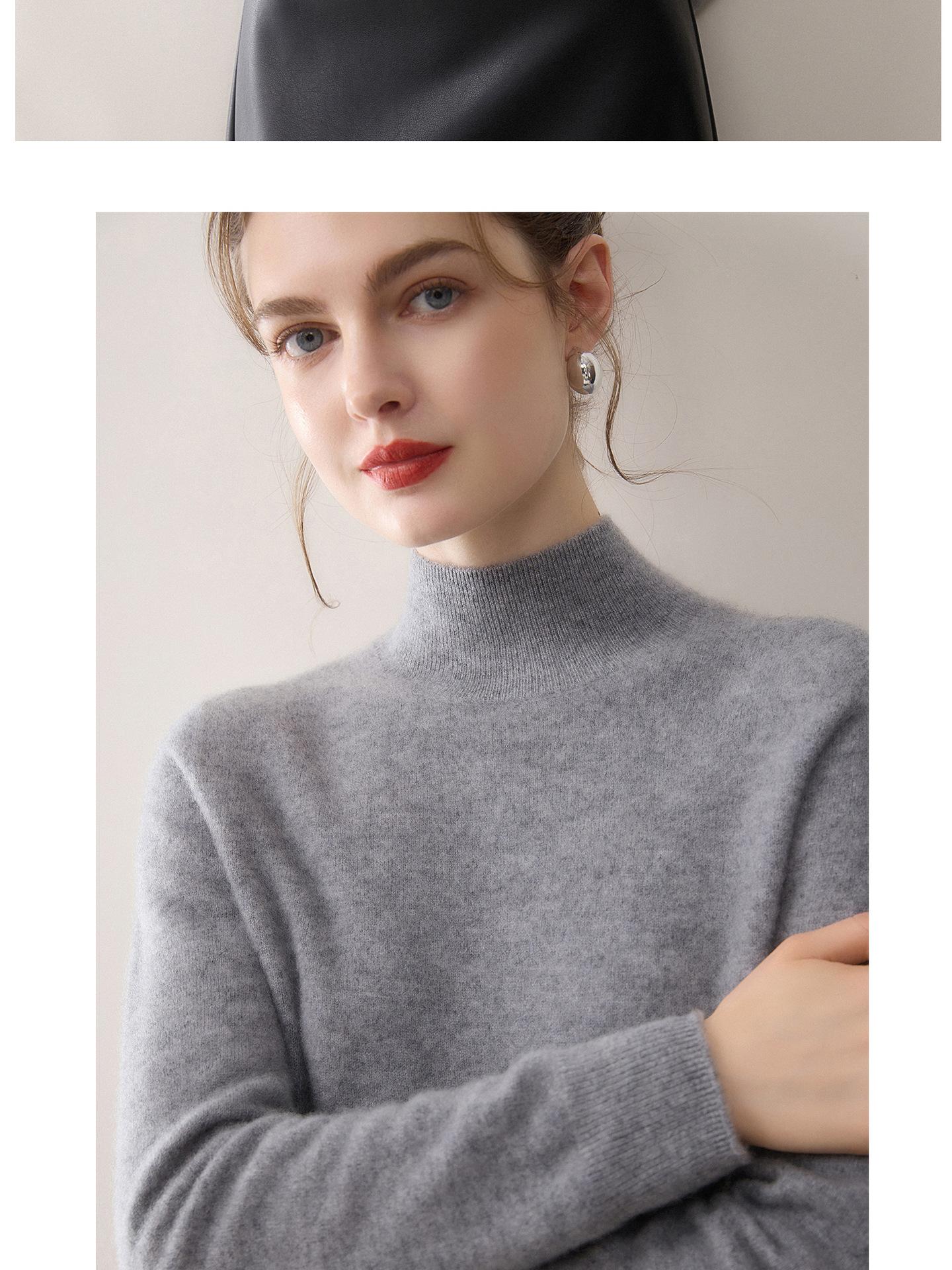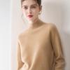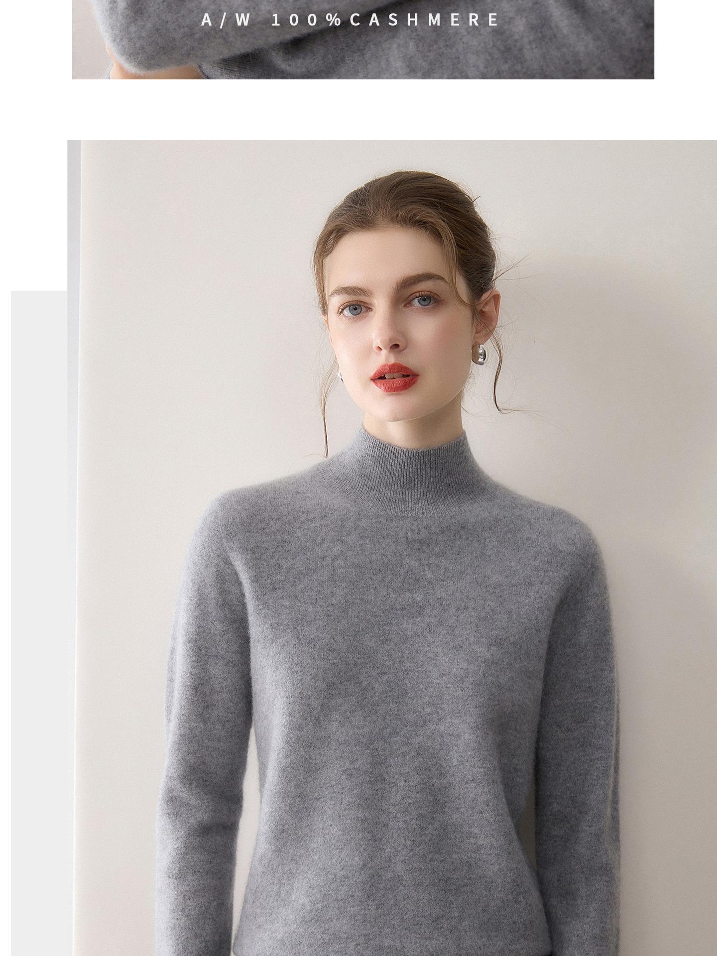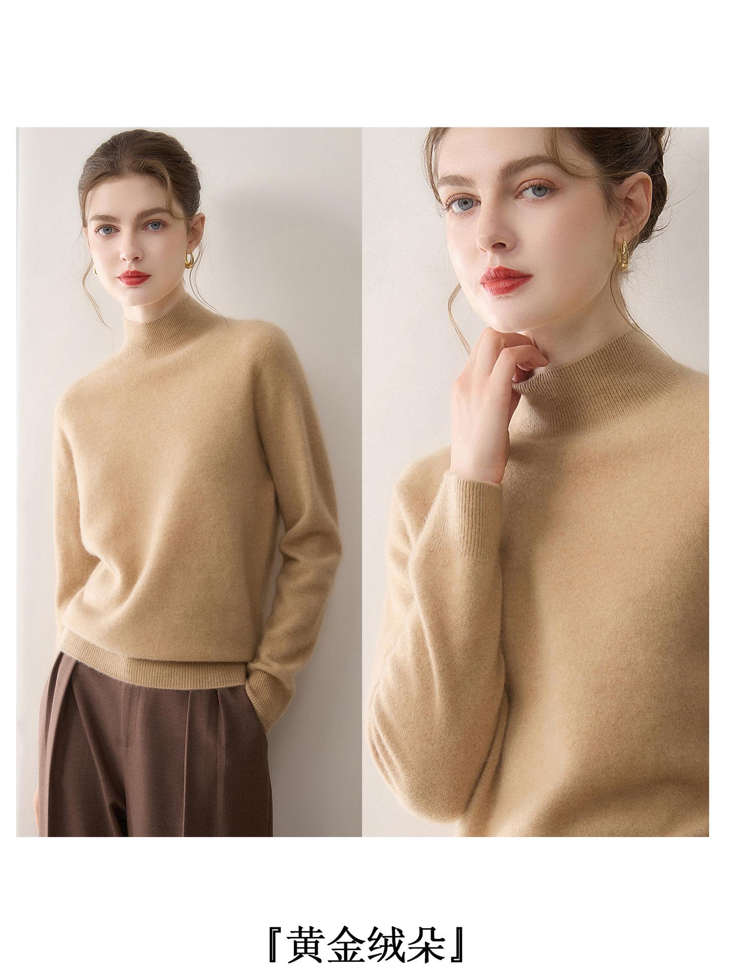 Suéter de una pieza de cuello semi-alto 100% cachemira pura para mujer, suéter versátil de color sólido, cálido tejido de punto, capa base interior