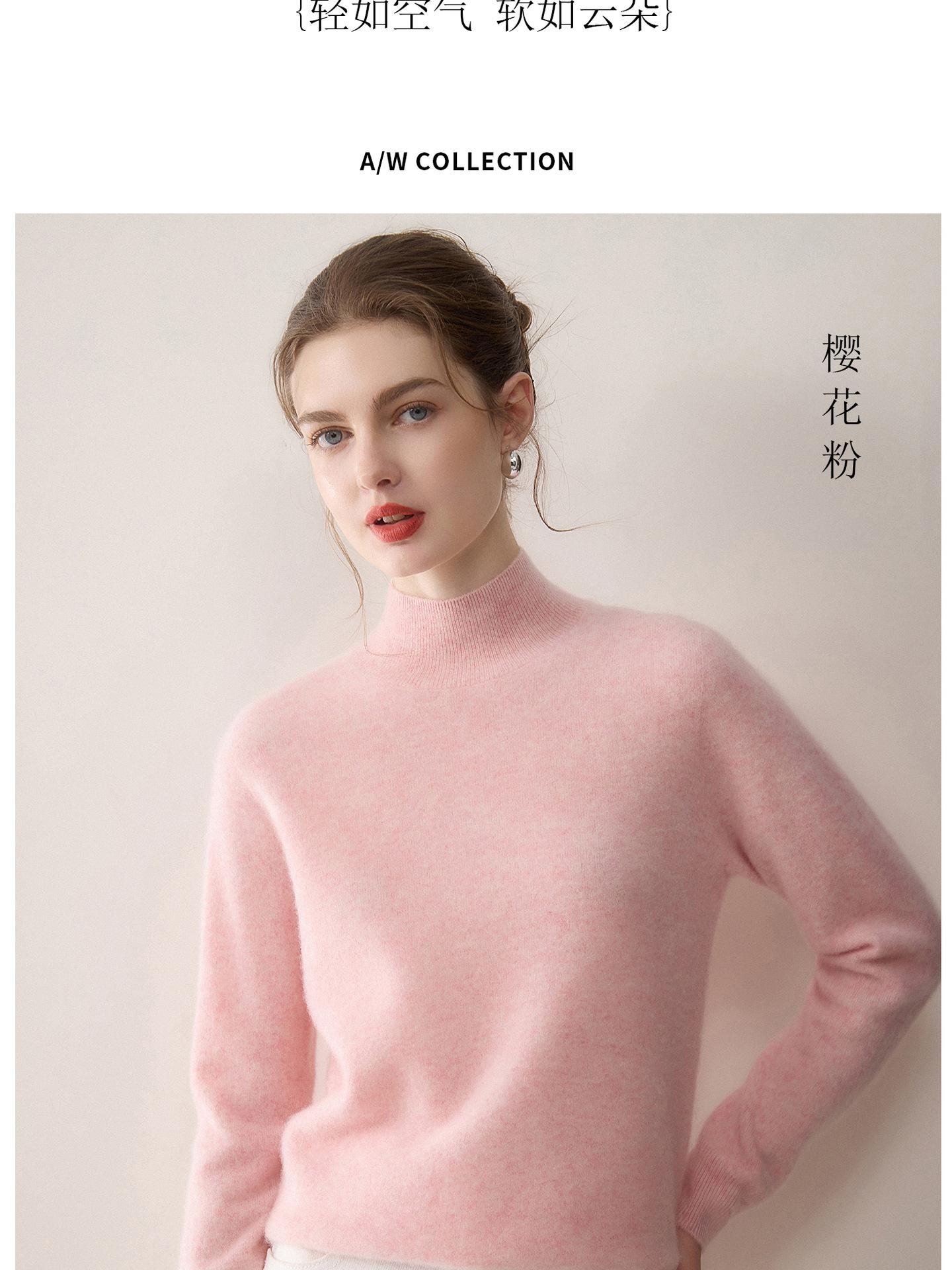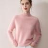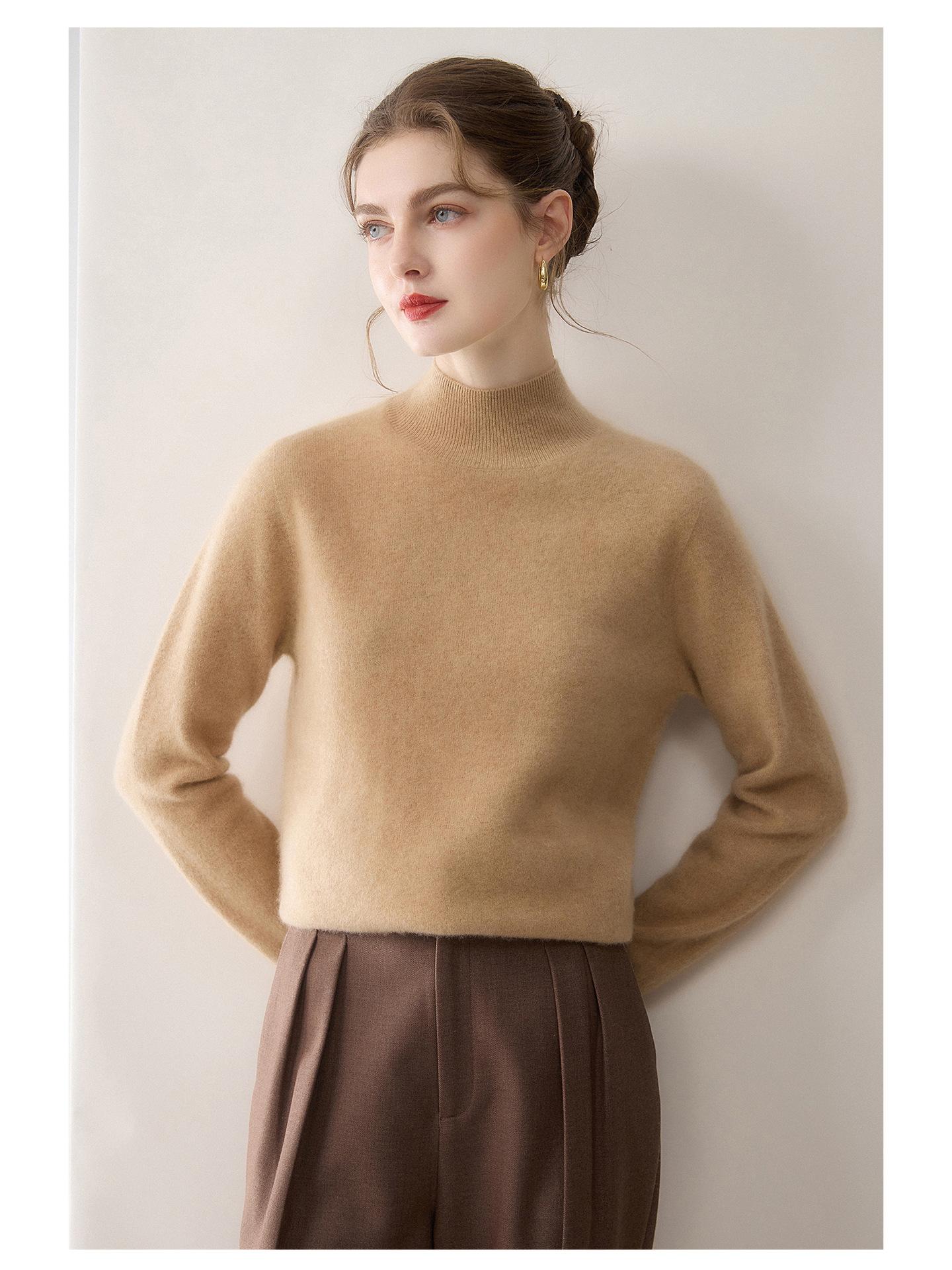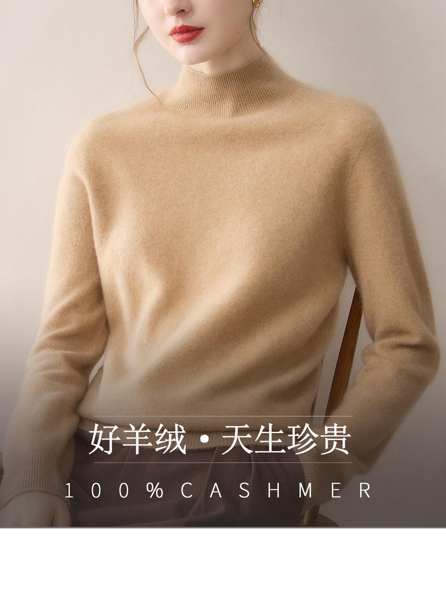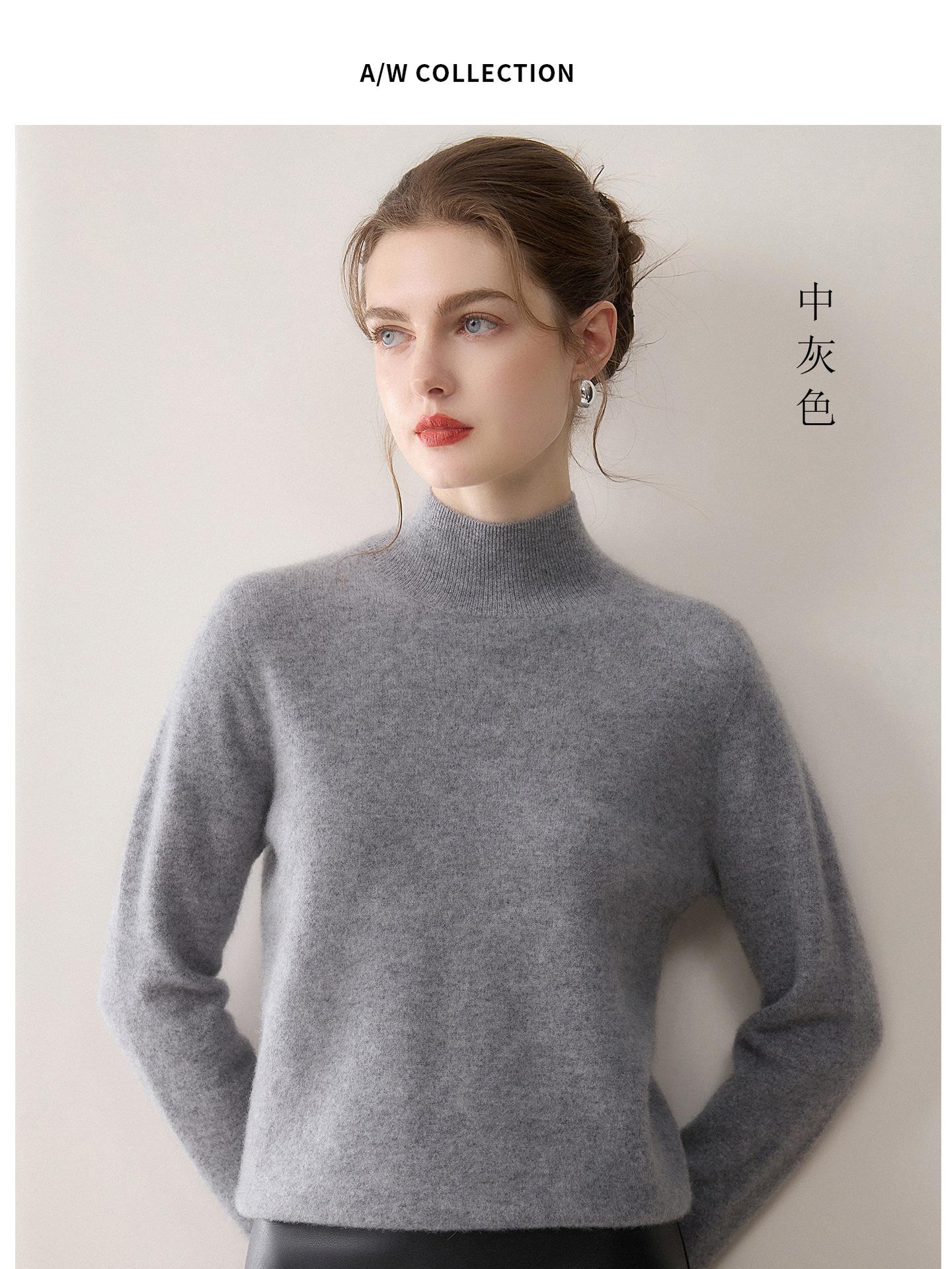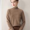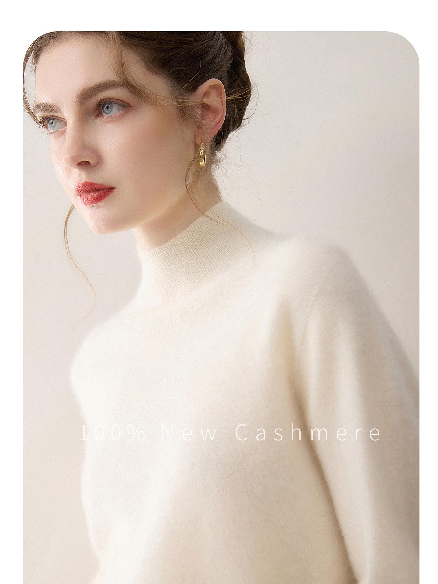 Suéter de una pieza de cuello semi-alto 100% cachemira pura para mujer, suéter versátil de color sólido, cálido tejido de punto, capa base interior