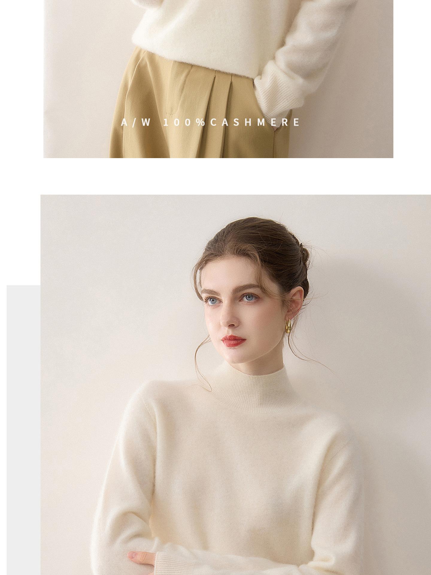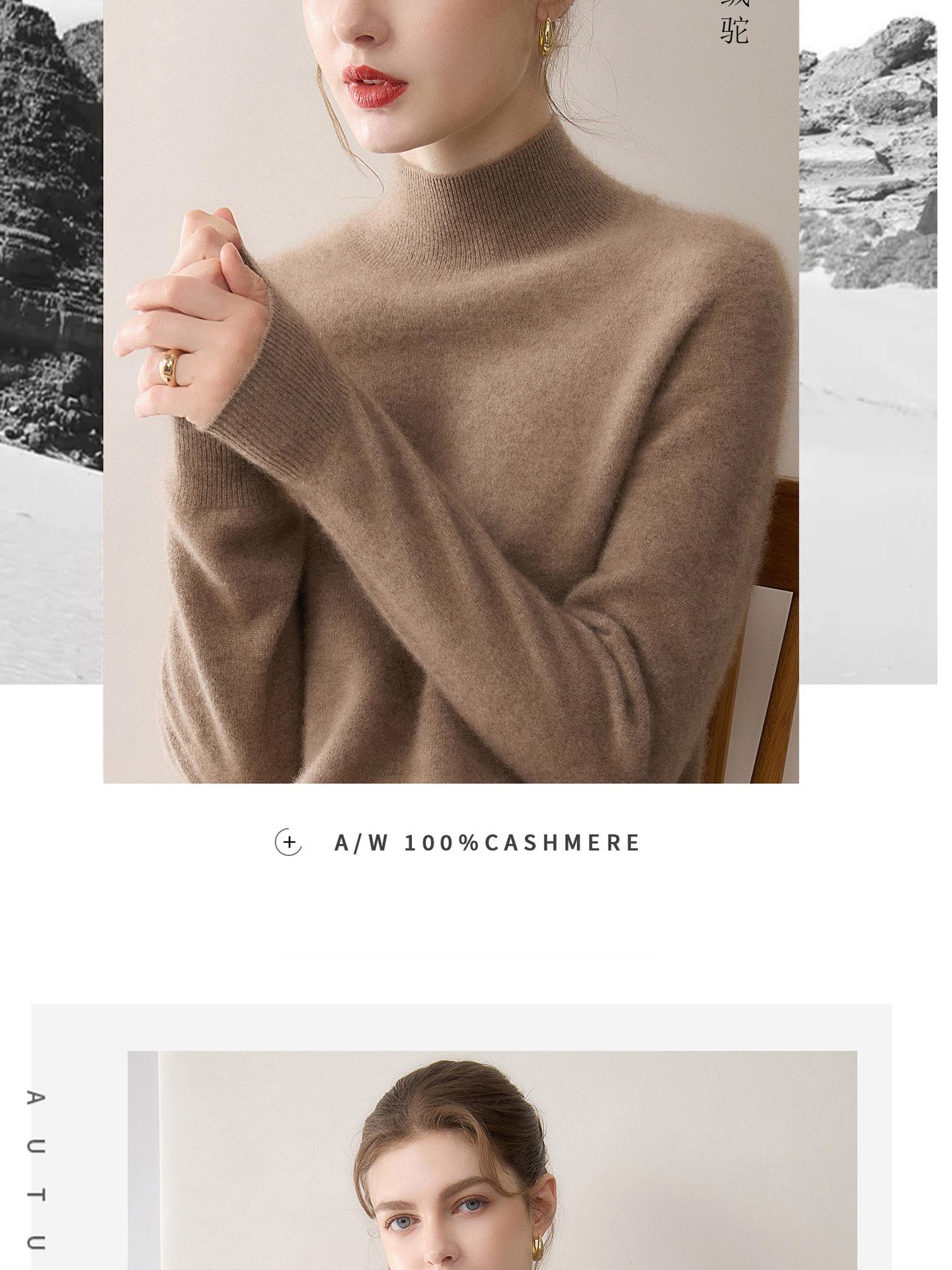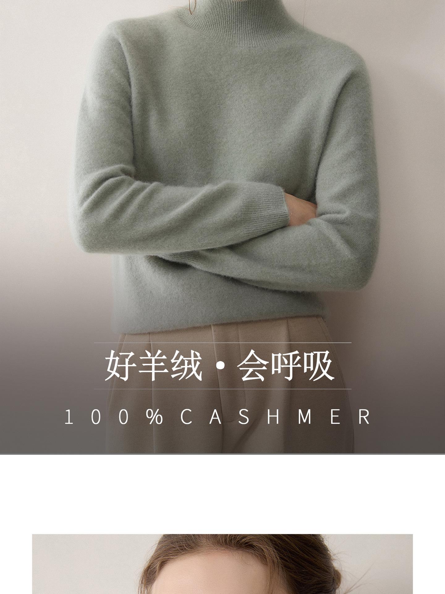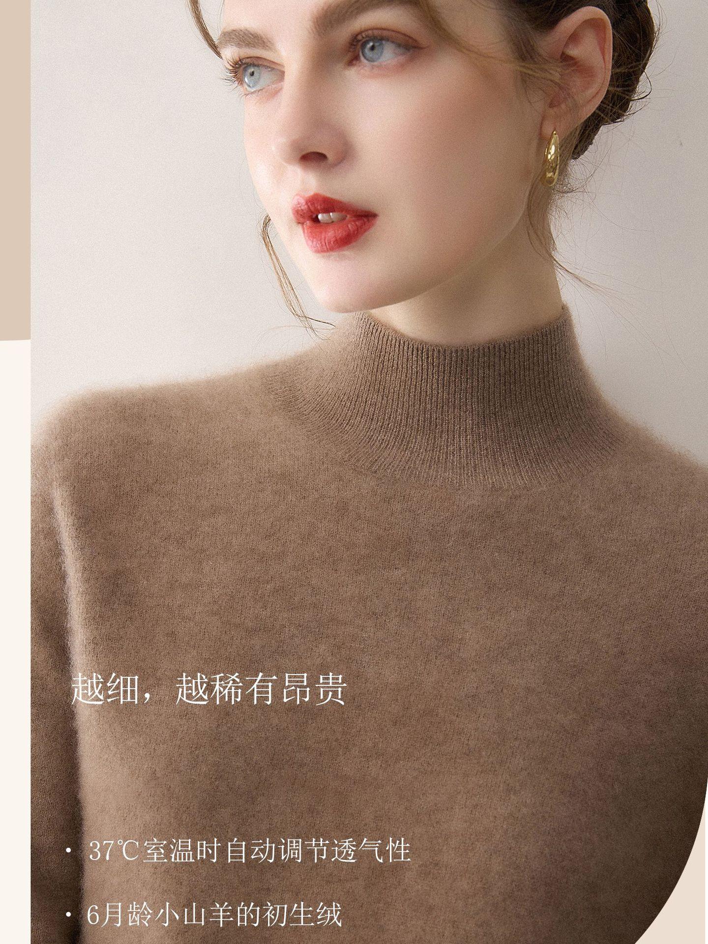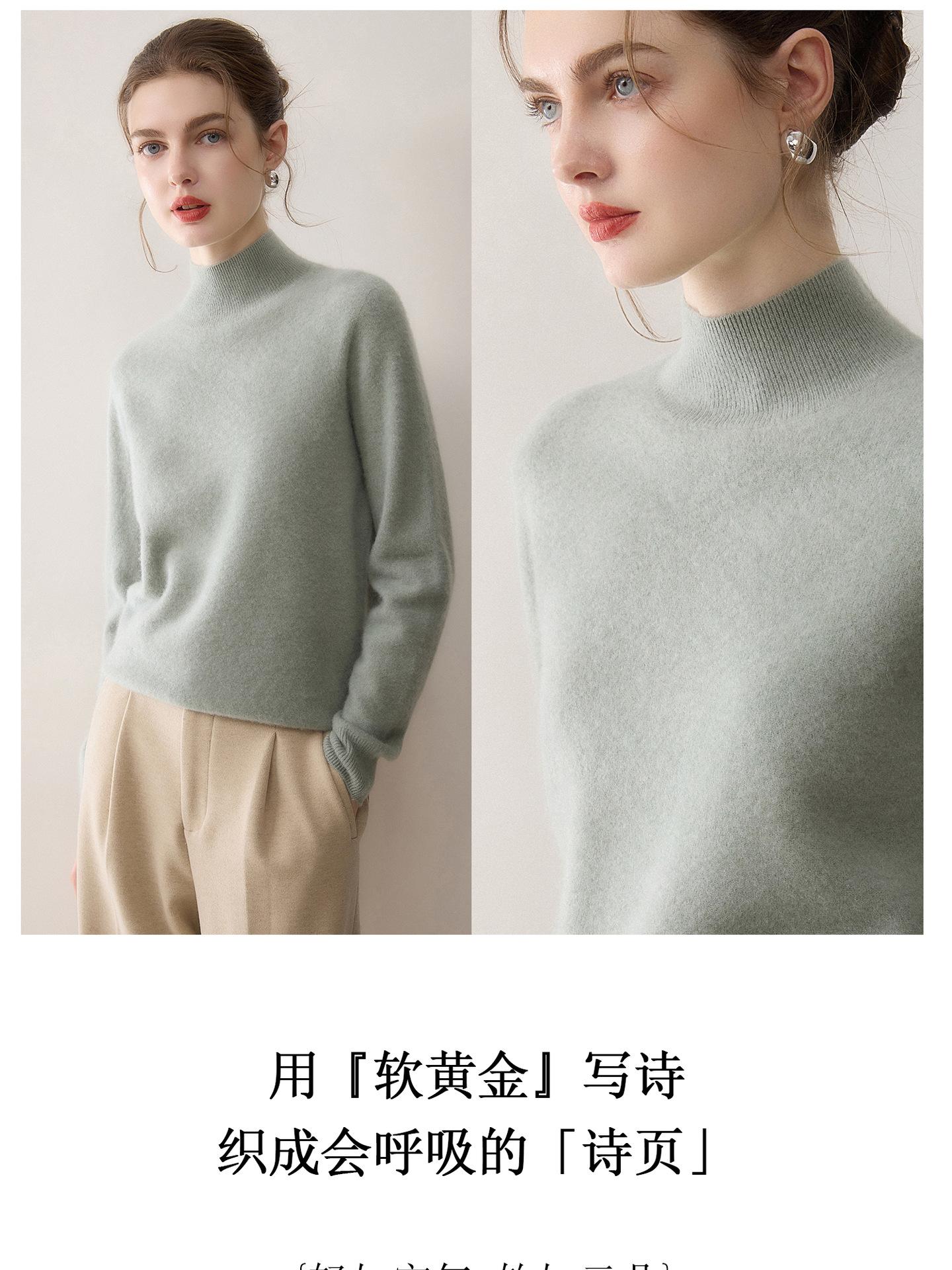 Suéter de una pieza de cuello semi-alto 100% cachemira pura para mujer, suéter versátil de color sólido, cálido tejido de punto, capa base interior