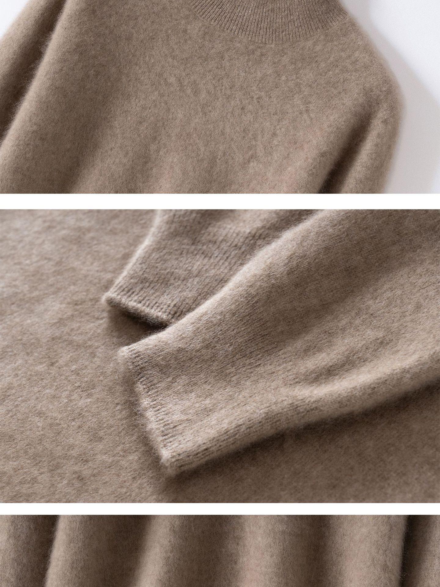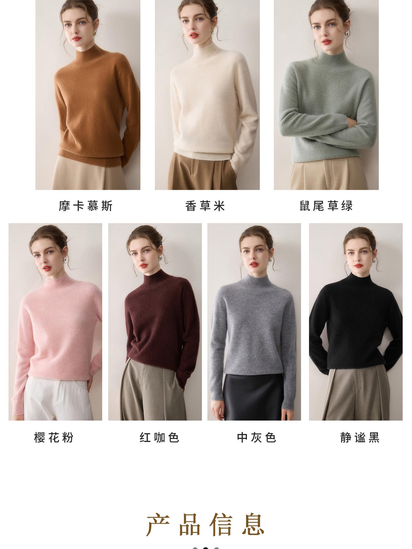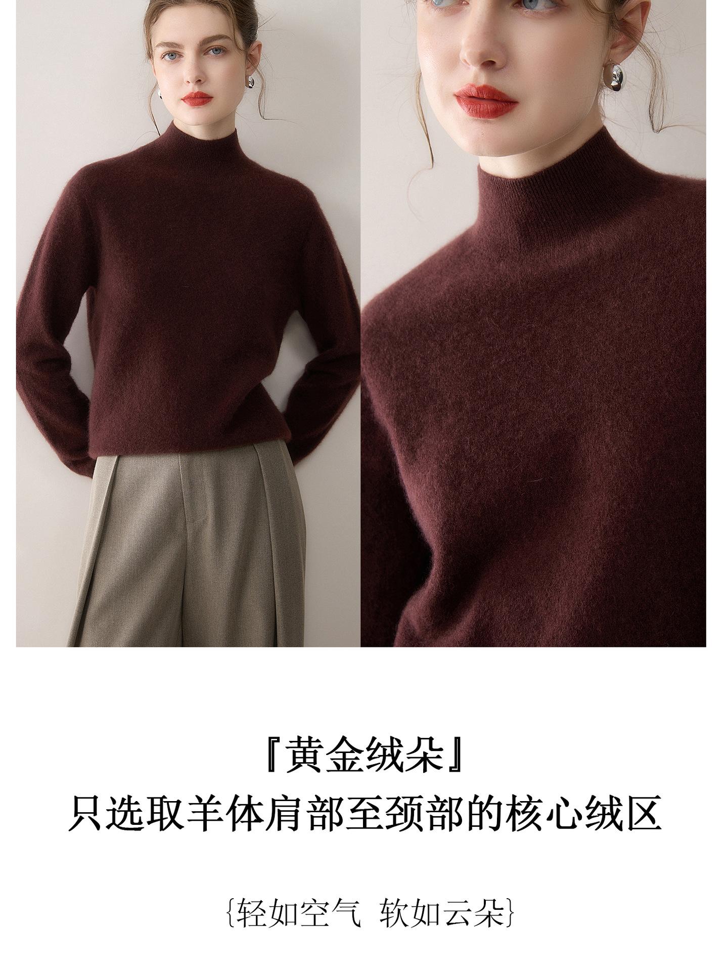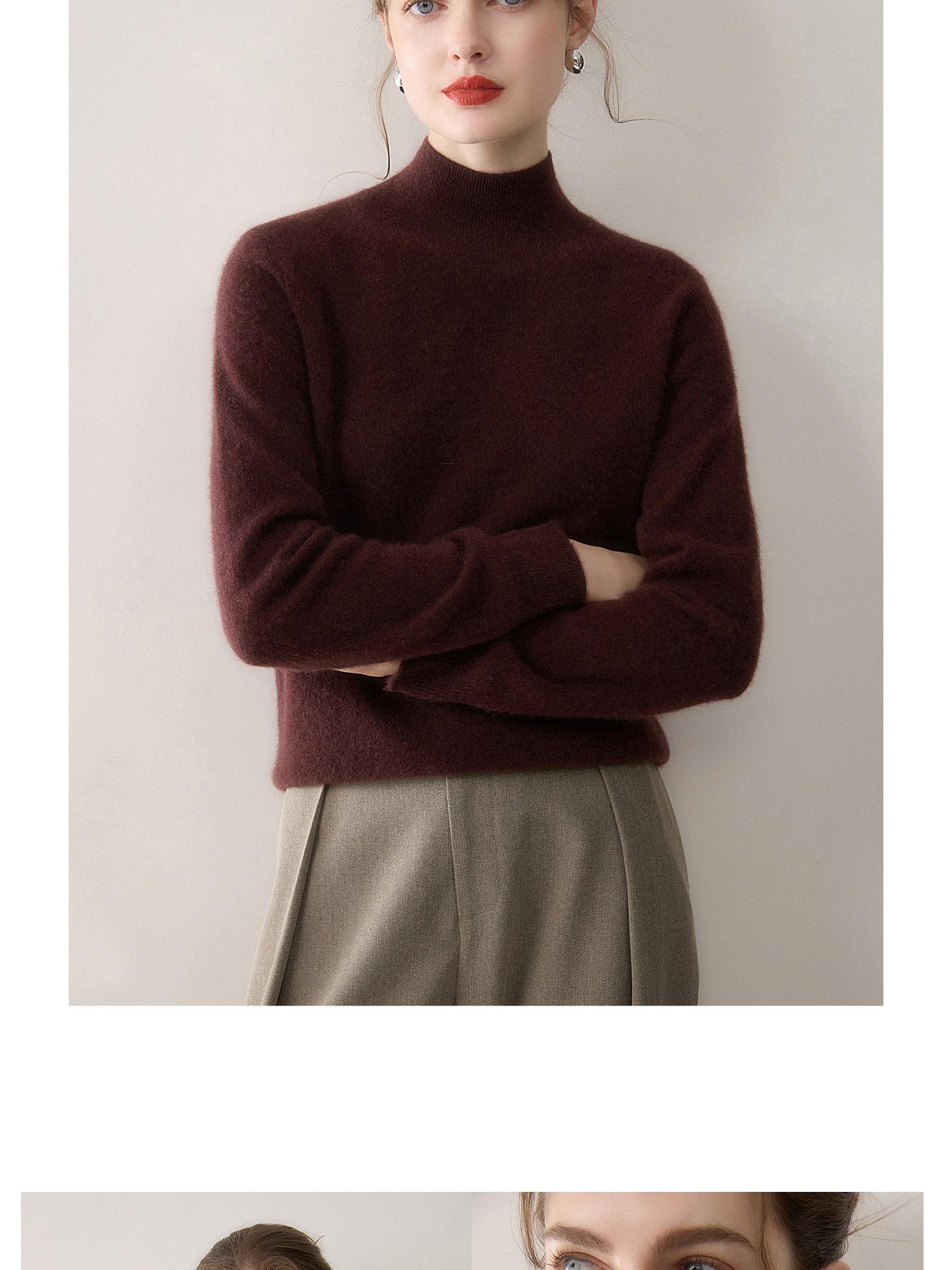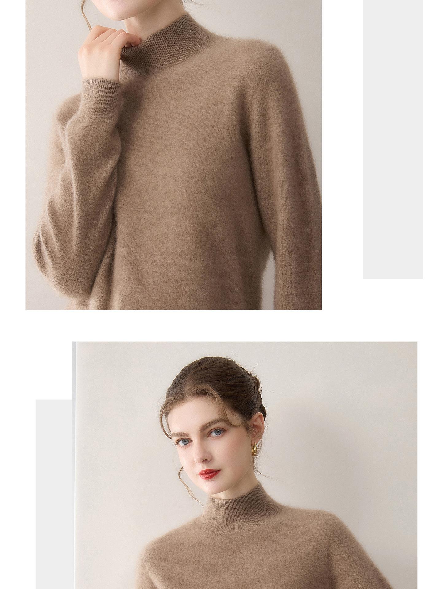 Suéter de una pieza de cuello semi-alto 100% cachemira pura para mujer, suéter versátil de color sólido, cálido tejido de punto, capa base interior
