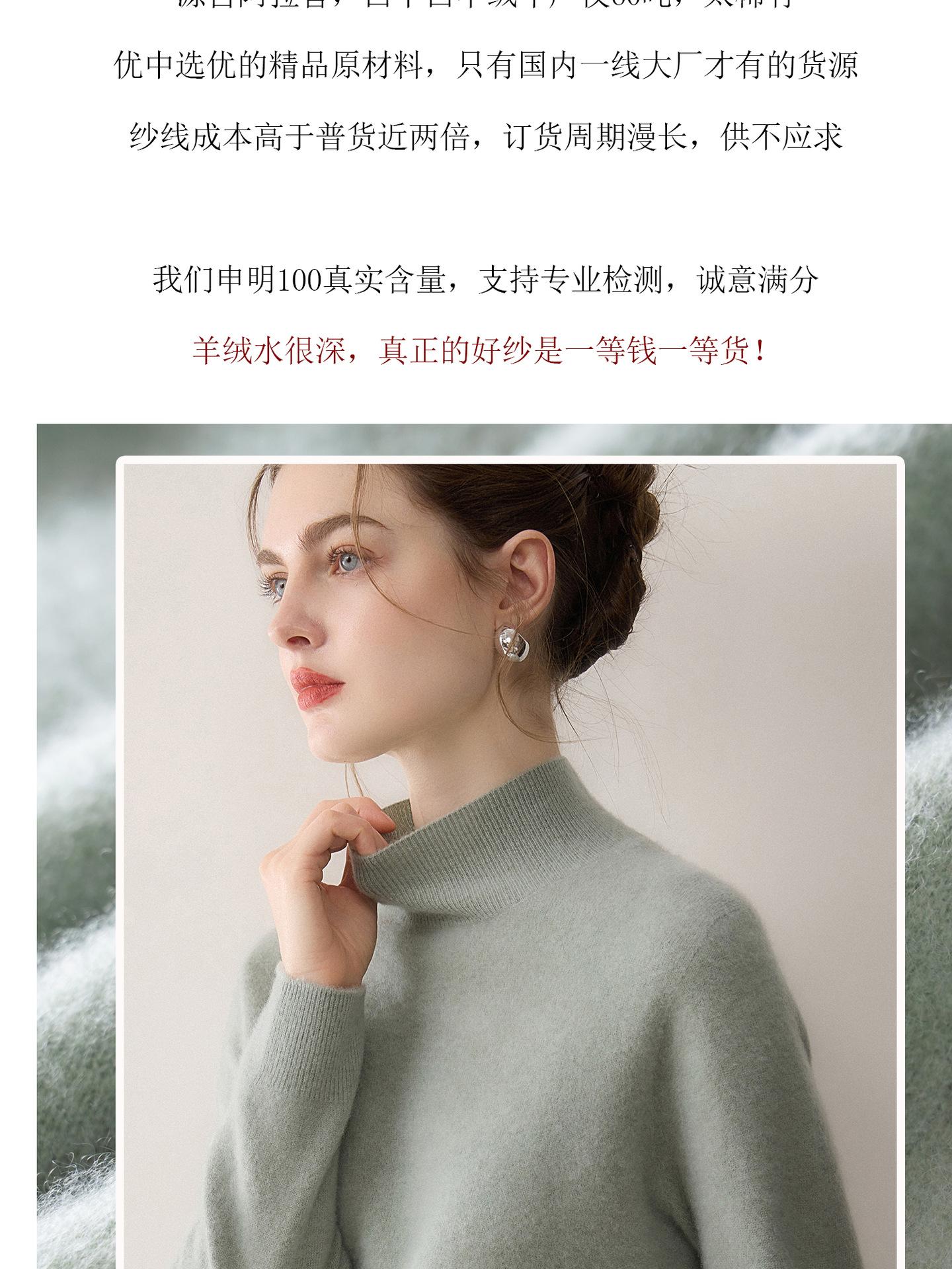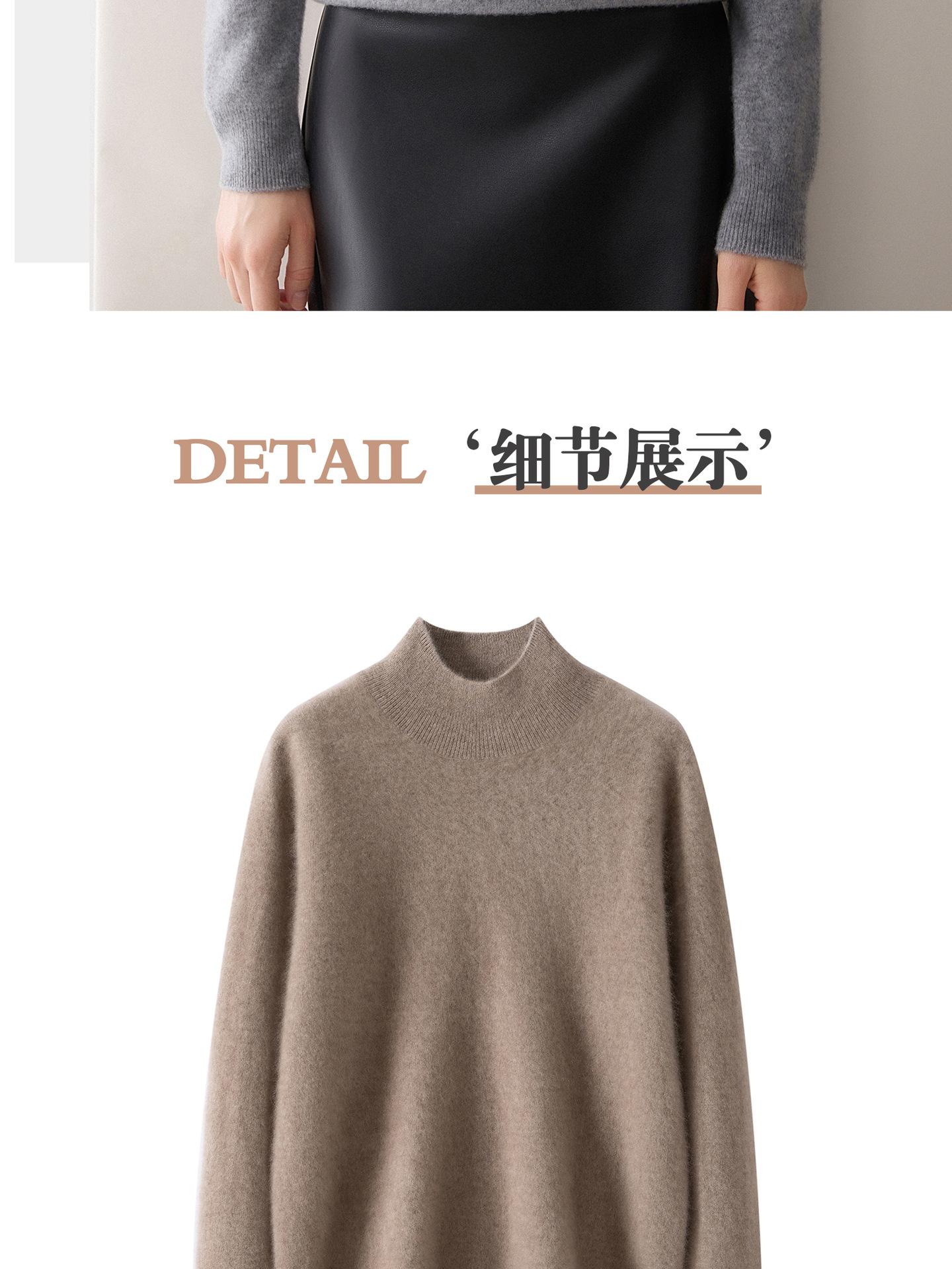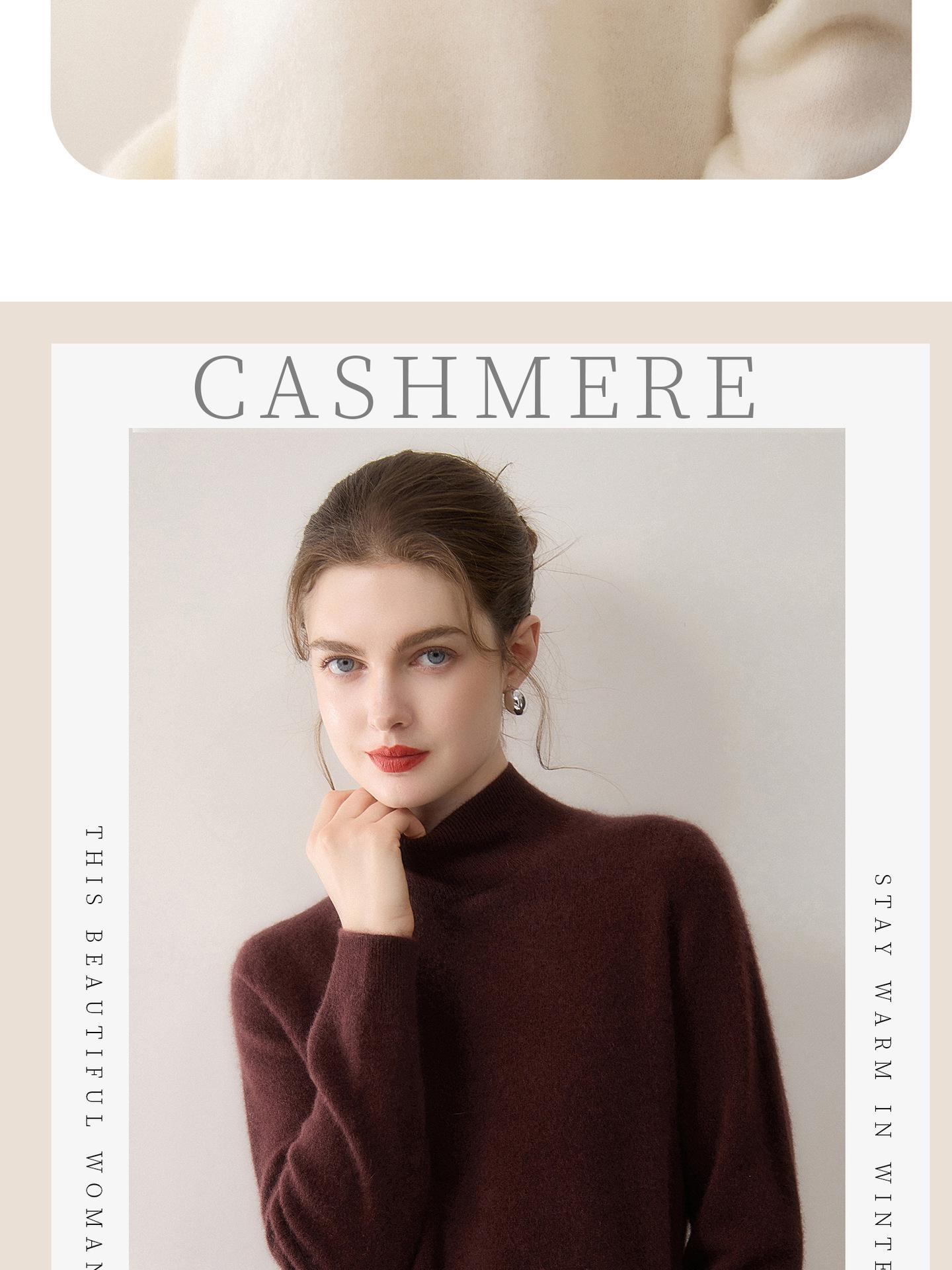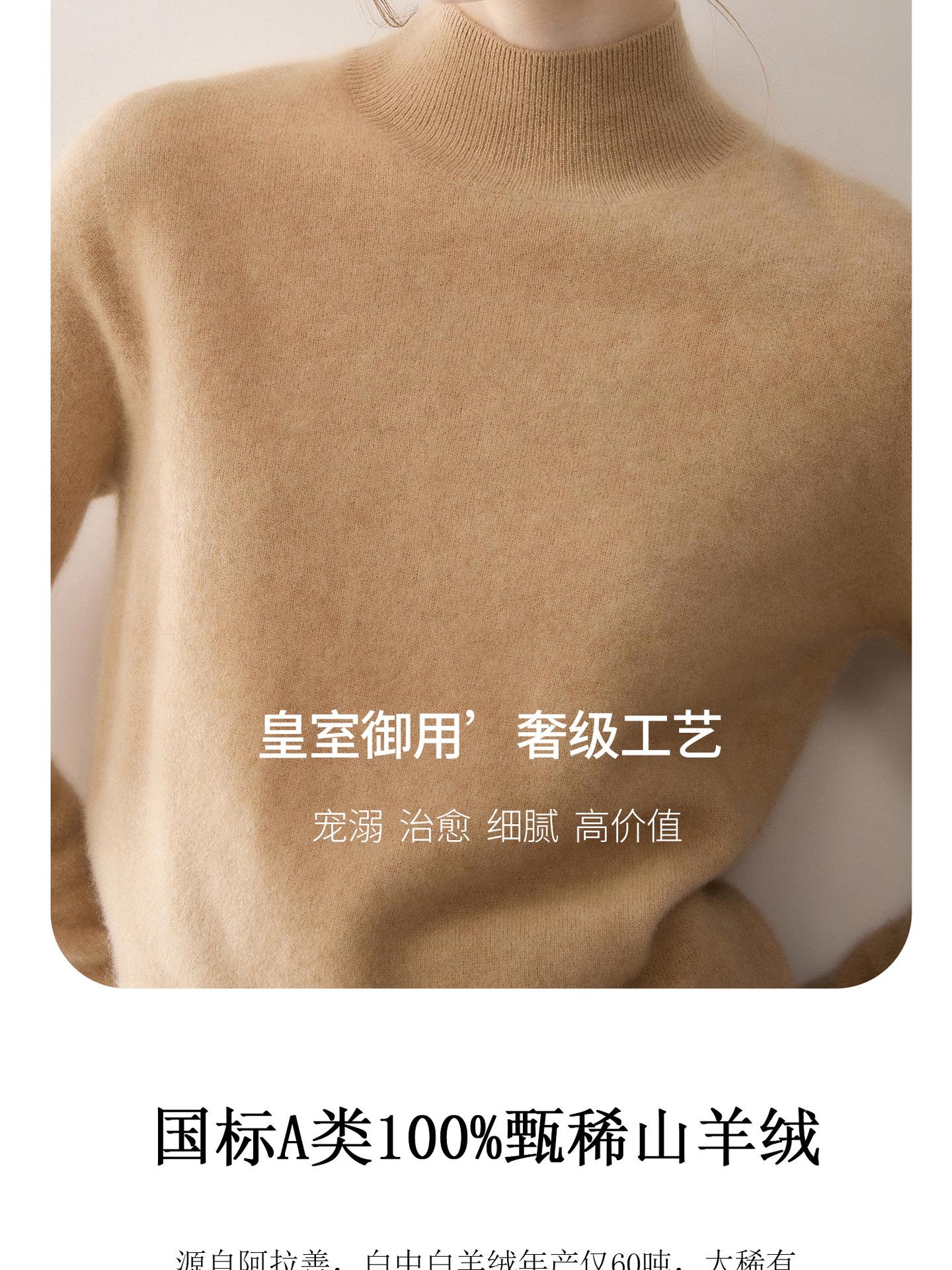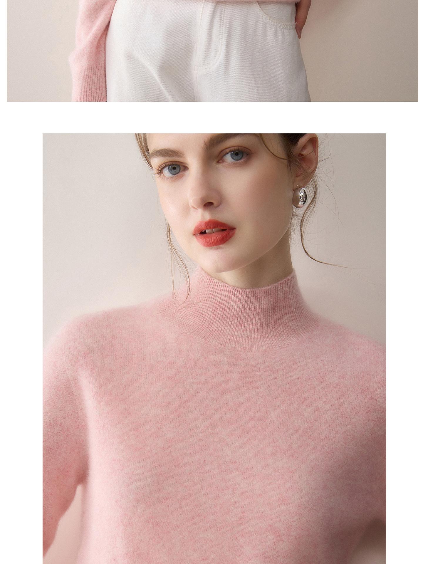 Suéter de una pieza de cuello semi-alto 100% cachemira pura para mujer, suéter versátil de color sólido, cálido tejido de punto, capa base interior