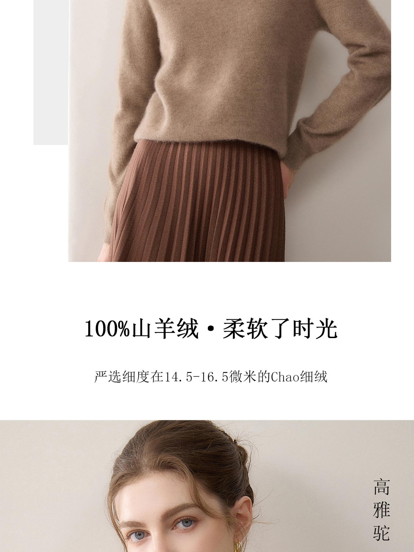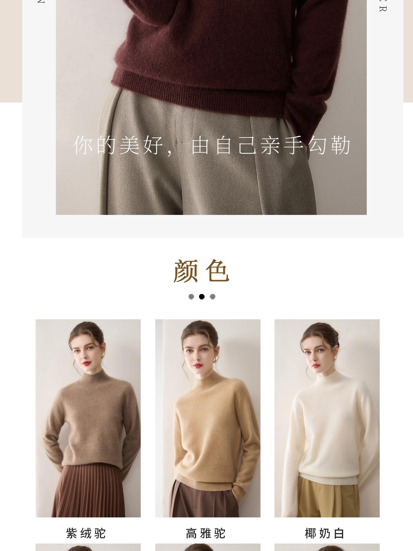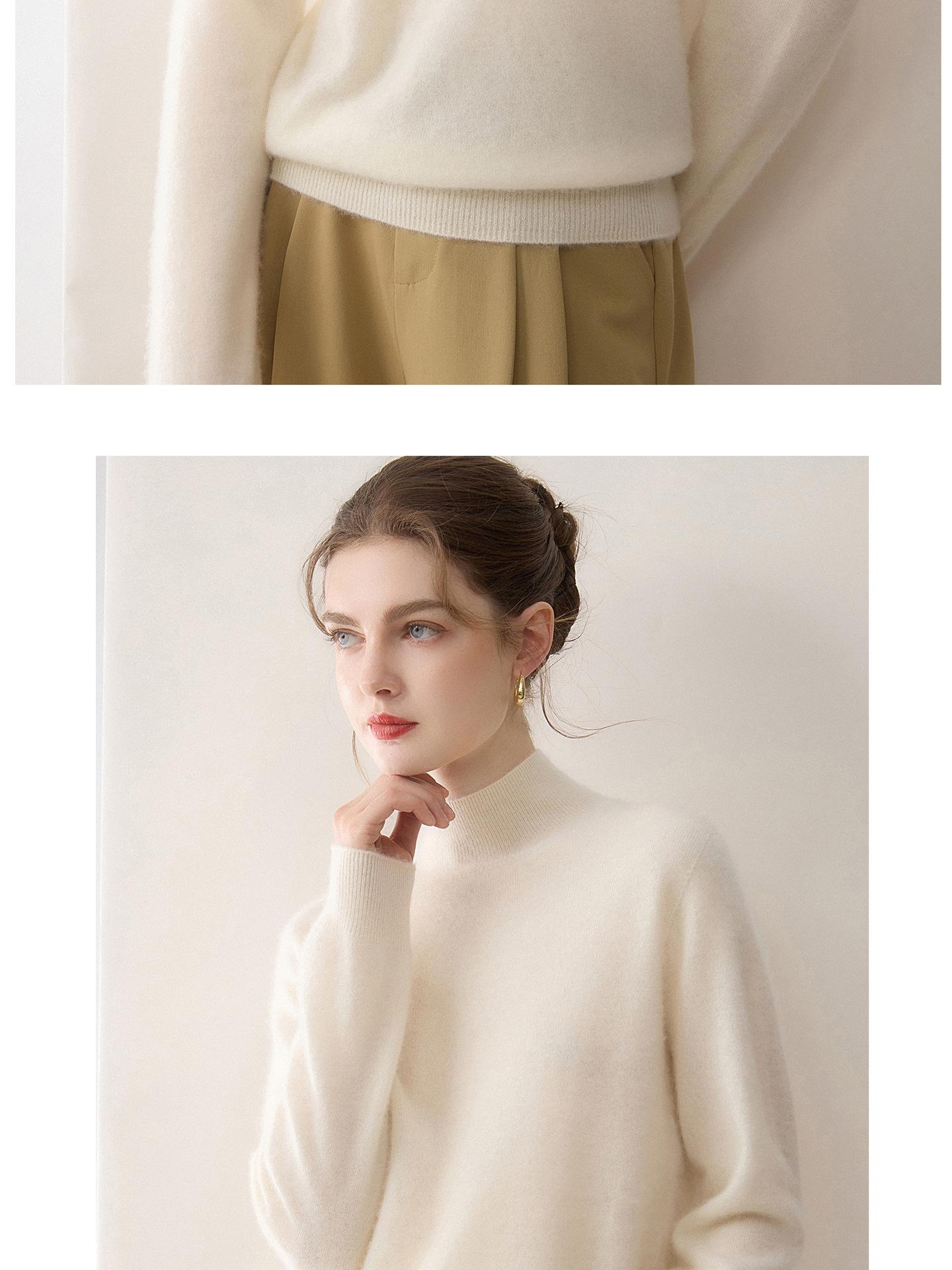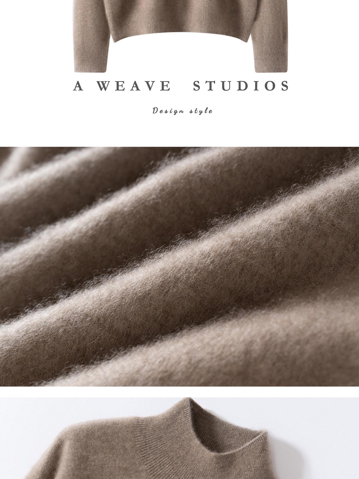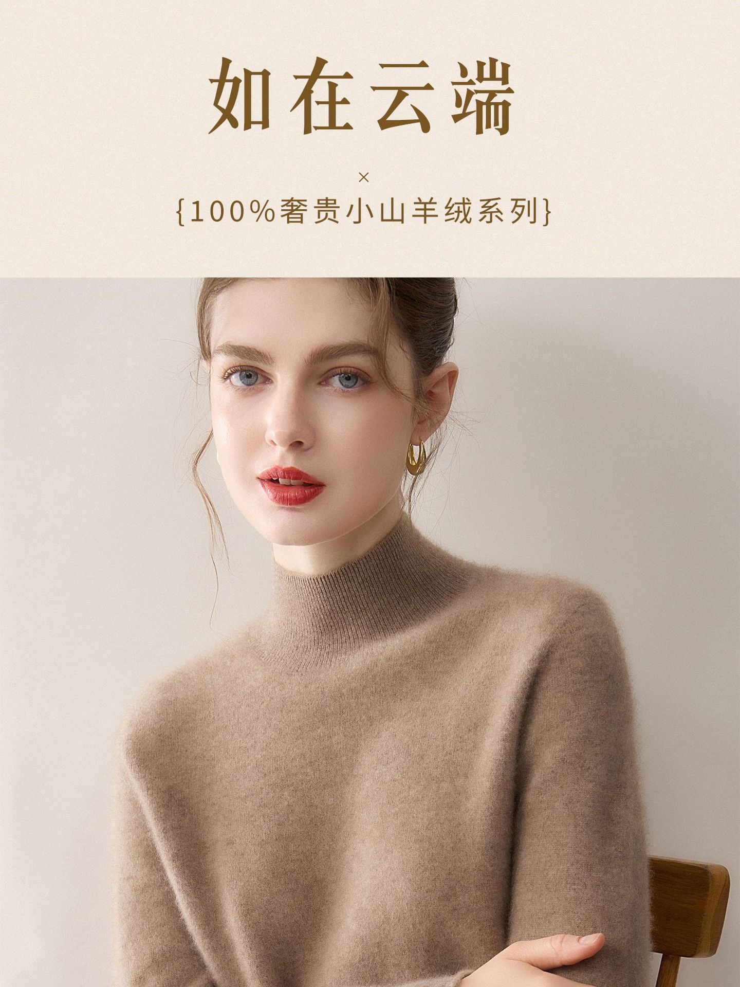Suéter de una pieza de cuello semi-alto 100% cachemira pura para mujer, suéter versátil de color sólido, cálido tejido de punto, capa base interior