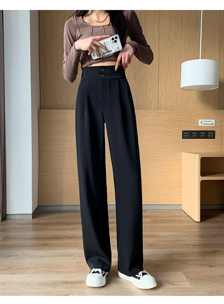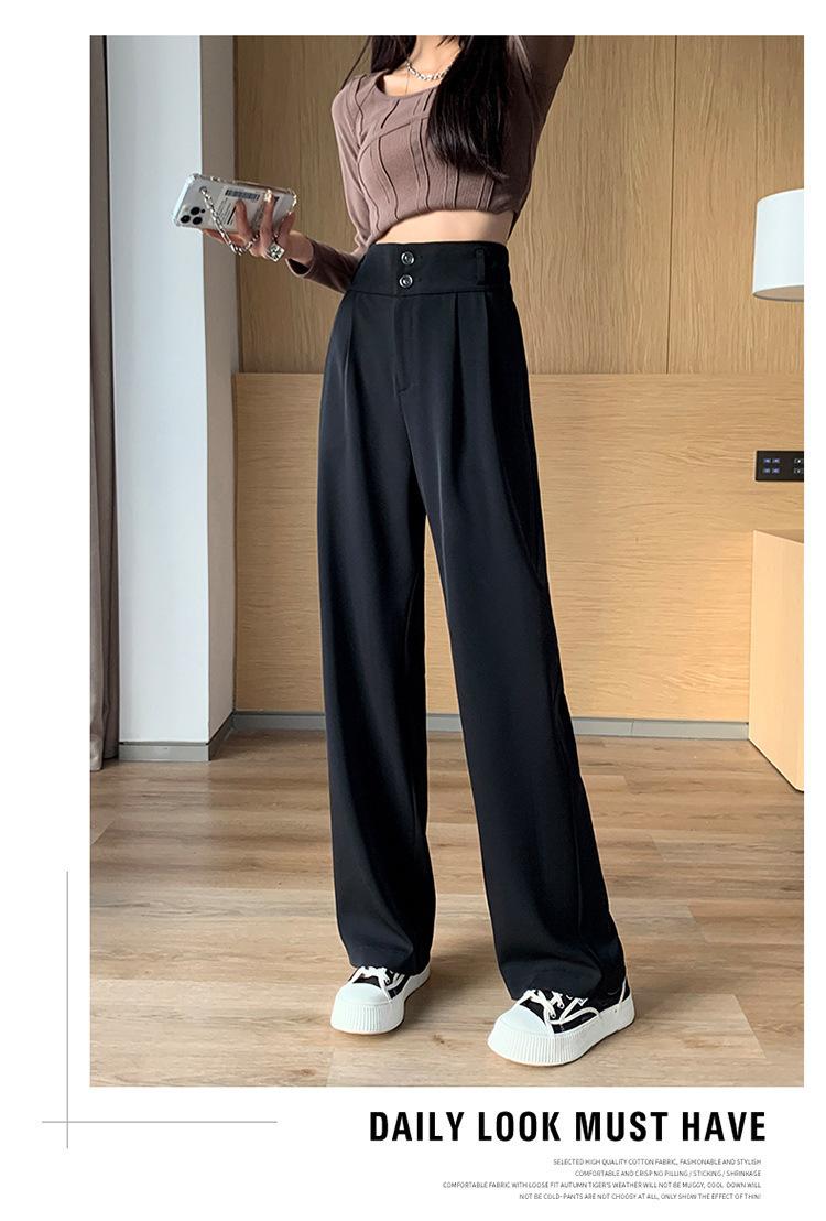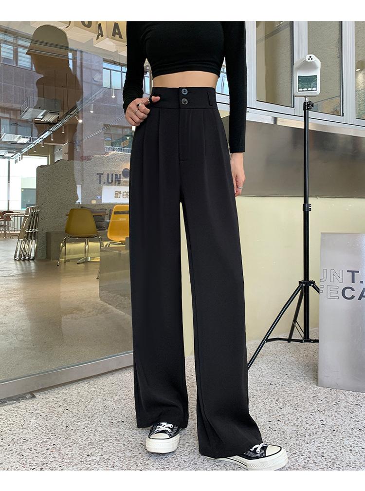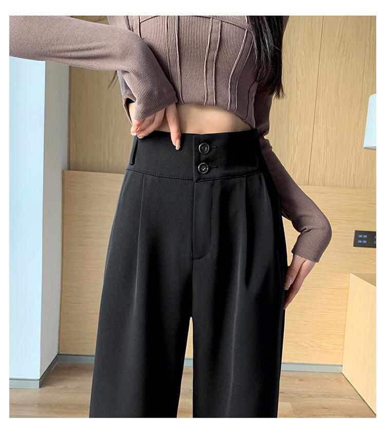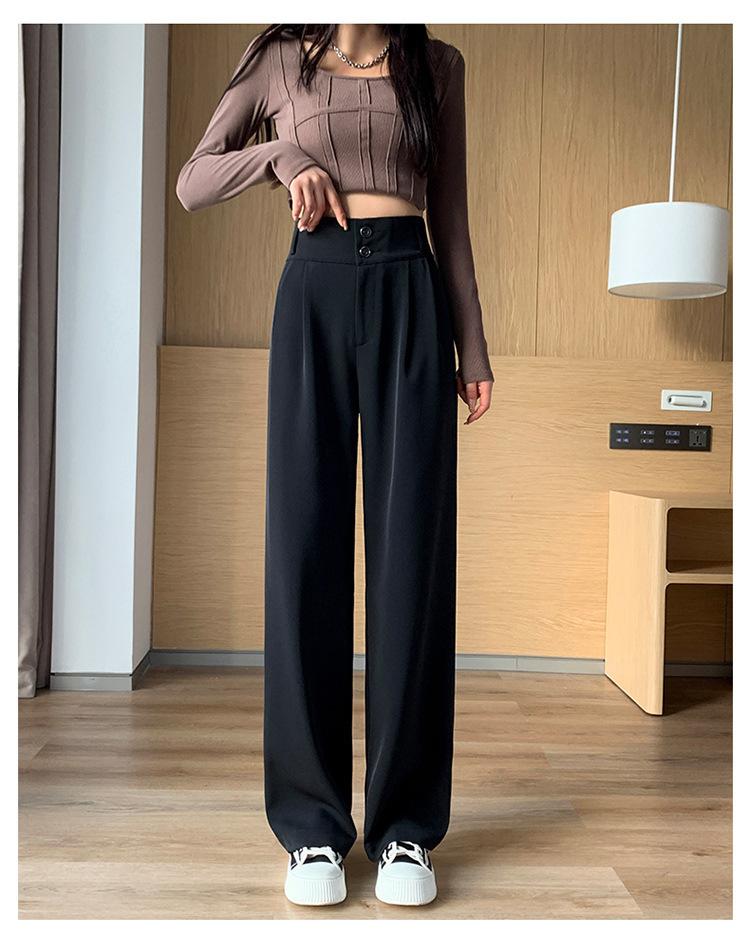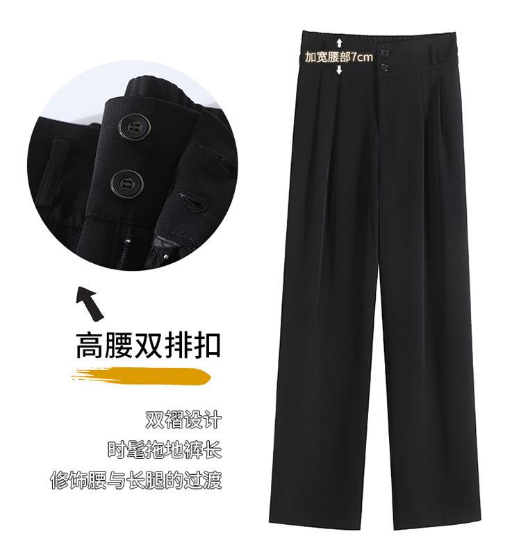 Traje de Mujer Pantalones de Pierna Ancha 2025 Otoño/Invierno Nuevo Estilo Coreano Petite de Gama Alta Drapeado Casual Recto Pantalón Largo