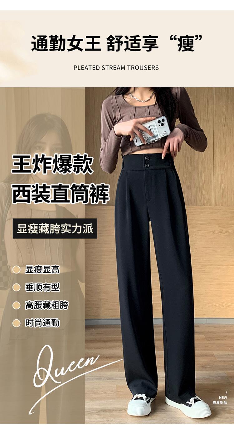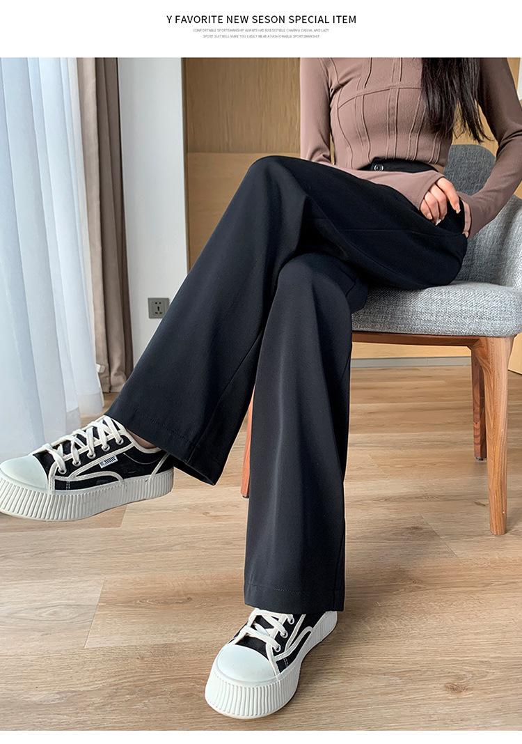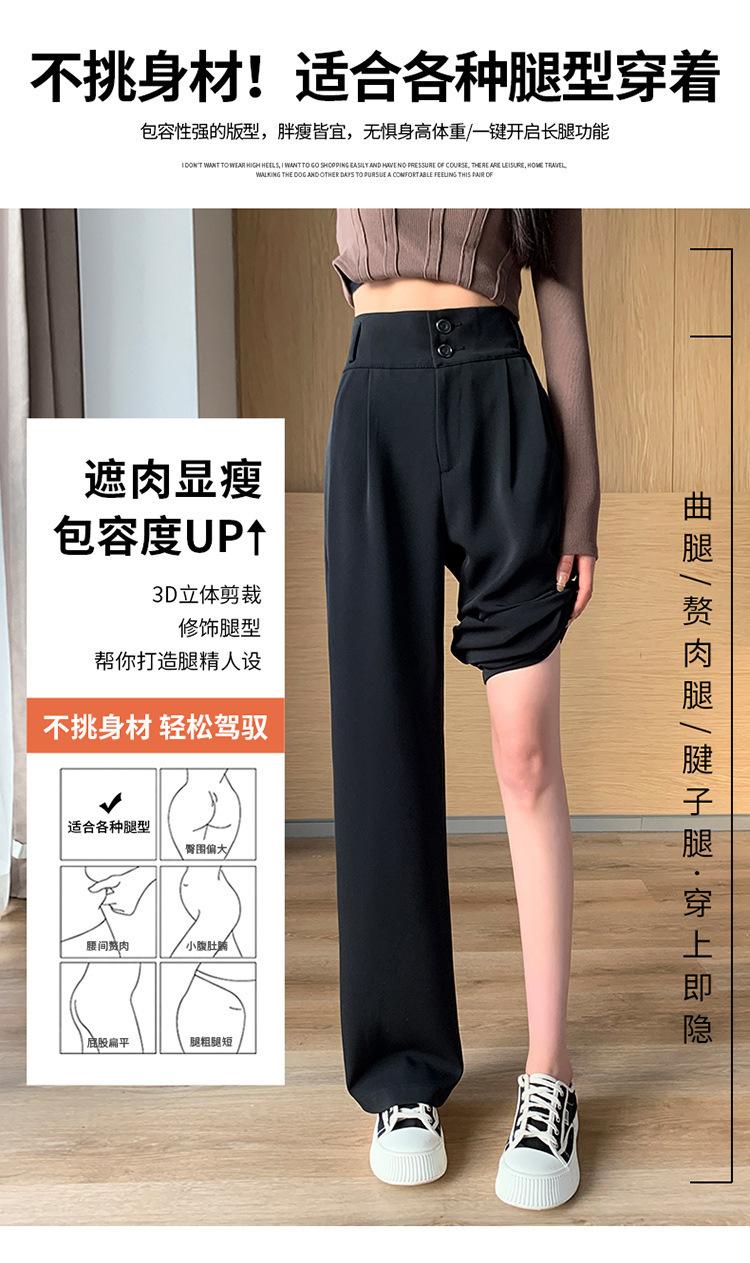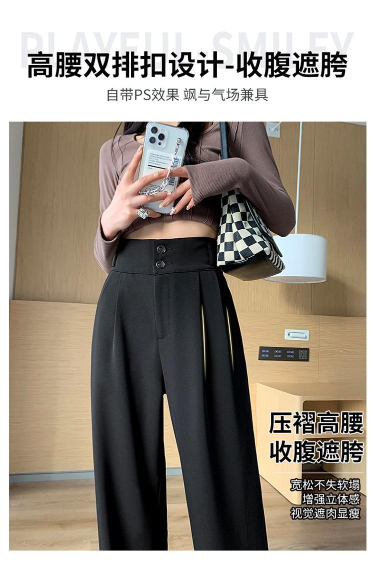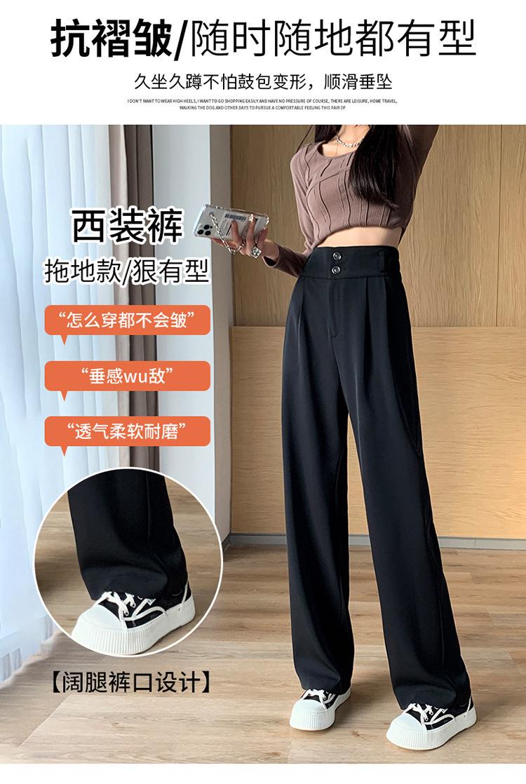 Traje de Mujer Pantalones de Pierna Ancha 2025 Otoño/Invierno Nuevo Estilo Coreano Petite de Gama Alta Drapeado Casual Recto Pantalón Largo