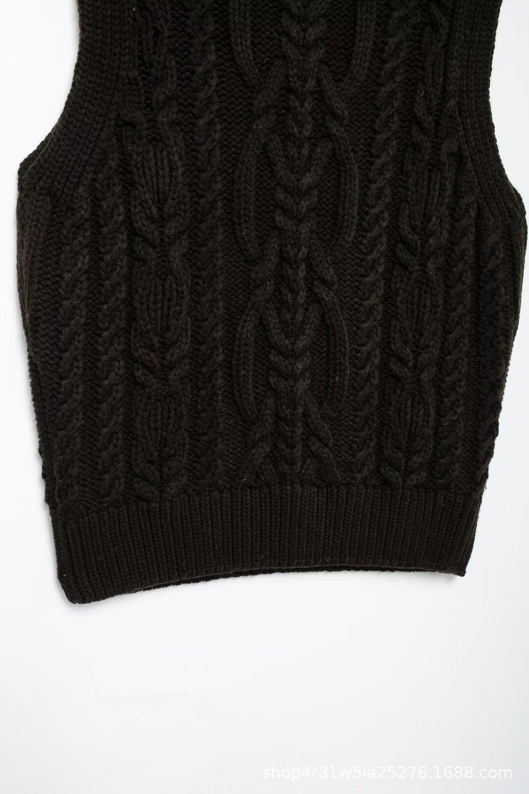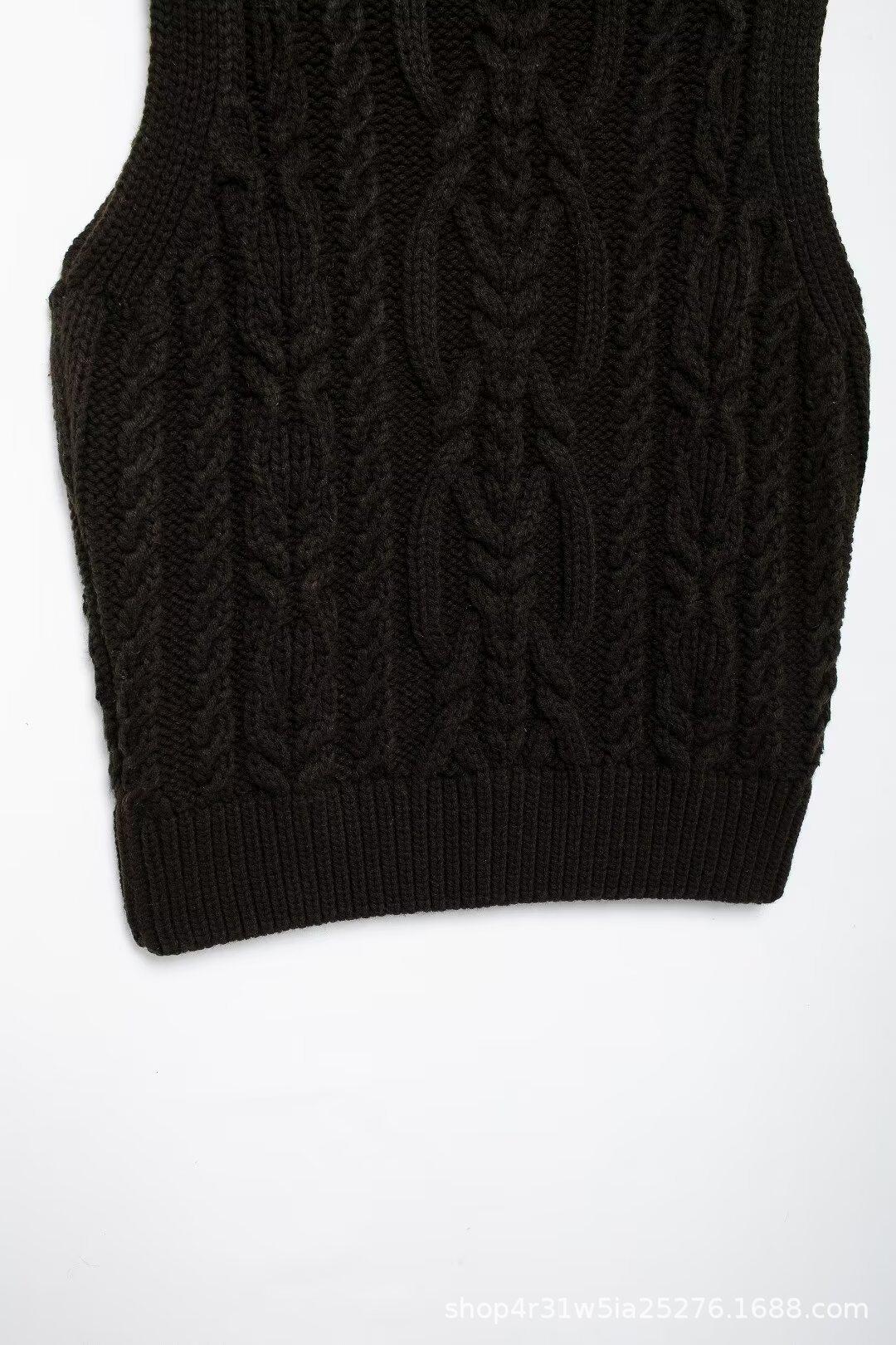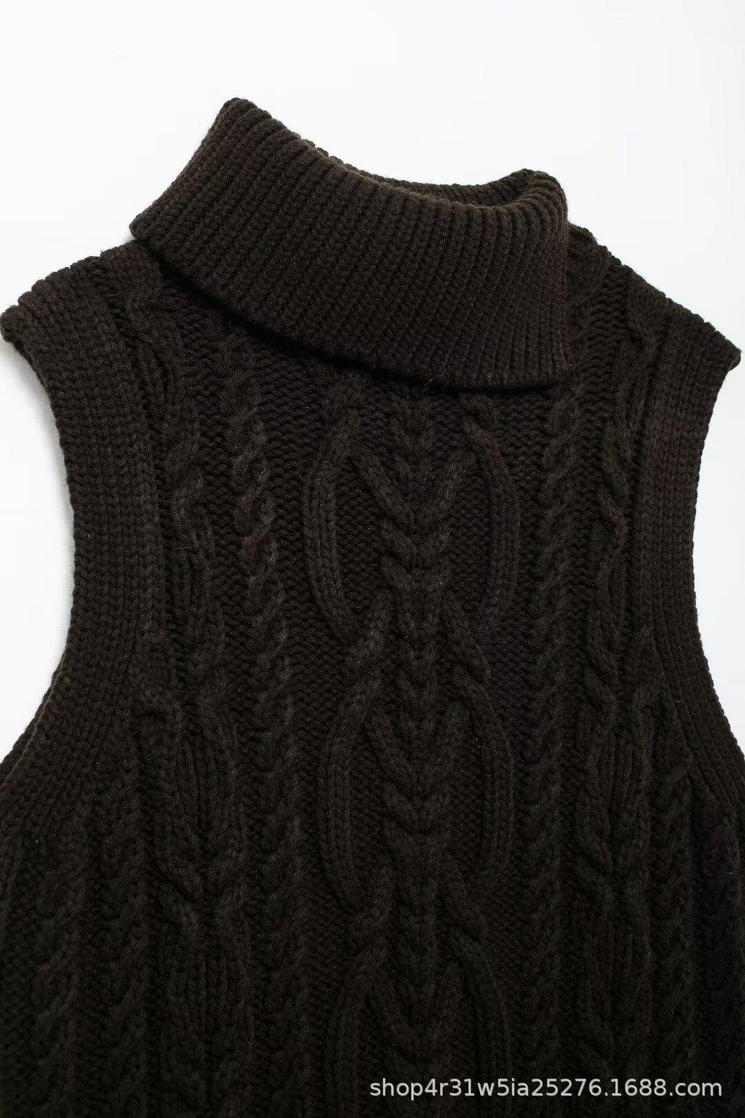 Venta al por mayor transfronteriza europea y americana 2024 Otoño e Invierno Nueva moda Versátil Cuello alto de color sólido Suéter sin mangas jacquard tridimensional