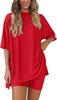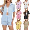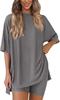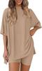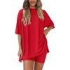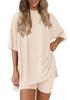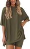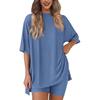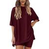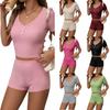 Amazon 2025 Nuevo Traje de Moda Casual para Mujer Europea y Americana de Cuello Redondo con Abertura y Shorts Holgados de Manga Corta para Estar en Casa