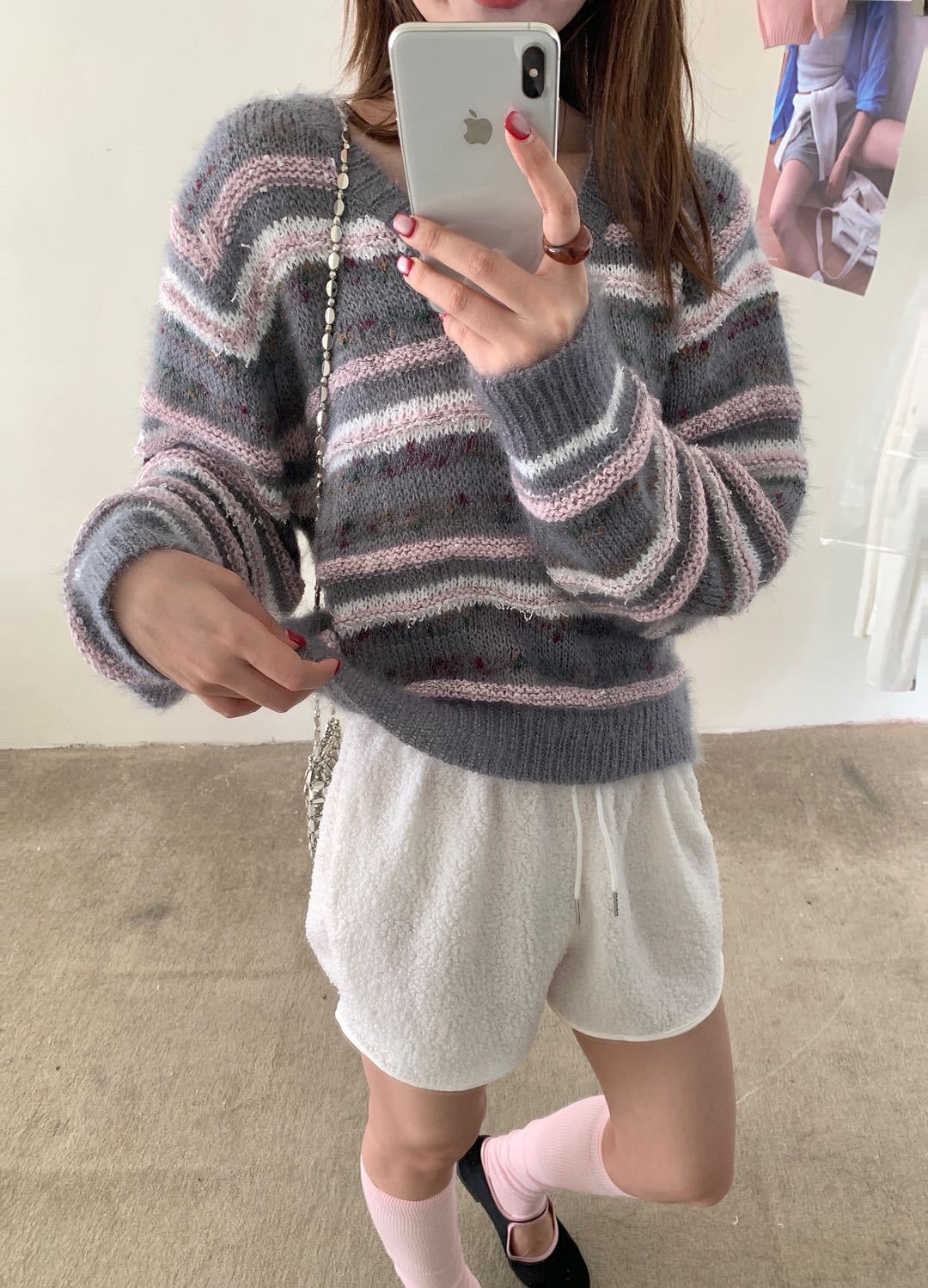Suéter de Punto Rayado Coreano Retro de Otoño Temprano 2025 para Mujer Otoño e Invierno Nuevo Holgado Adelgazante Versátil Top Jersey