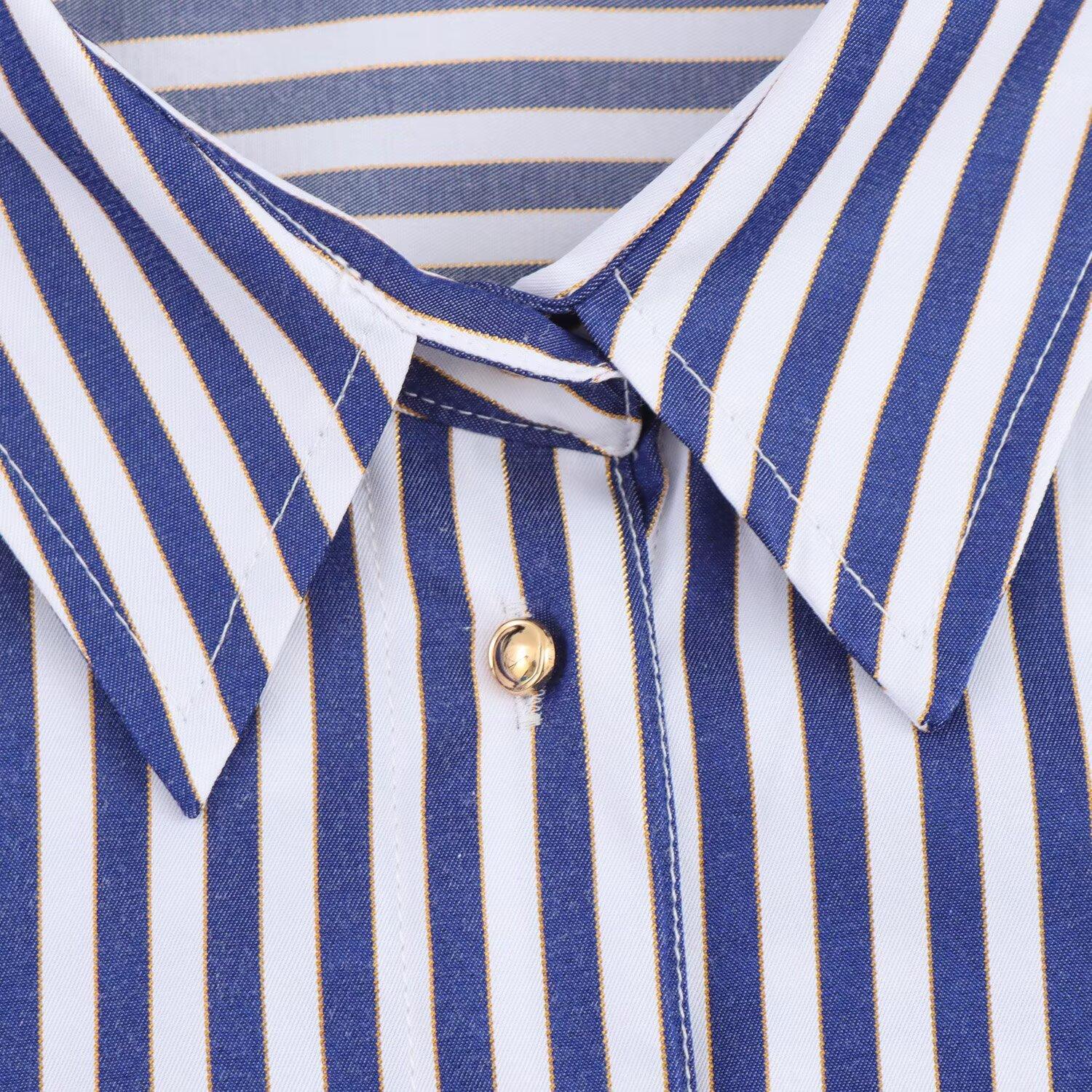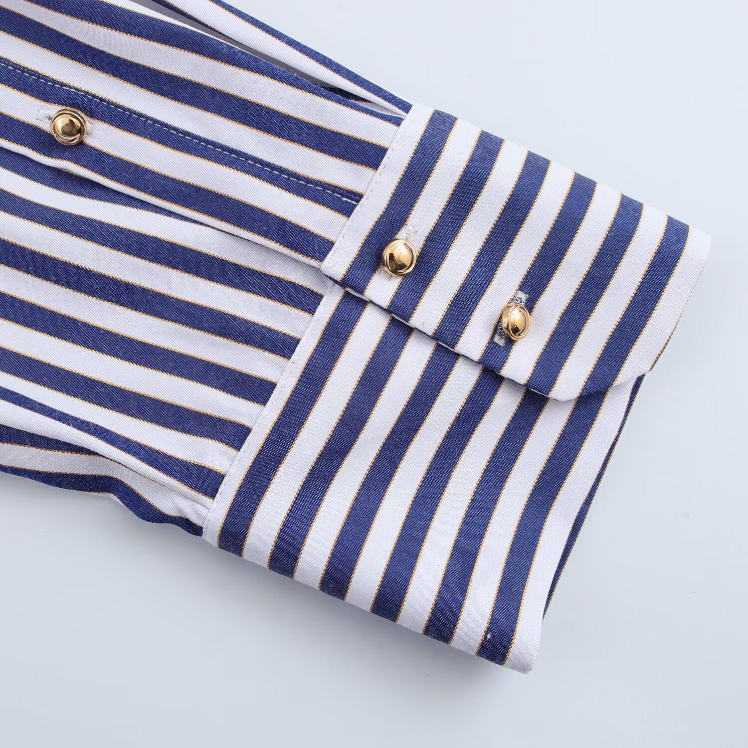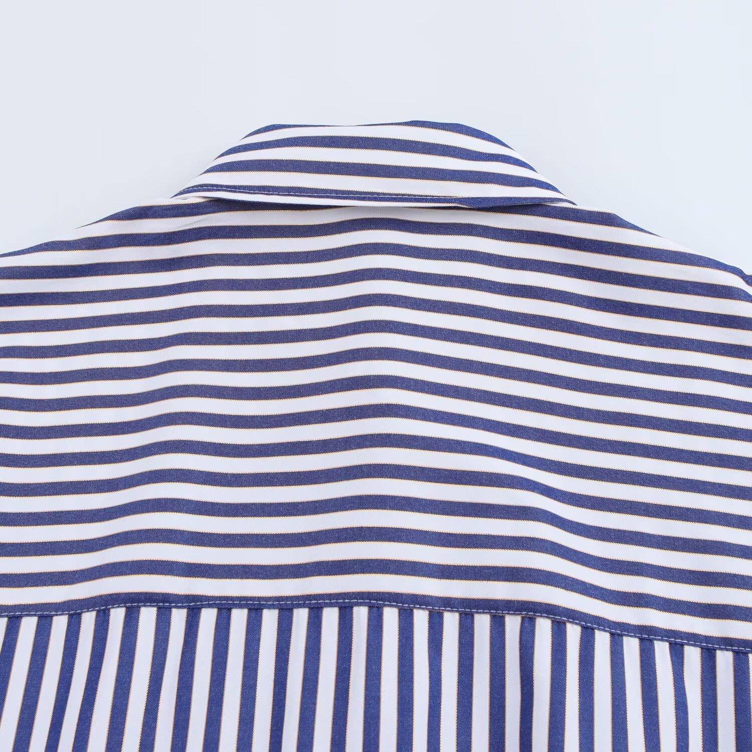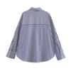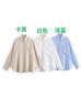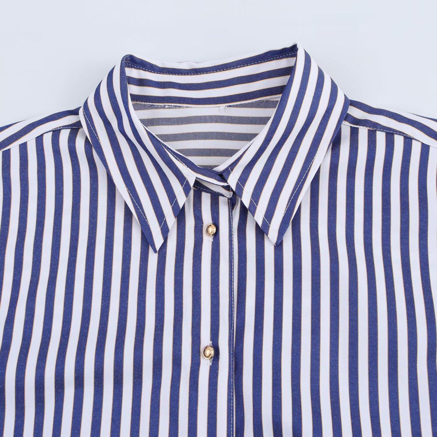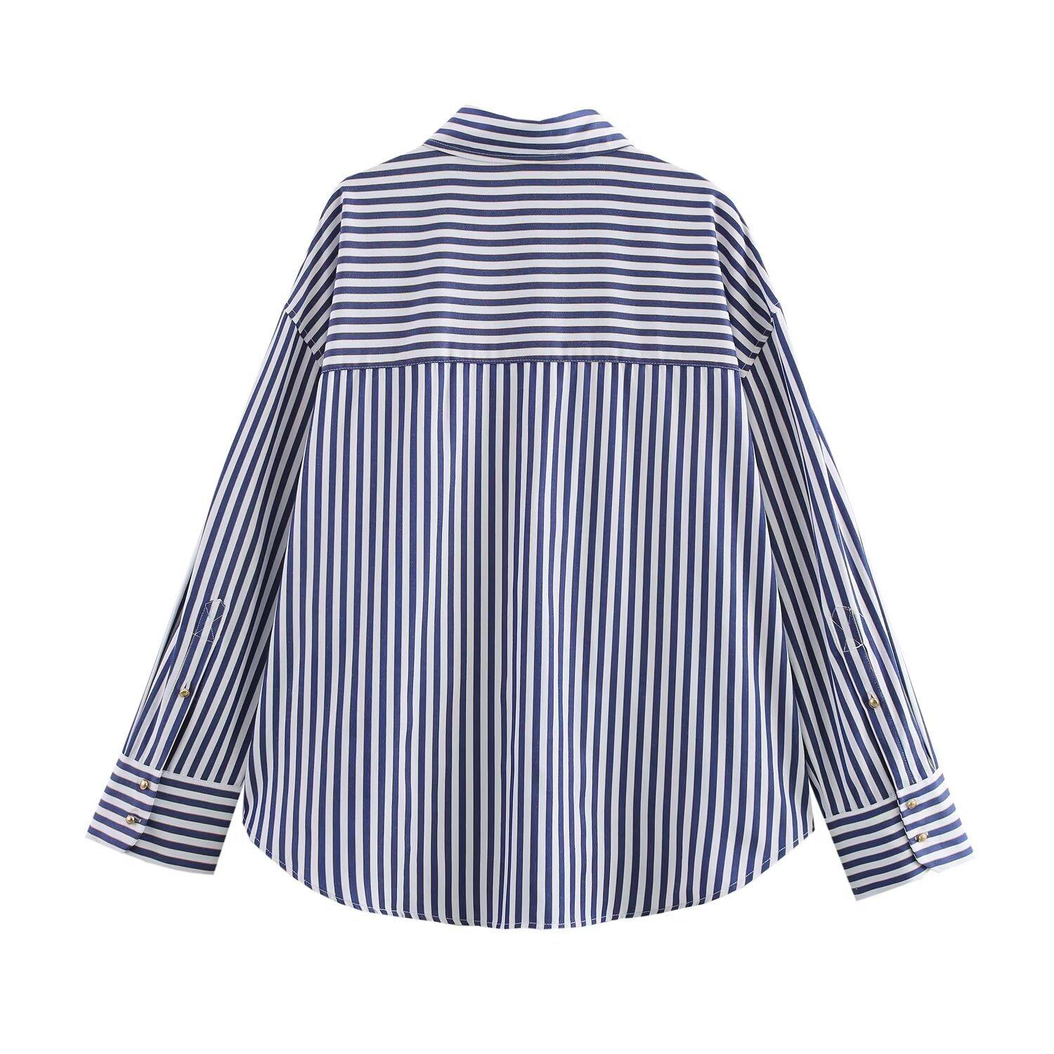 Comercio Exterior Transfronterizo Mujer 2025 Primavera Nuevo Estilo Europeo y Americano Manga Larga Solapa Hebilla con Abertura Camisa Holgada Rayada
