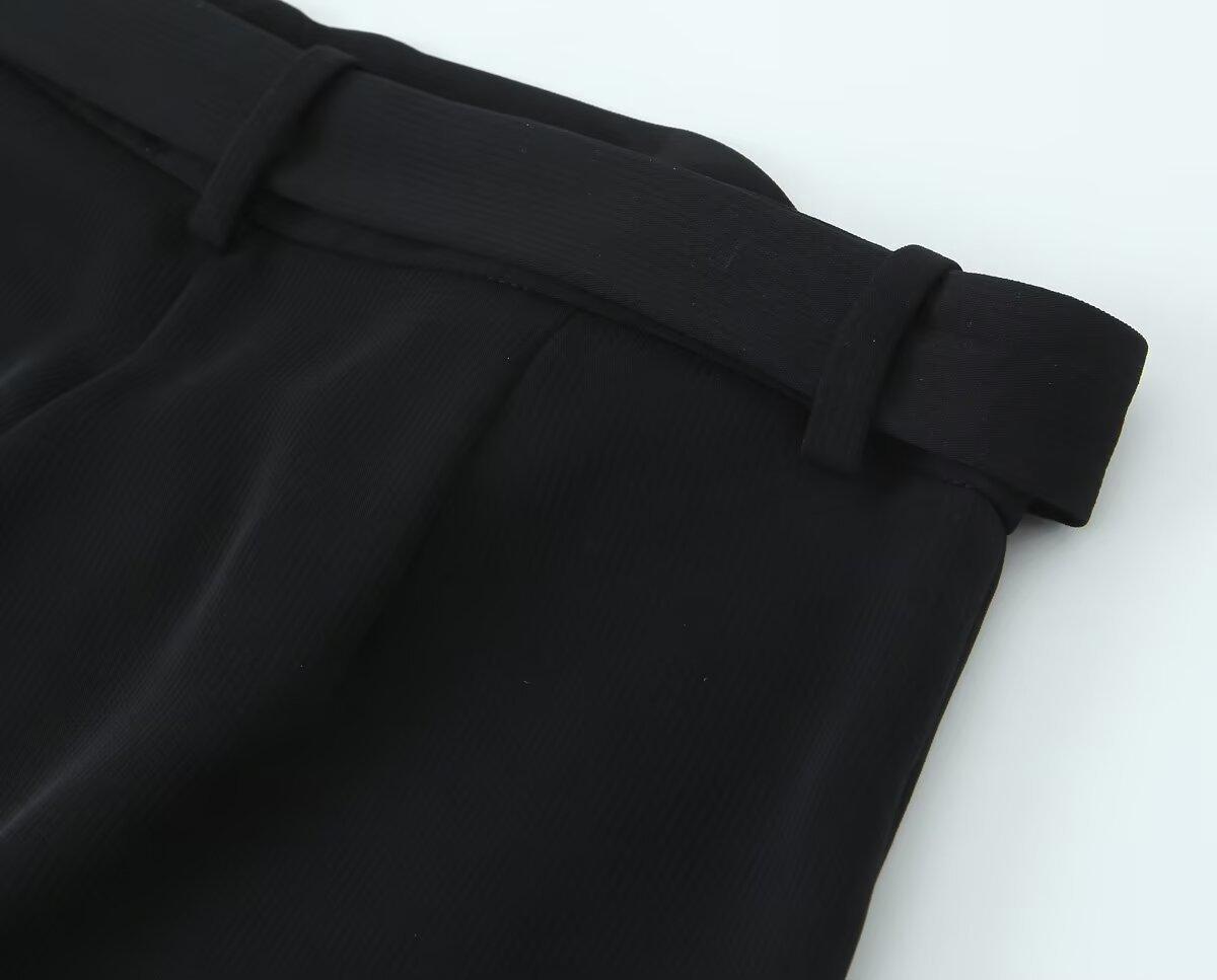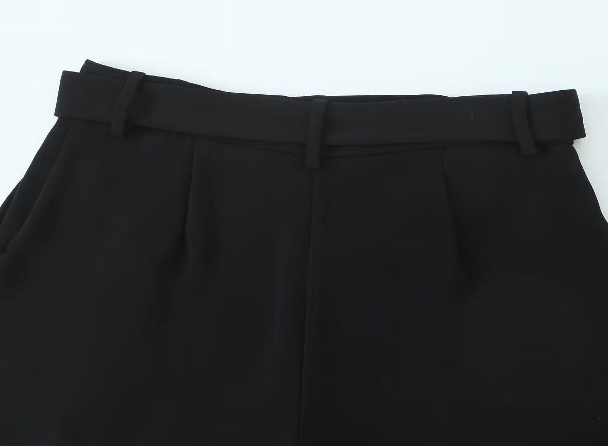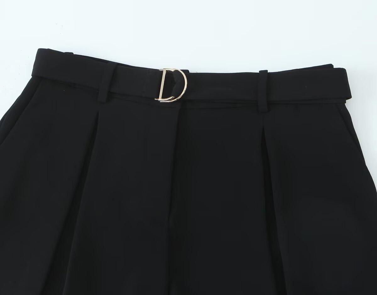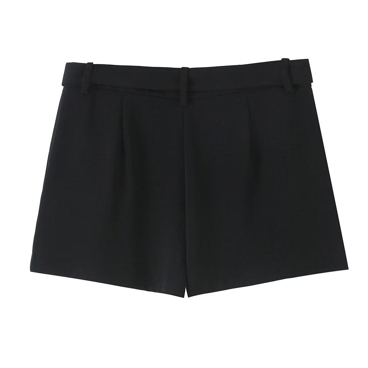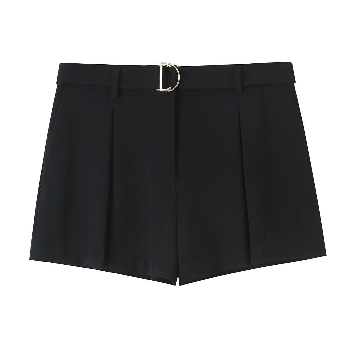 Exportación Transfronteriza Ropa de Mujer Verano 2025 Estilo Europeo y Americano con Cinturón Color Puro Casual Línea A Plisados Shorts para Mujer L36242
