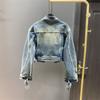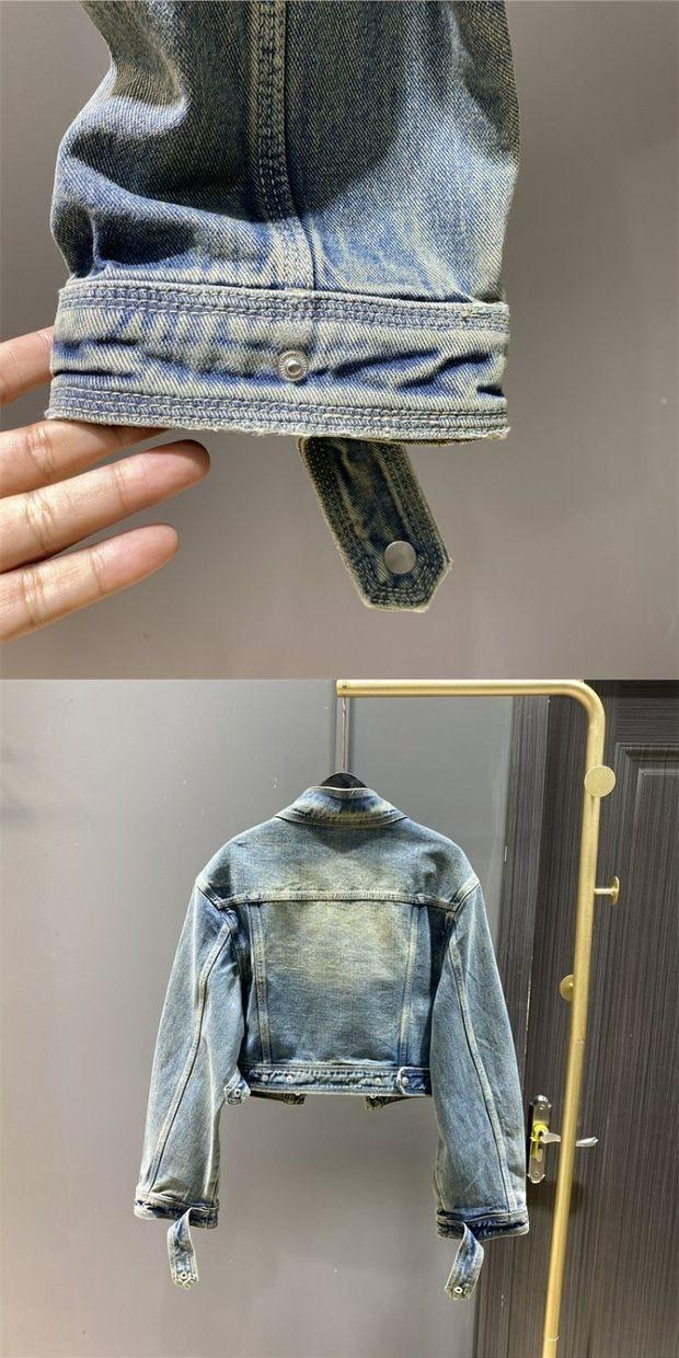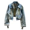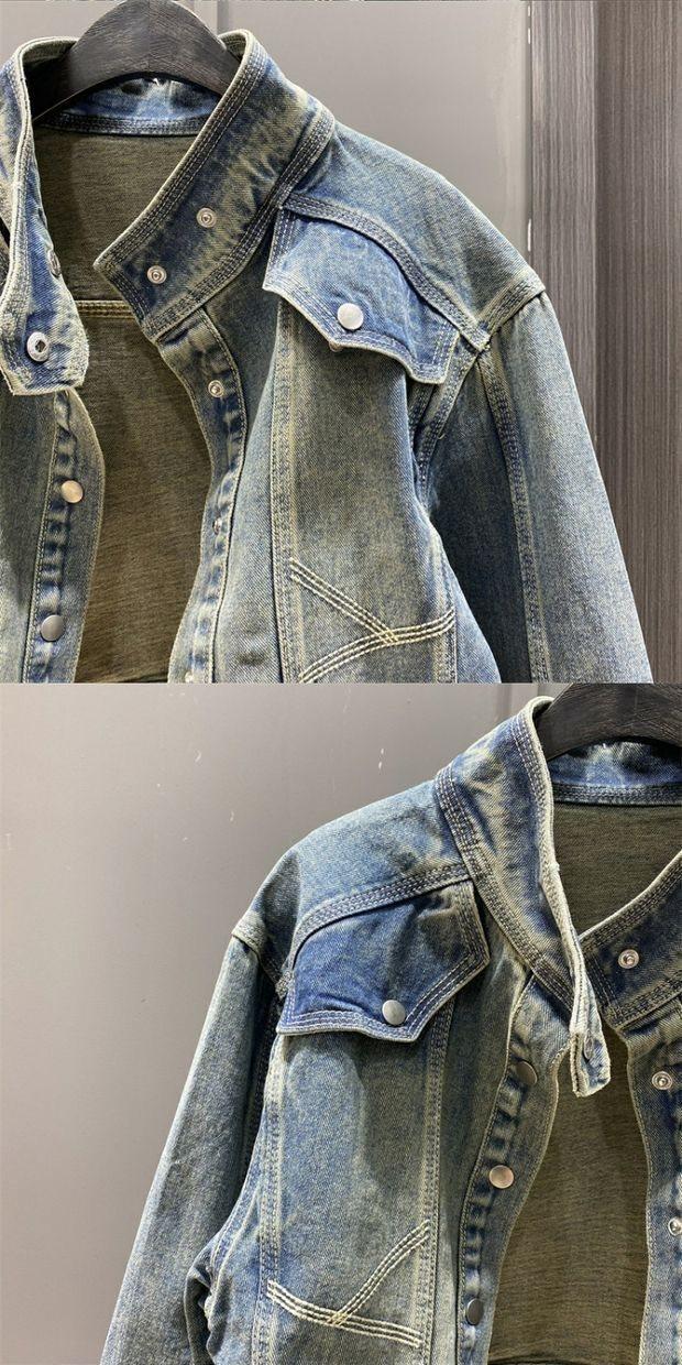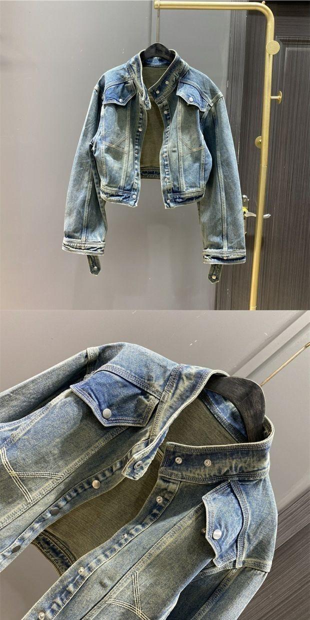2025 Primavera y Otoño Nuevo Estilo Hong Kong Retro Chaqueta Corta de Mezclilla para Mujer Holgada Adelgazante Cuello Alto Chaqueta Top Tendencia
