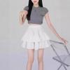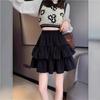 Falda Negra Esponjosa para Mujer Verano Nuevo Elástica Cintura Alta Look Adelgazante Pequeña Anti-Exposición Falda A-Line