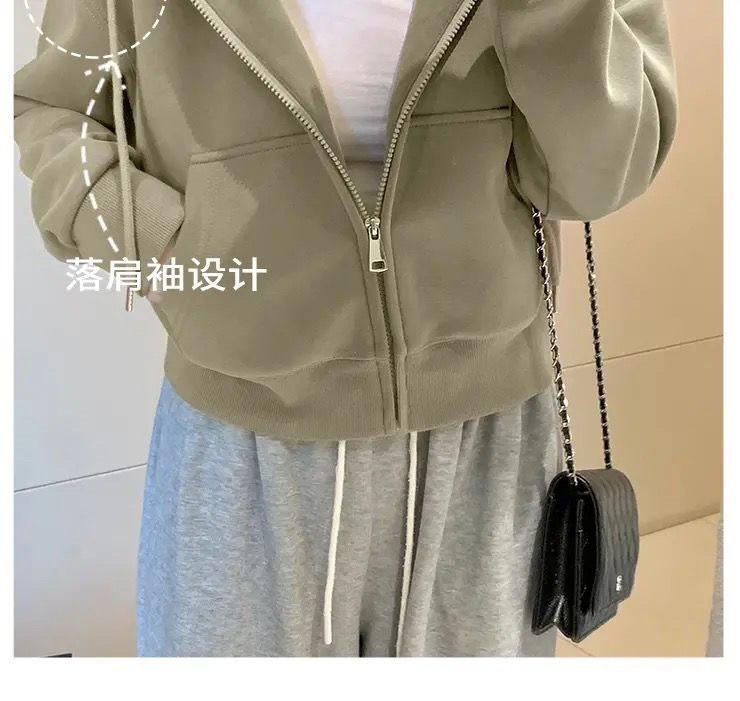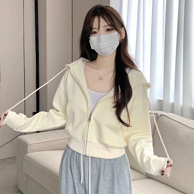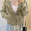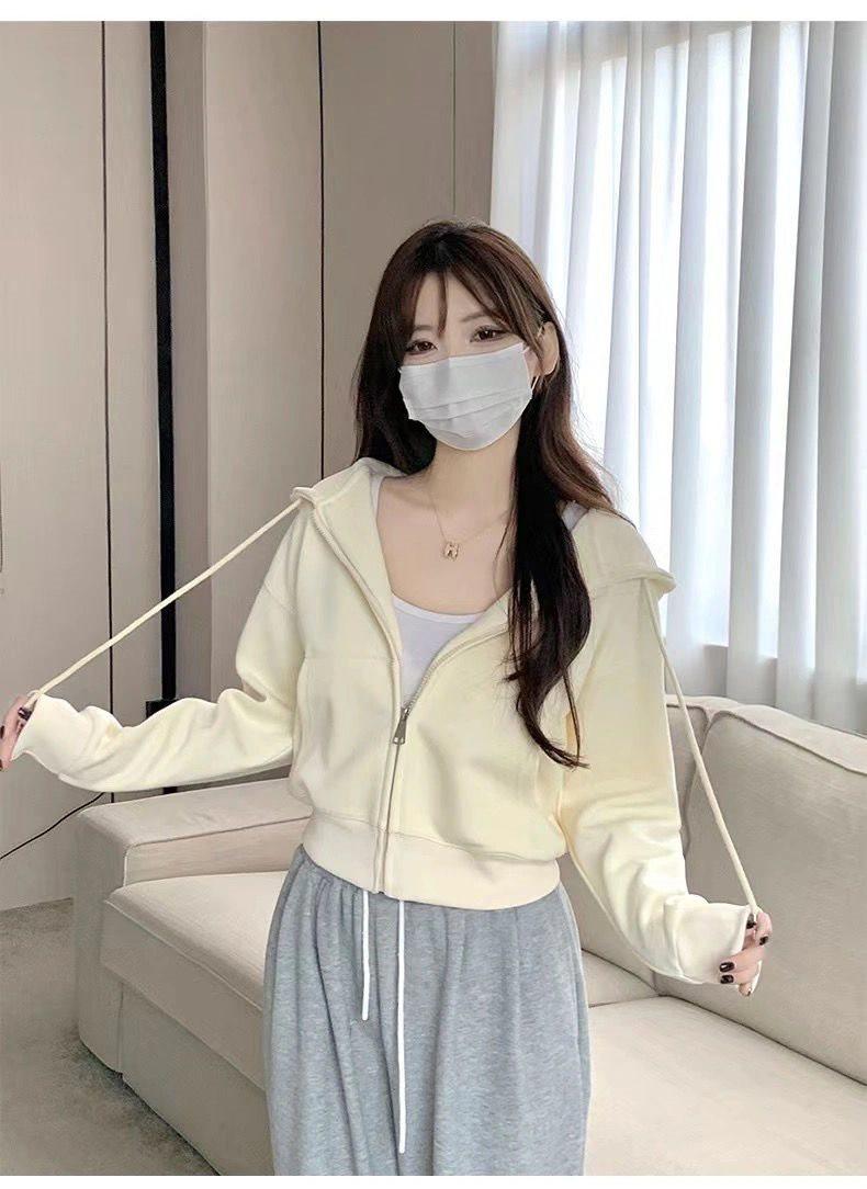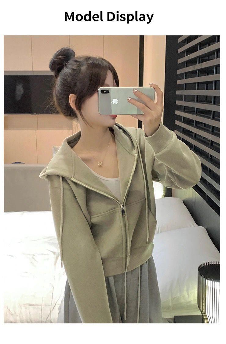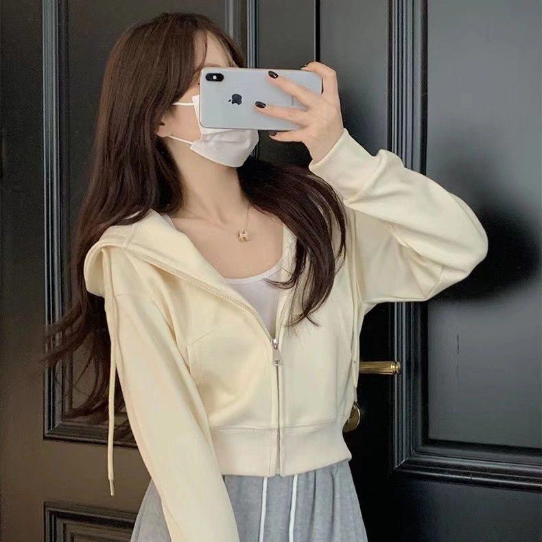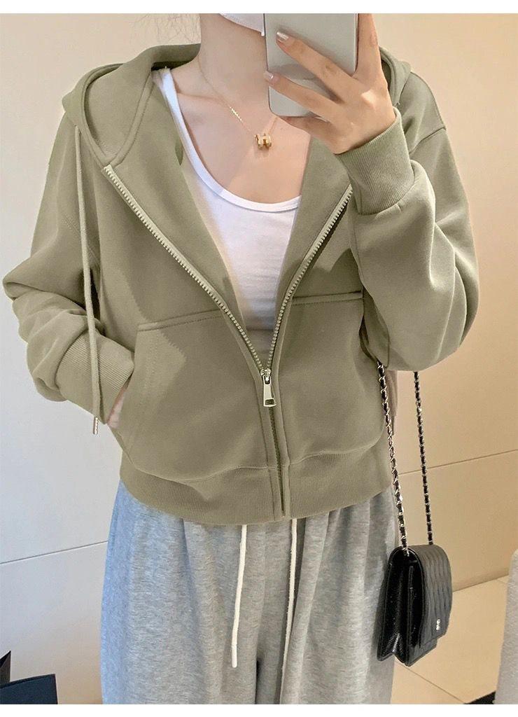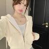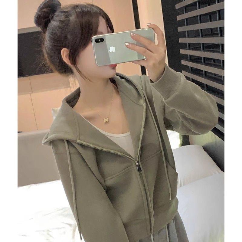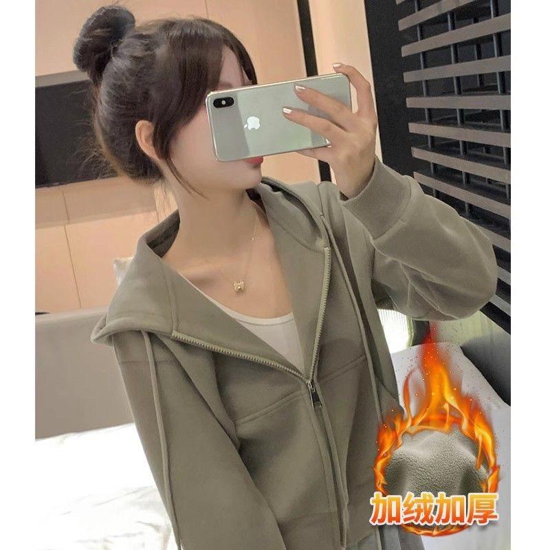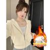 Otoño e invierno Jimo sudadera con capucha forrada de polar chaqueta diseño para mujer top corto de manga larga petite cárdigan casual marea
