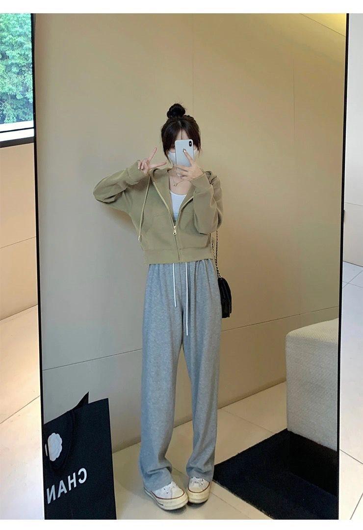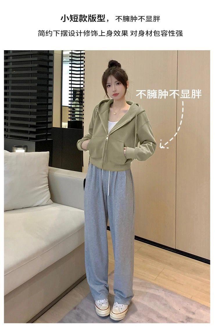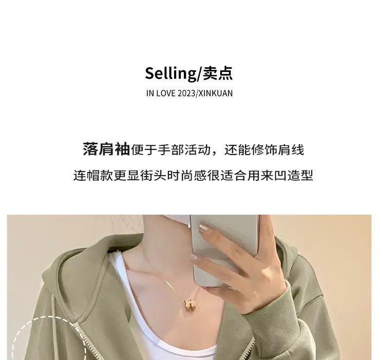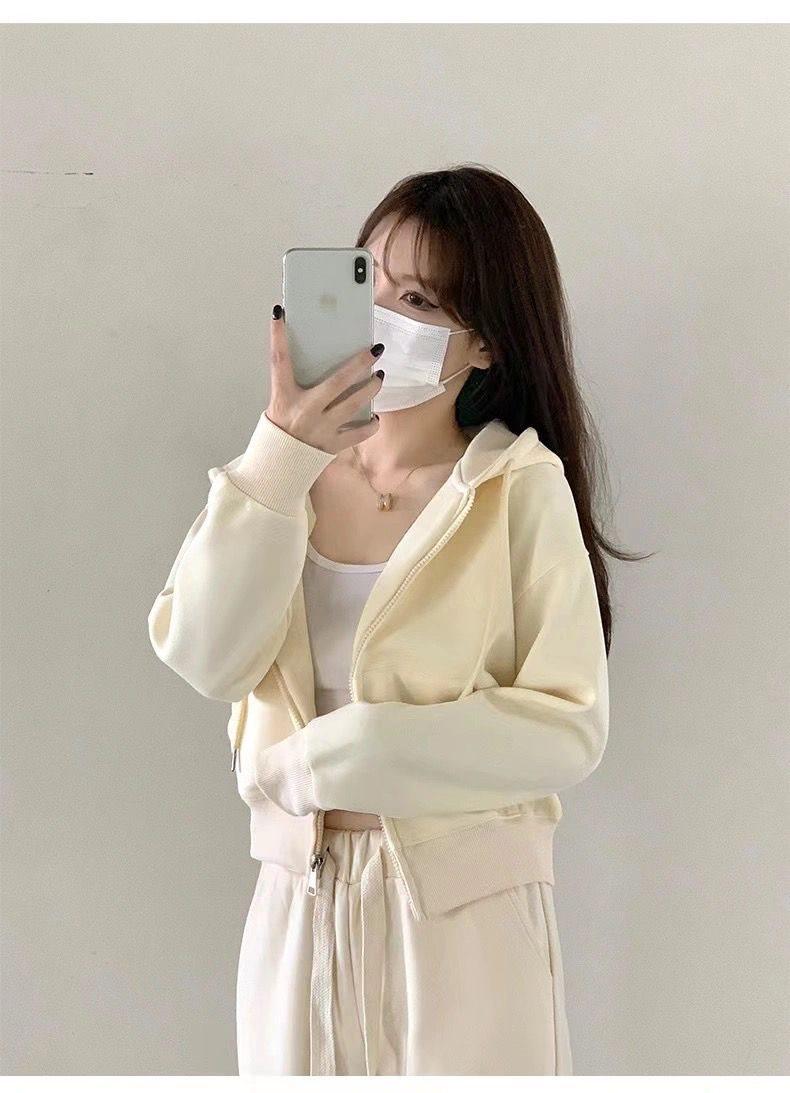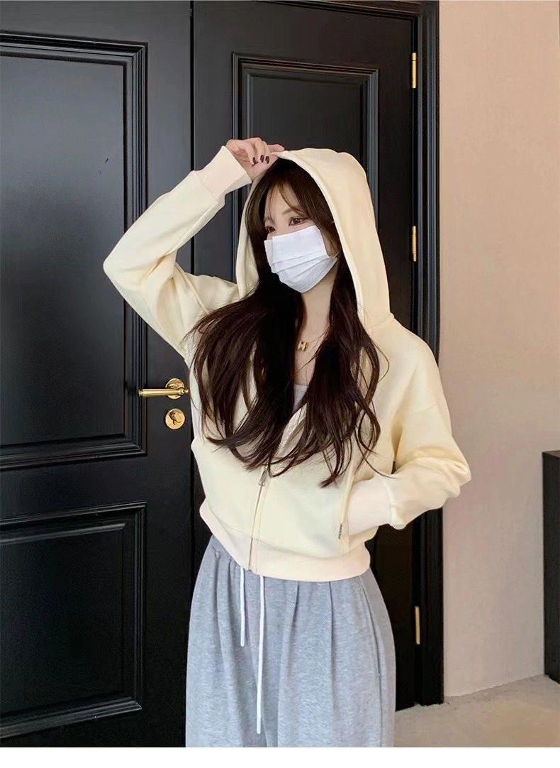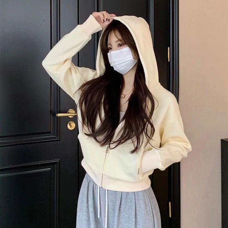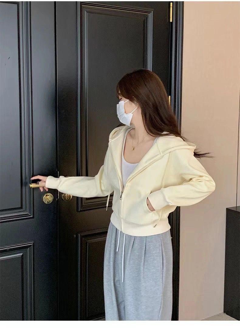 Otoño e invierno Jimo sudadera con capucha forrada de polar chaqueta diseño para mujer top corto de manga larga petite cárdigan casual marea