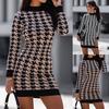 Estilo Europeo y Americano Amazon Aliexpress Tendencia de Moda Popular Versátil Socialité Vestido de Punto a Cuadros Decorado con Borlas