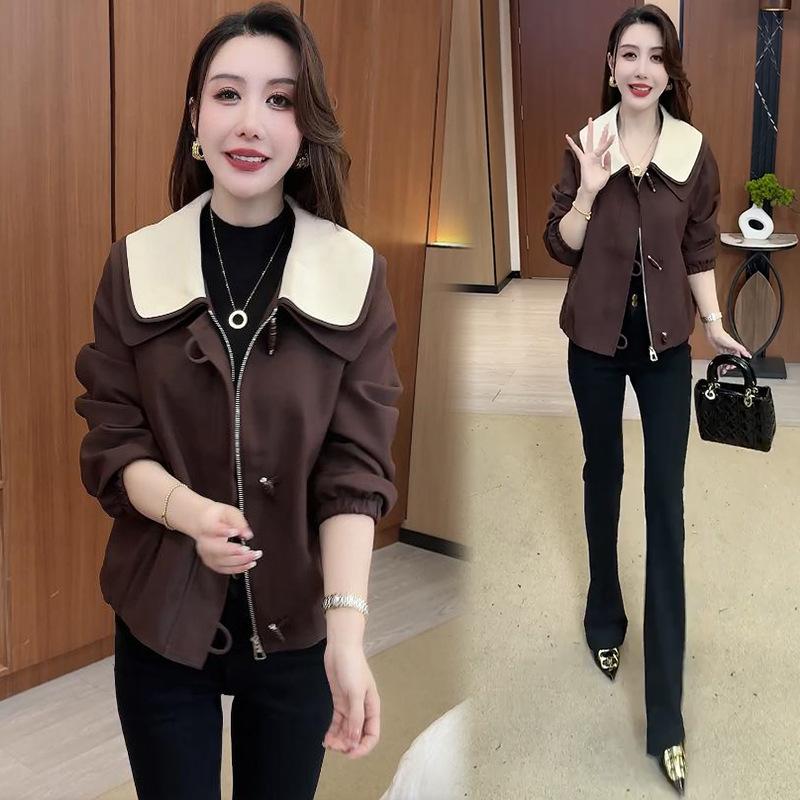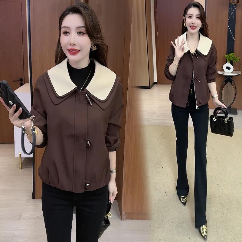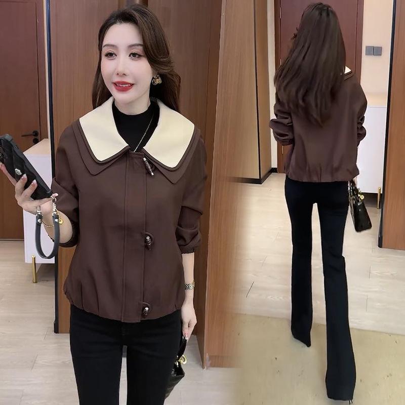 Chaqueta corta de moda para mujer 2025 otoño nueva holgada adelgazante petite versátil casual solapa chaqueta top marea
