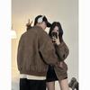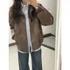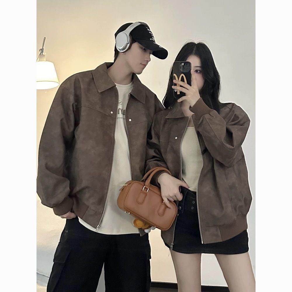 Chaqueta Americana Retro Marrón con Solapa Primavera Otoño 2025 Nueva Chaqueta para Pareja de Ante Sintético Top Casual