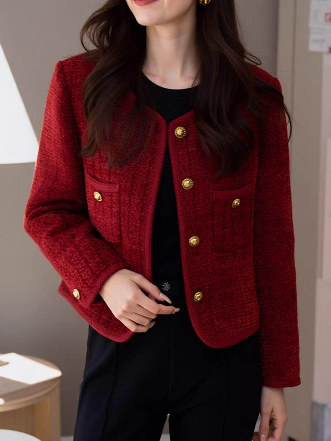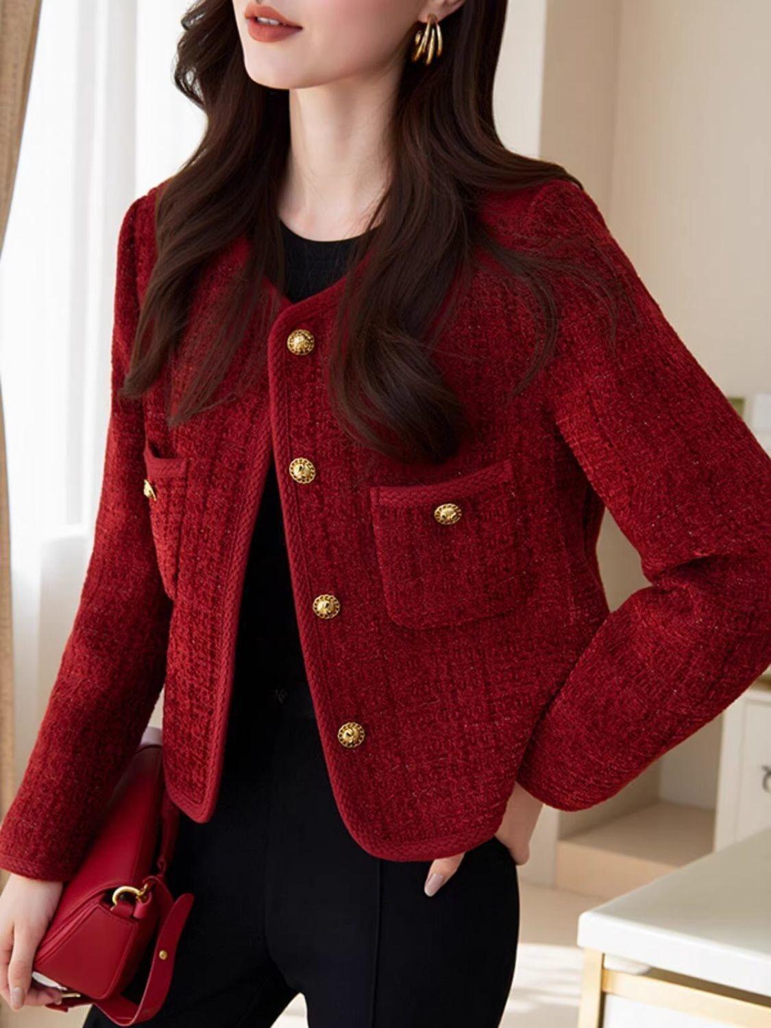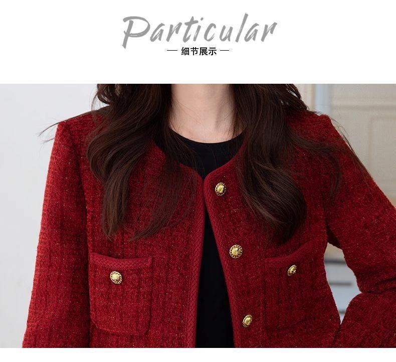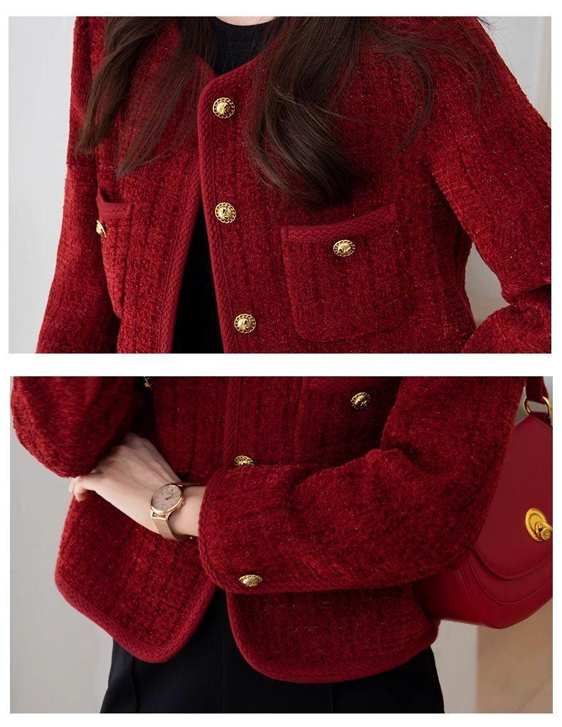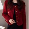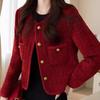Chaqueta nueva roja estilo Chanel 2025 temperamento corto francés primavera y otoño tweed petit top de socialité