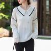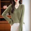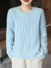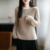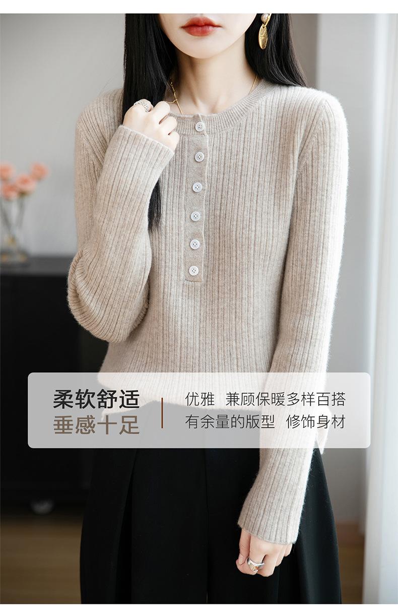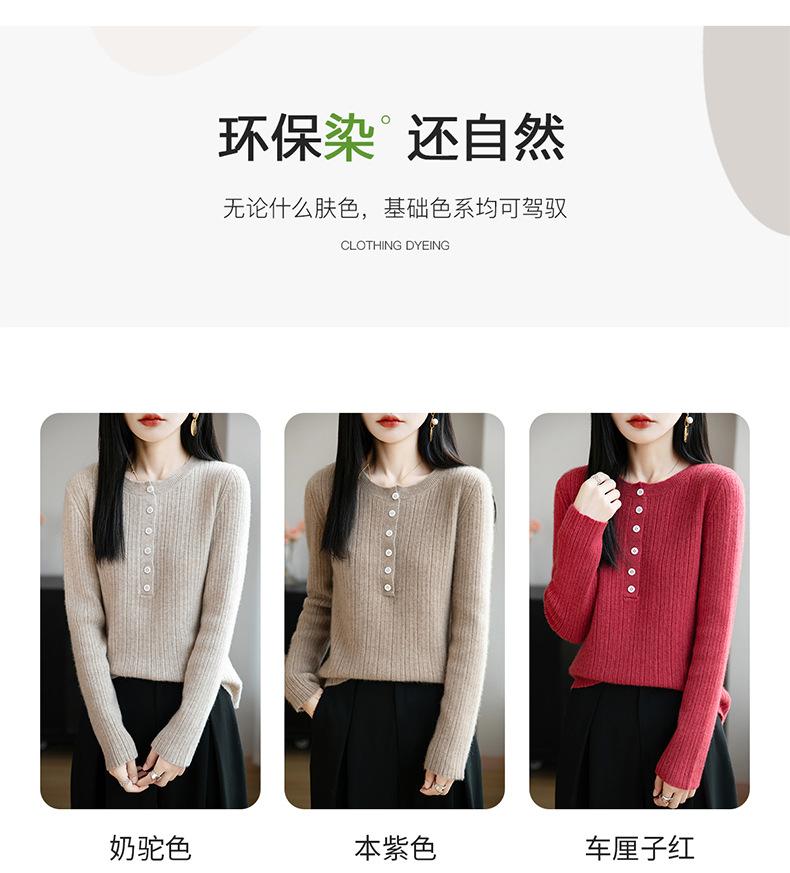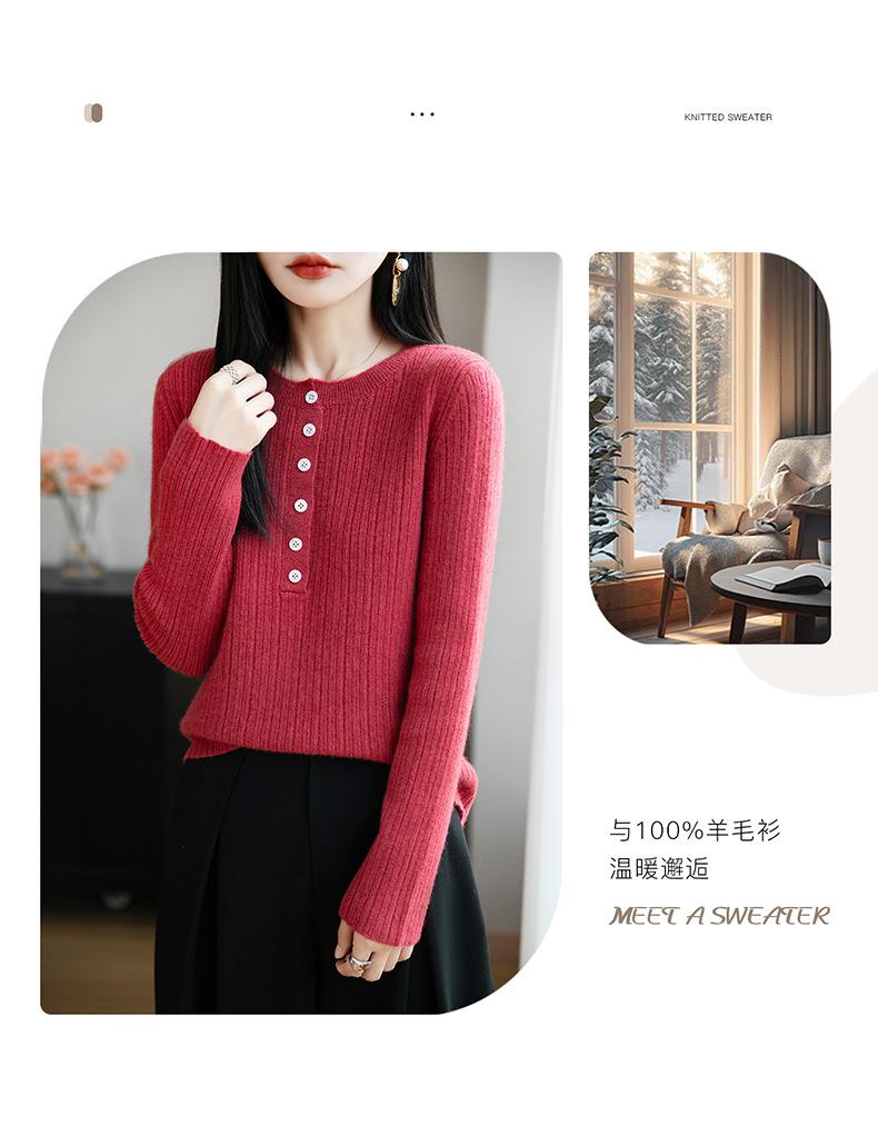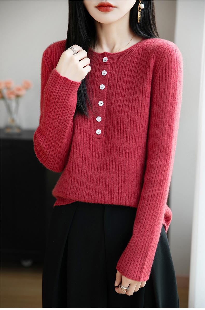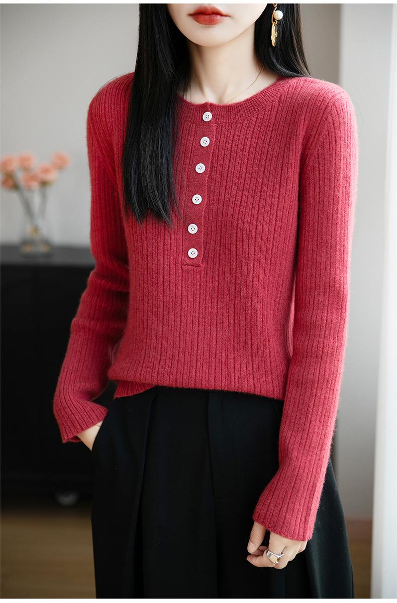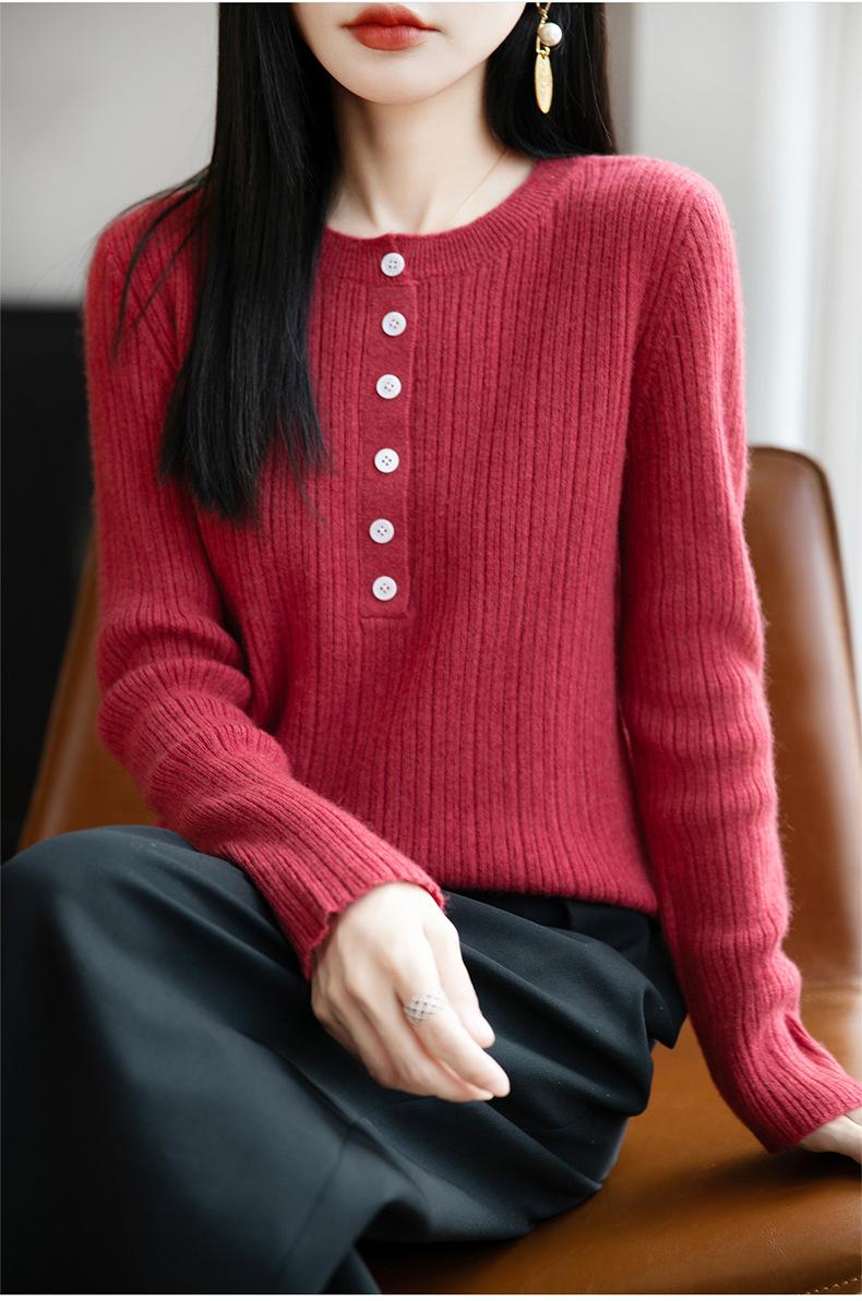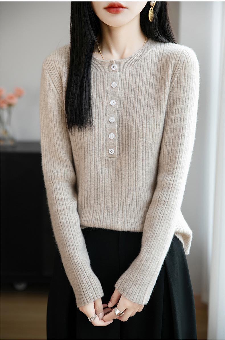 25 Otoño/Invierno Nuevo Cuello Redondo de Lana Pura Tejido Manga Larga para Mujer Color Sólido Botones Suelto Top Básico