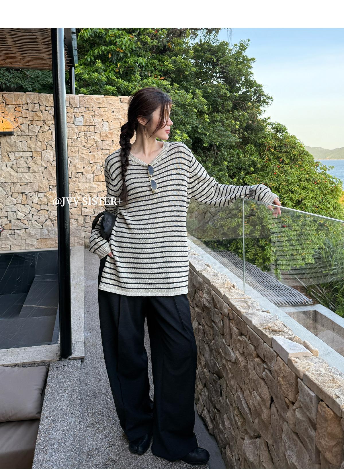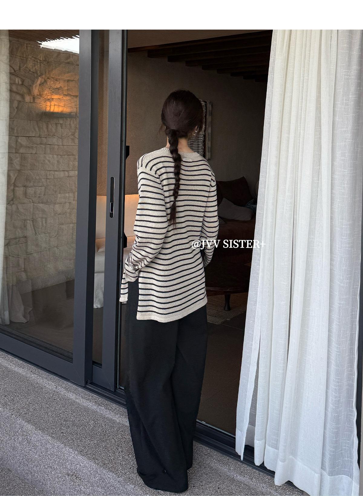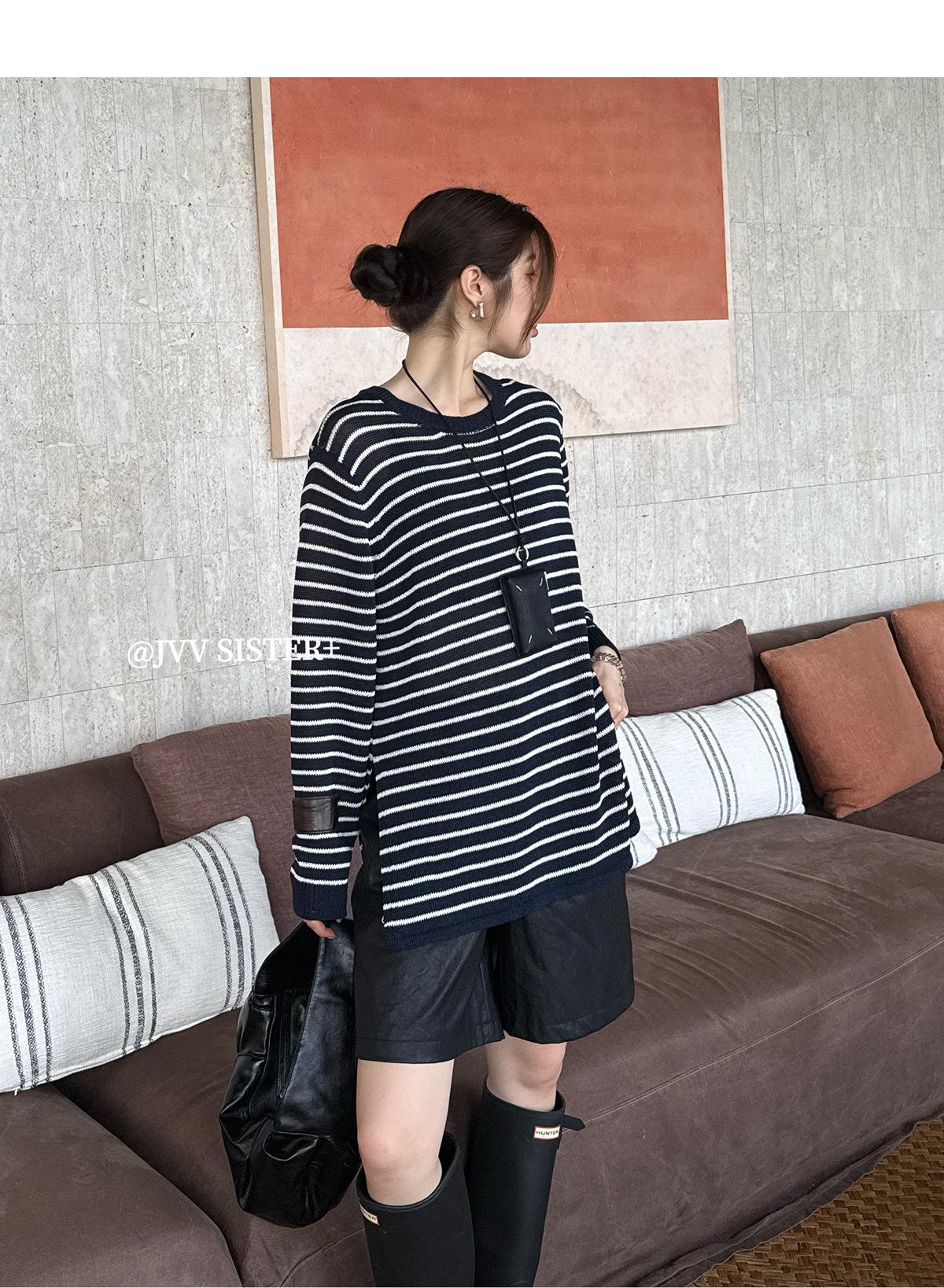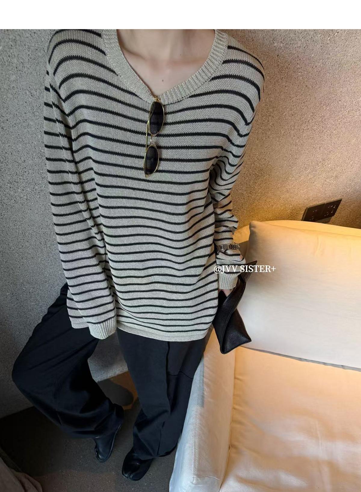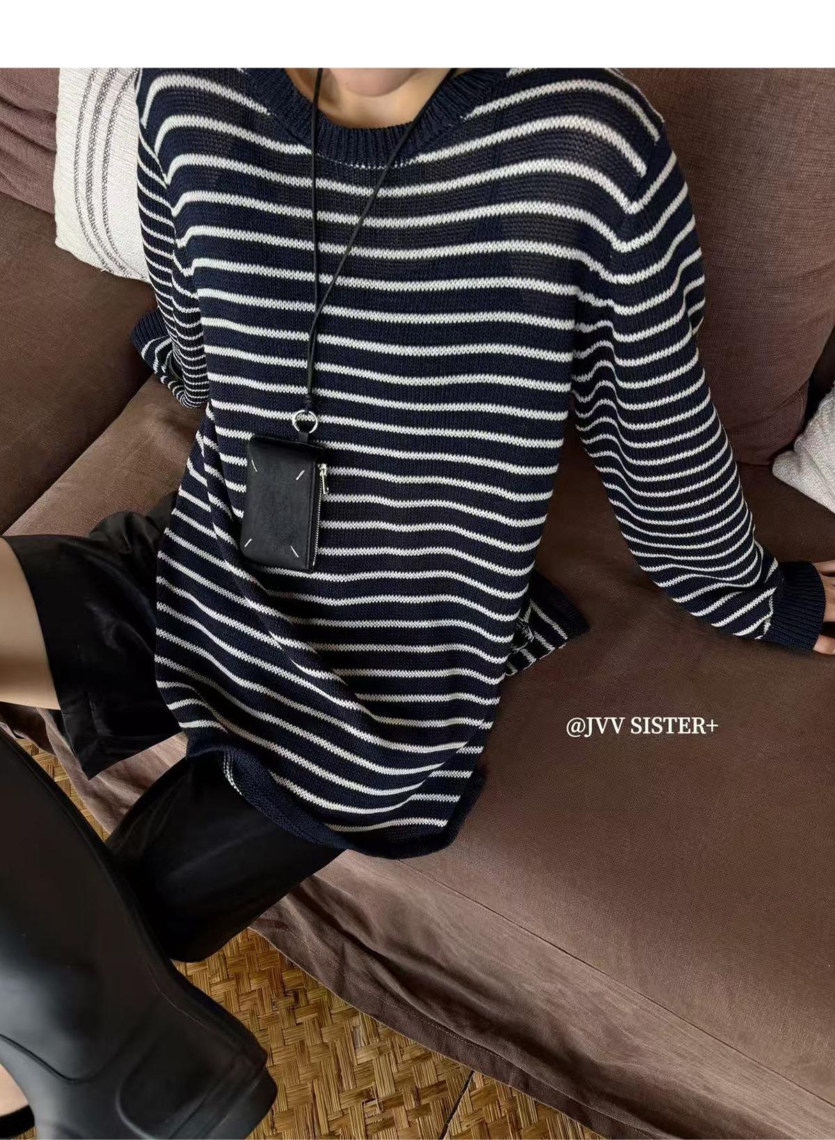 JVV Trece Líneas 2025 Otoño Nueva Moda Rayas Cuello Redondo Manga Larga Suéter Holgado de Punto Tendencia para Mujer 70885