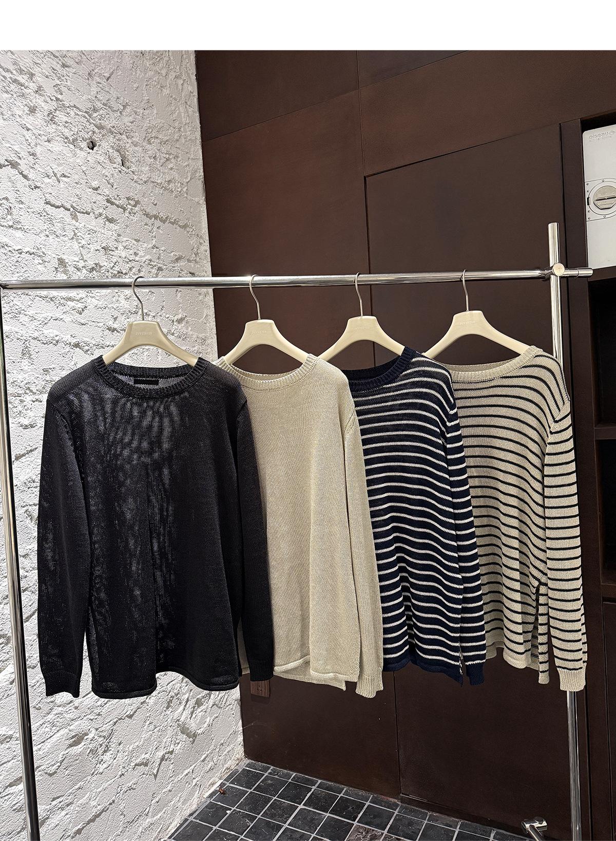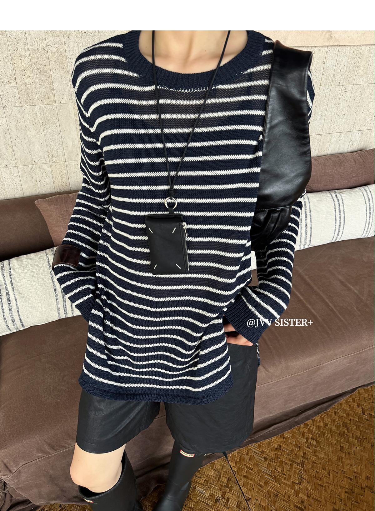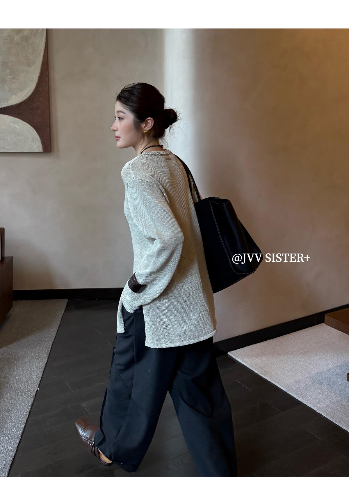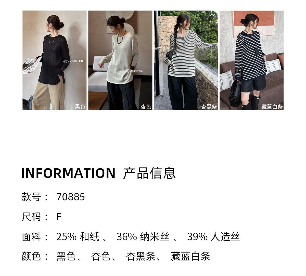 JVV Trece Líneas 2025 Otoño Nueva Moda Rayas Cuello Redondo Manga Larga Suéter Holgado de Punto Tendencia para Mujer 70885