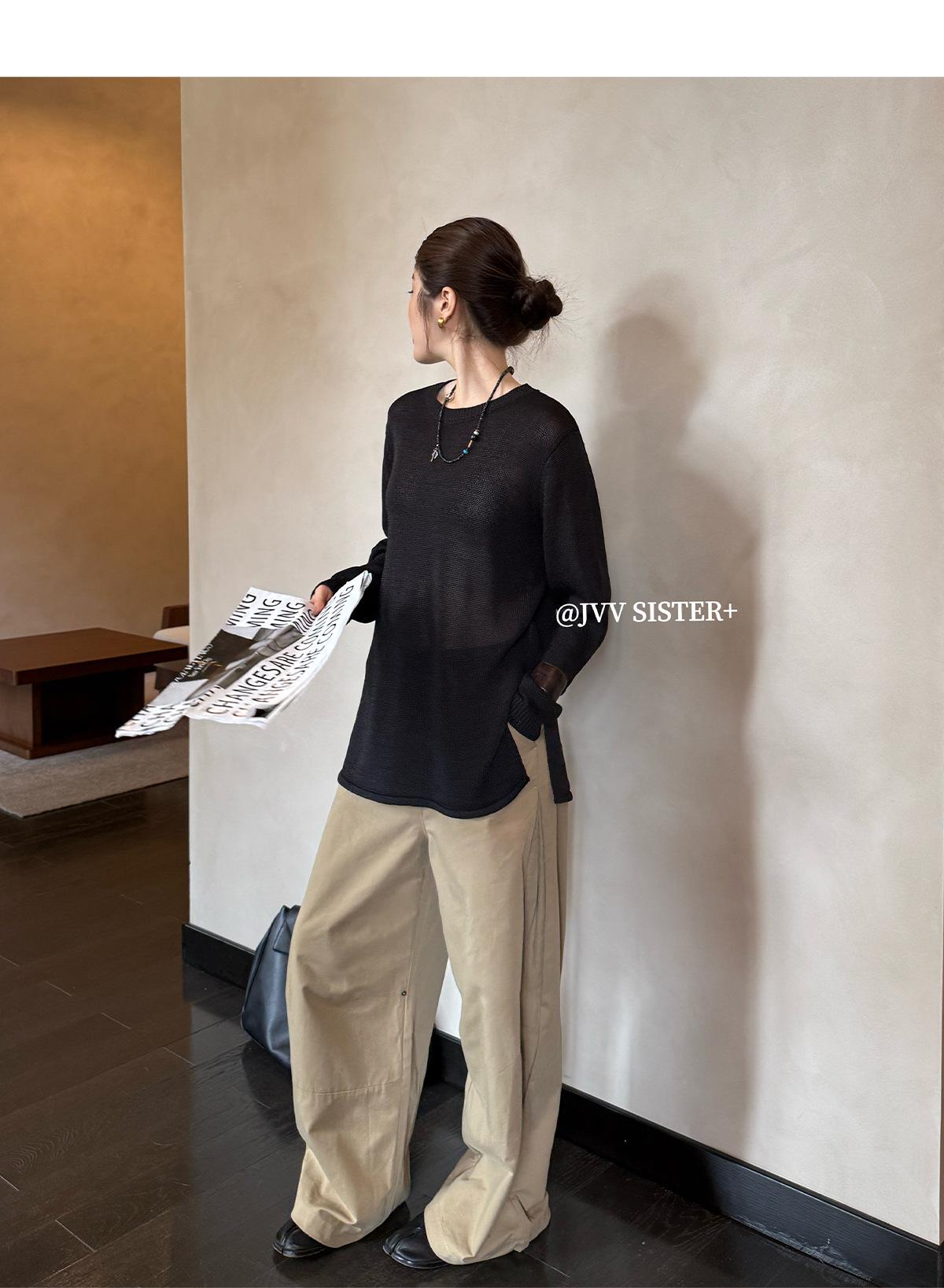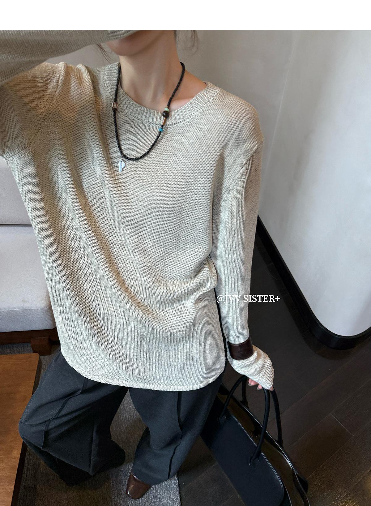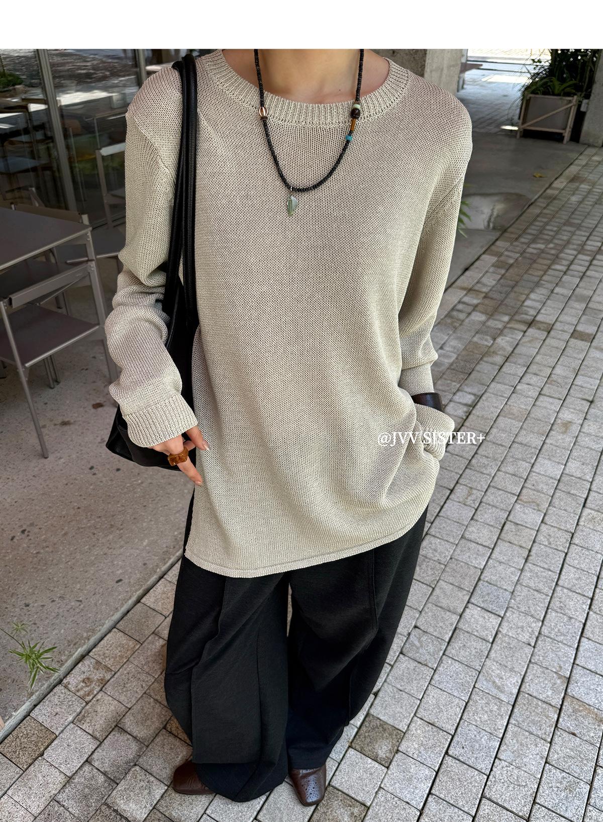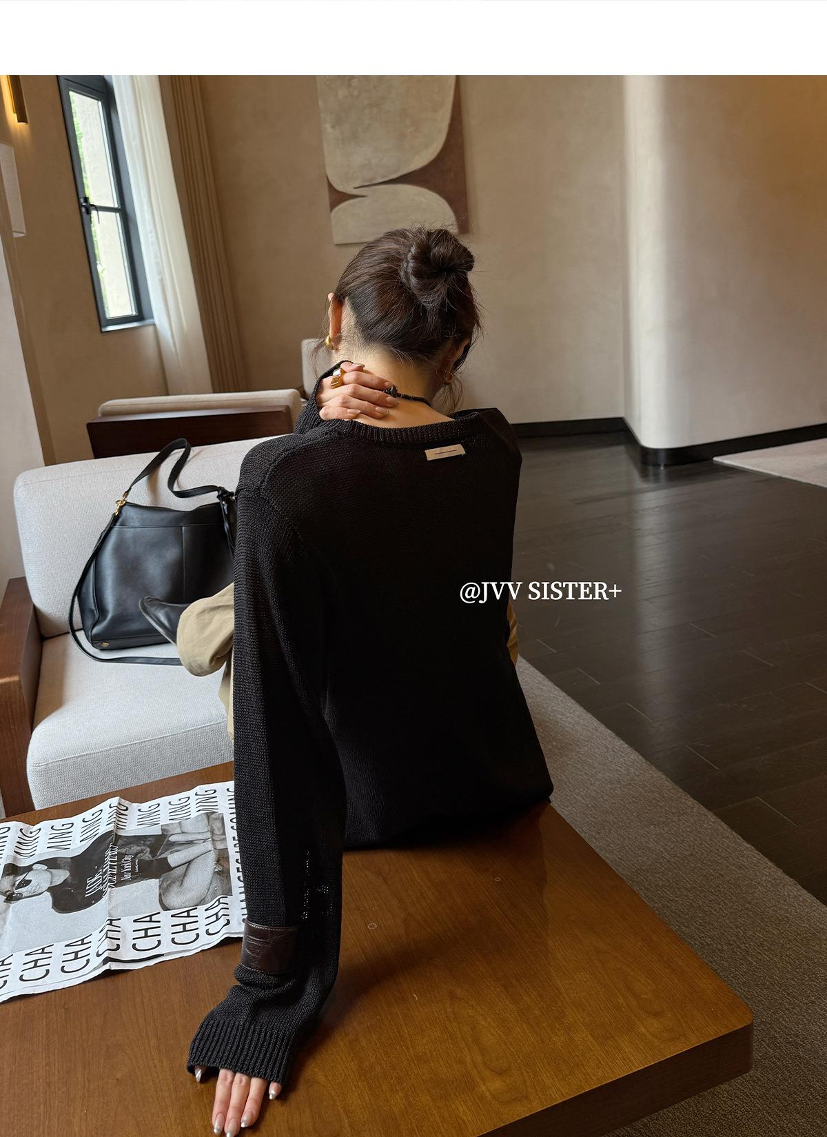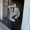 JVV Trece Líneas 2025 Otoño Nueva Moda Rayas Cuello Redondo Manga Larga Suéter Holgado de Punto Tendencia para Mujer 70885